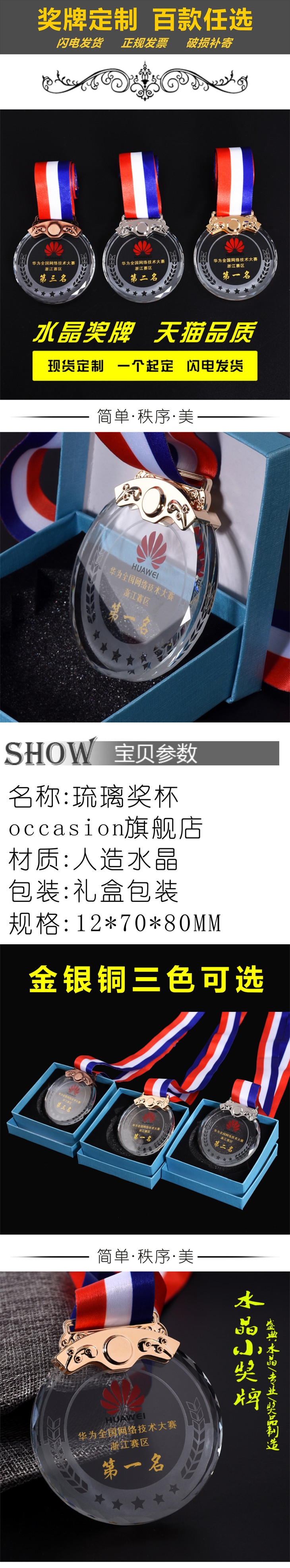 奖牌定制定做马拉松金牌水晶挂牌足球篮球比赛奖章儿童奖杯制作