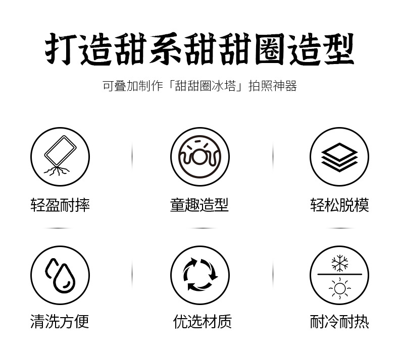 【创意甜甜圈冰块模具】冰膜冰格制冰盒 厨房家用制冰膜具 辅食冷冻磨具