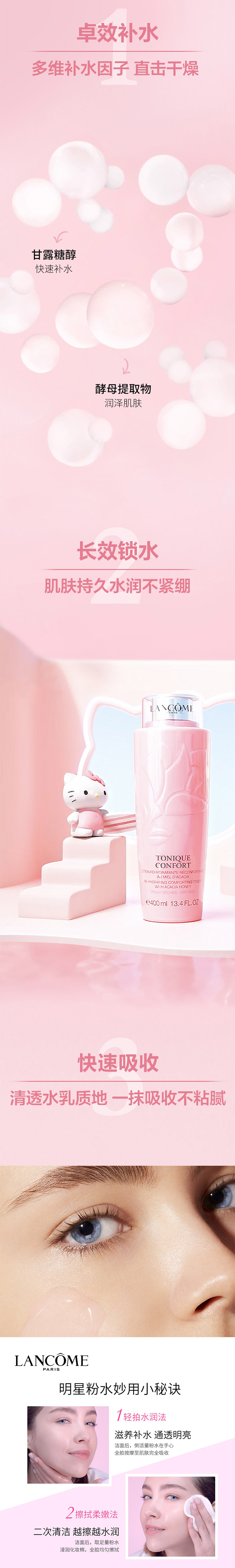 国内专柜 兰蔻hello kitty联名限量版两款随机发货Lancome/兰蔻清滢柔肤水400ML现货直发