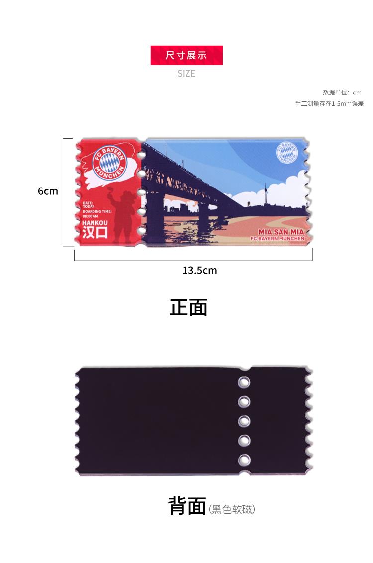 【官方正版】拜仁慕尼黑足球俱乐部|武汉行城市纪念票根冰箱贴球迷