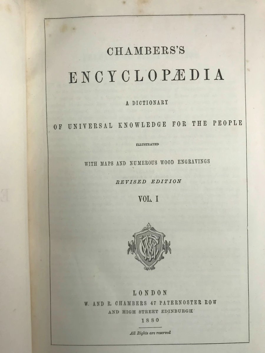 1880年 钱伯斯百科全书(卷1) 数百幅版画插图 真皮精装16开