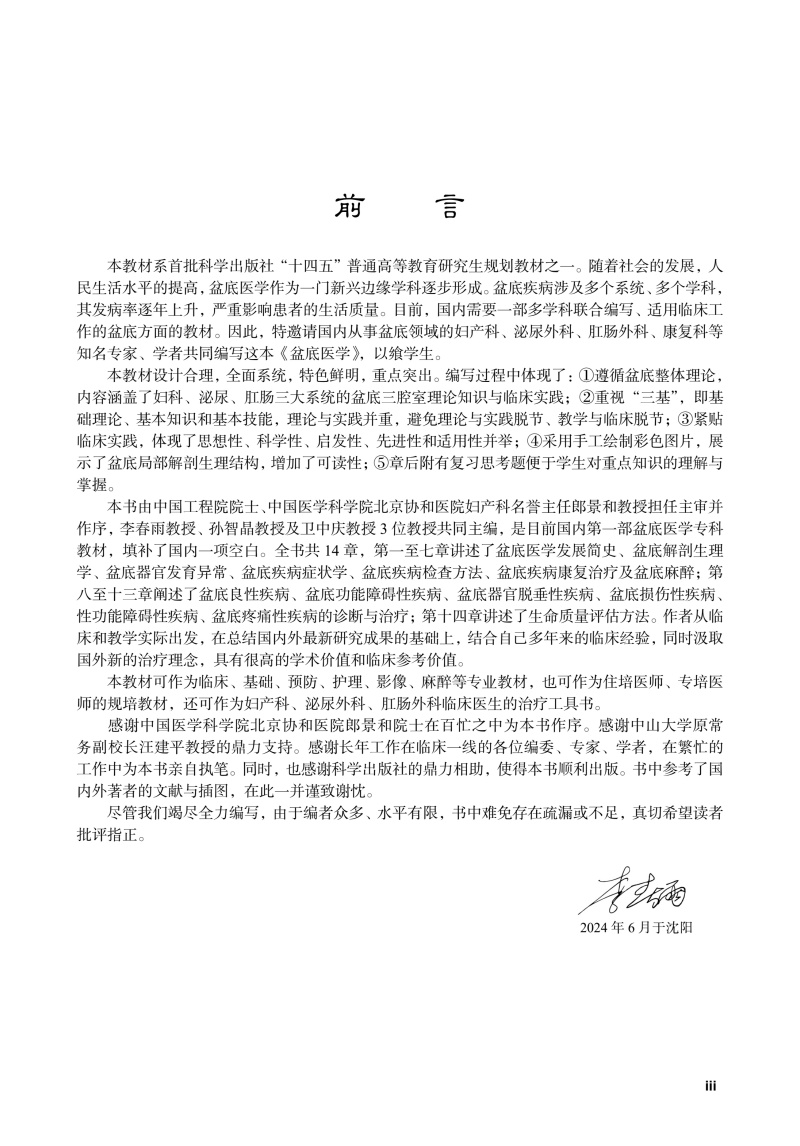 盆底医学 十四五普通高等教育研究生规划教材 李春雨 孙智晶 卫中庆 适用于临床基础预防护理影像麻醉妇产泌尿等多专业 科学出版社