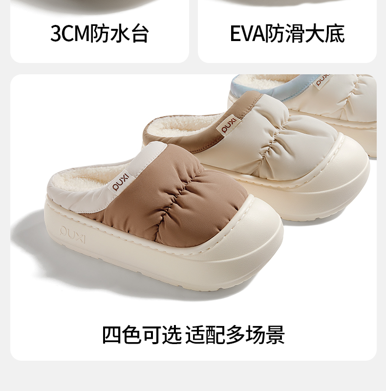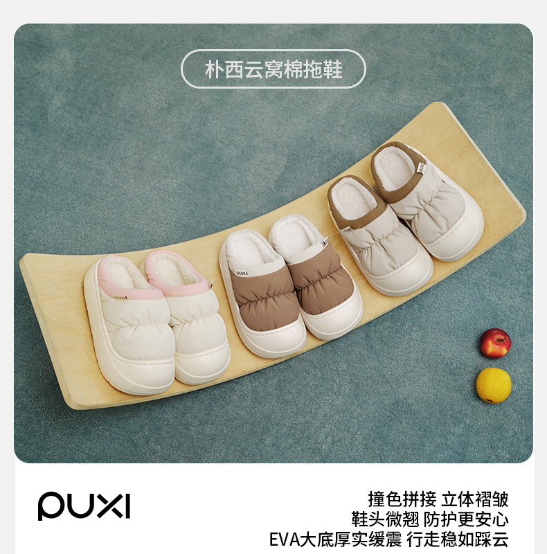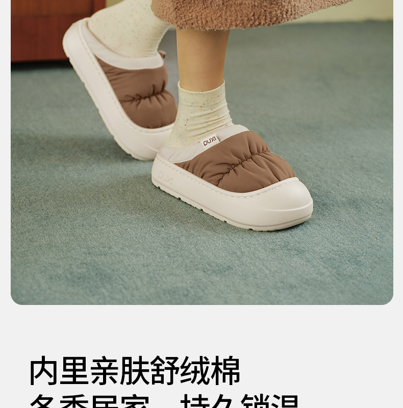 2025秋冬上新朴西云窝棉拖鞋女厚底冬季家居保暖防滑加绒软底拖