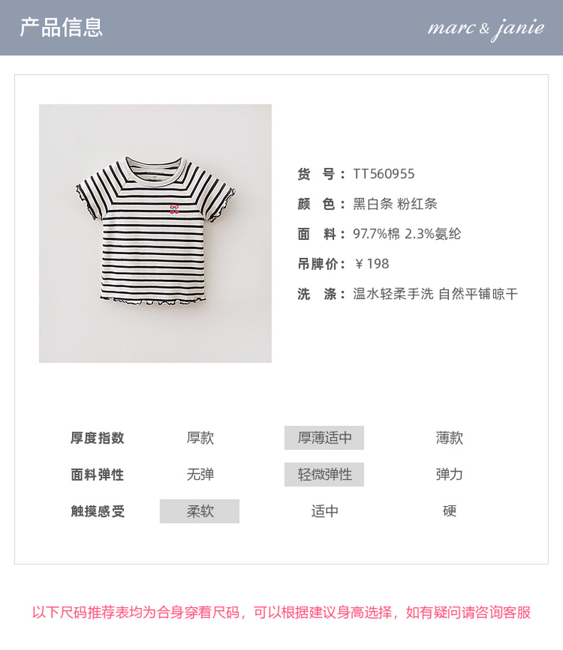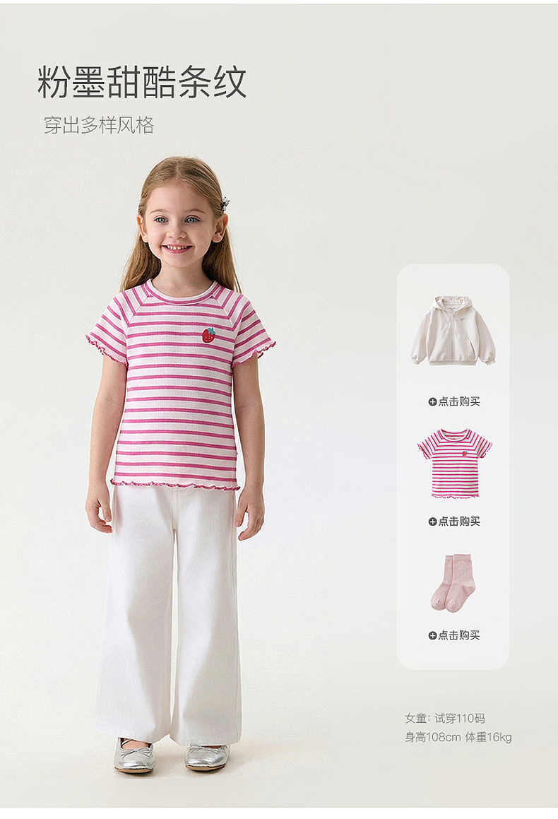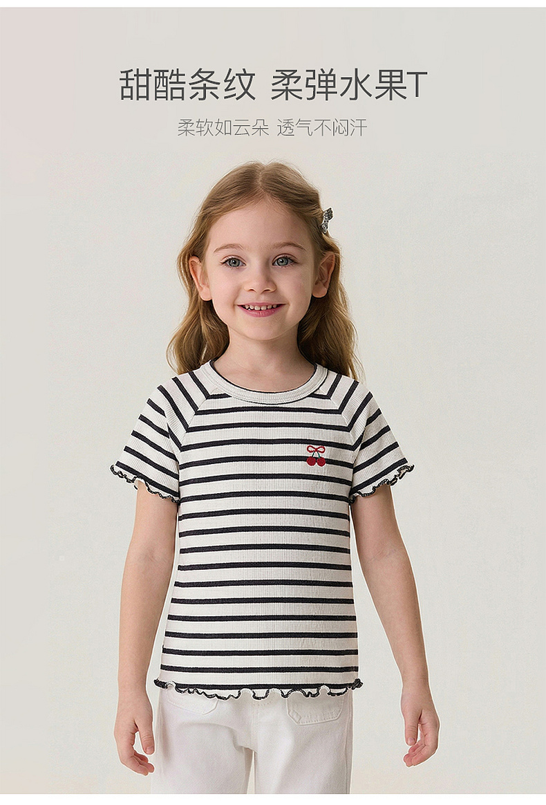 马克珍妮甜酷条纹女童柔弹水果T2026年夏装新款560955