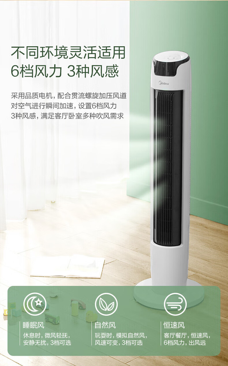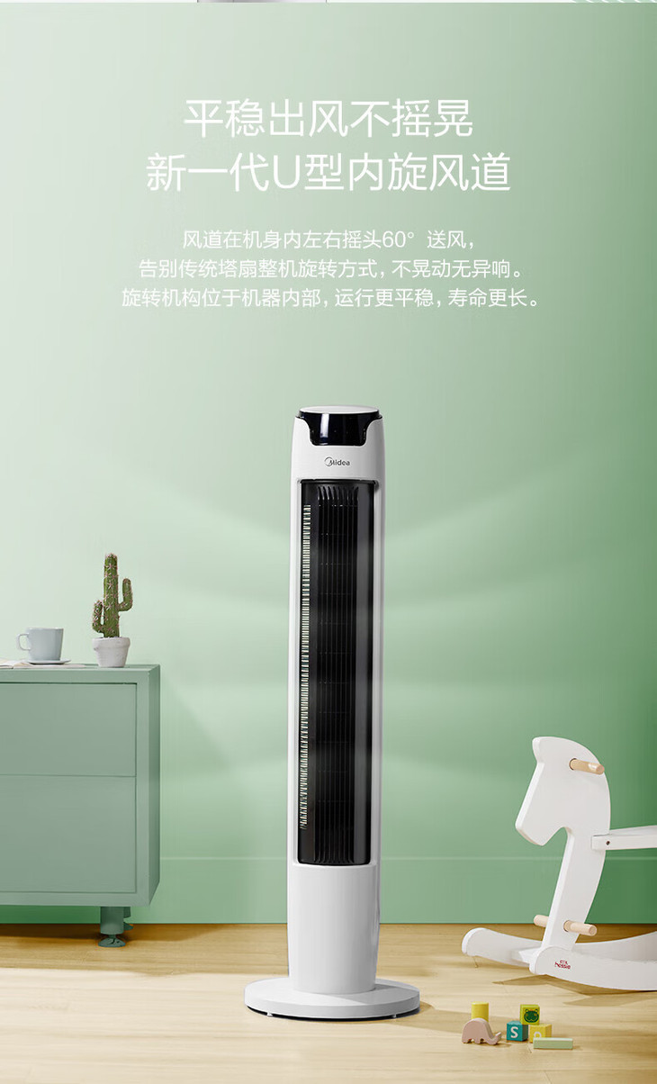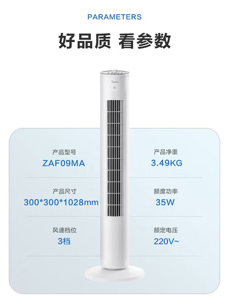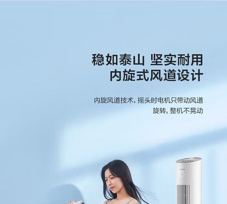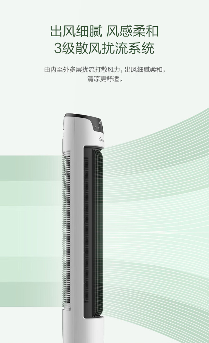美的(Midea)(510118)塔式电风扇ZAE09MA遥控定时预约轻声低噪柔风大角度大风量摇头迷你体积