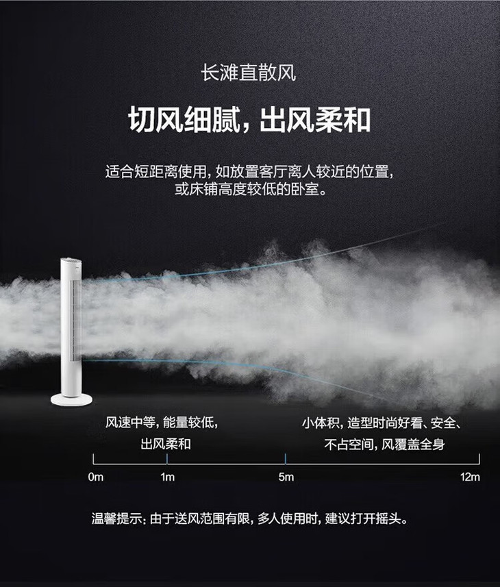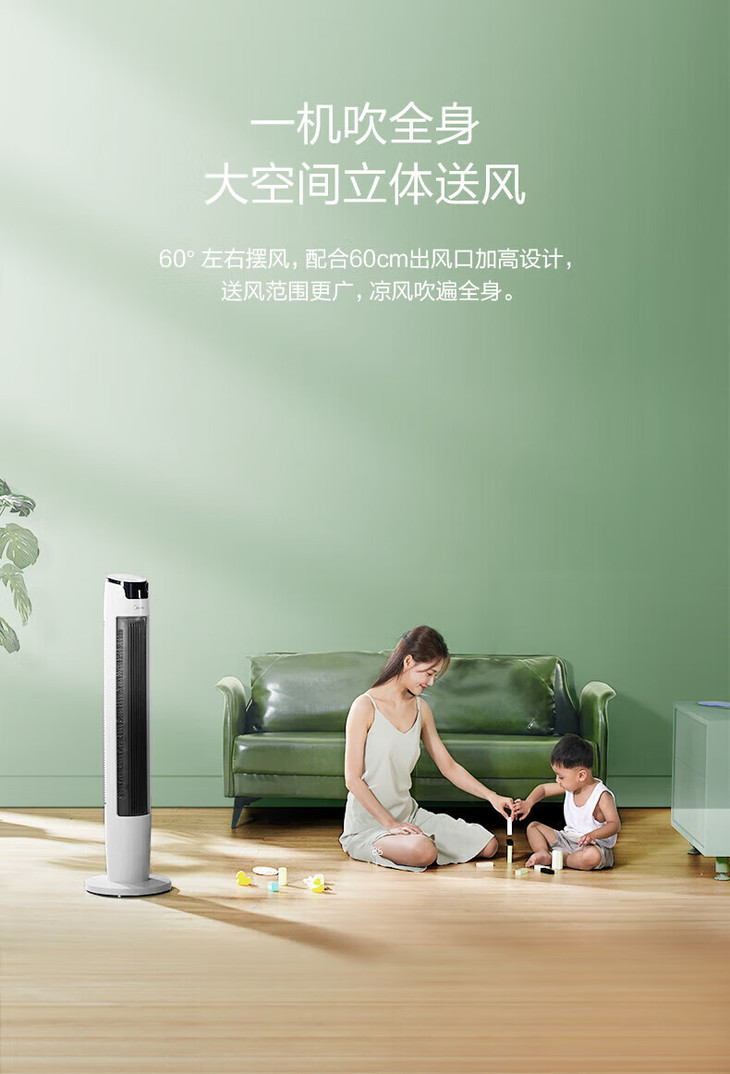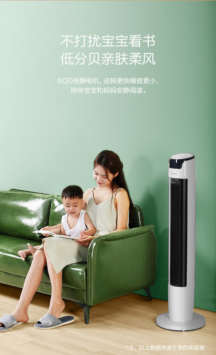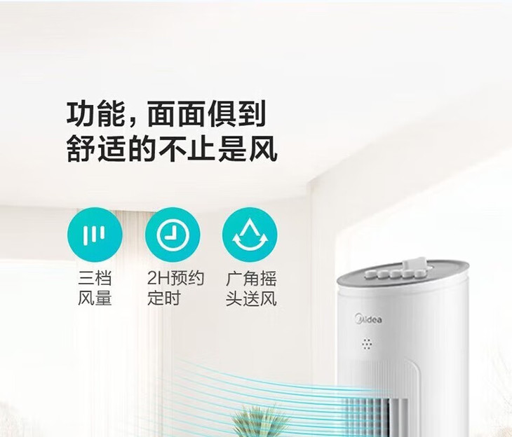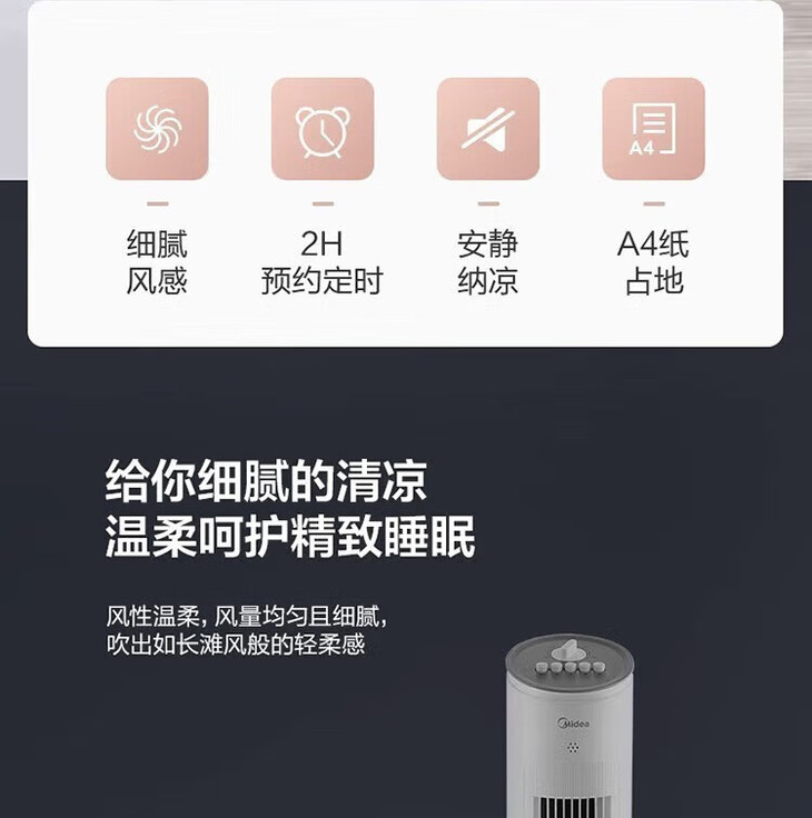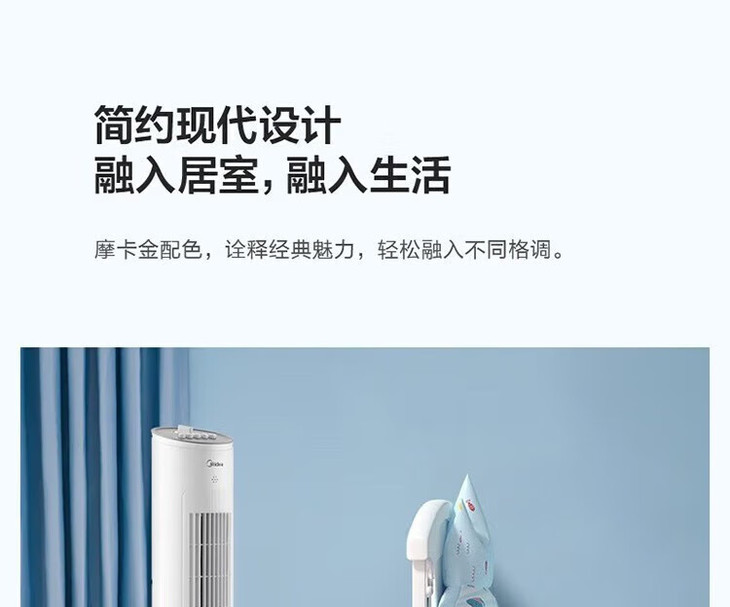 美的(Midea)(510118)塔式电风扇ZAE09MA遥控定时预约轻声低噪柔风大角度大风量摇头迷你体积