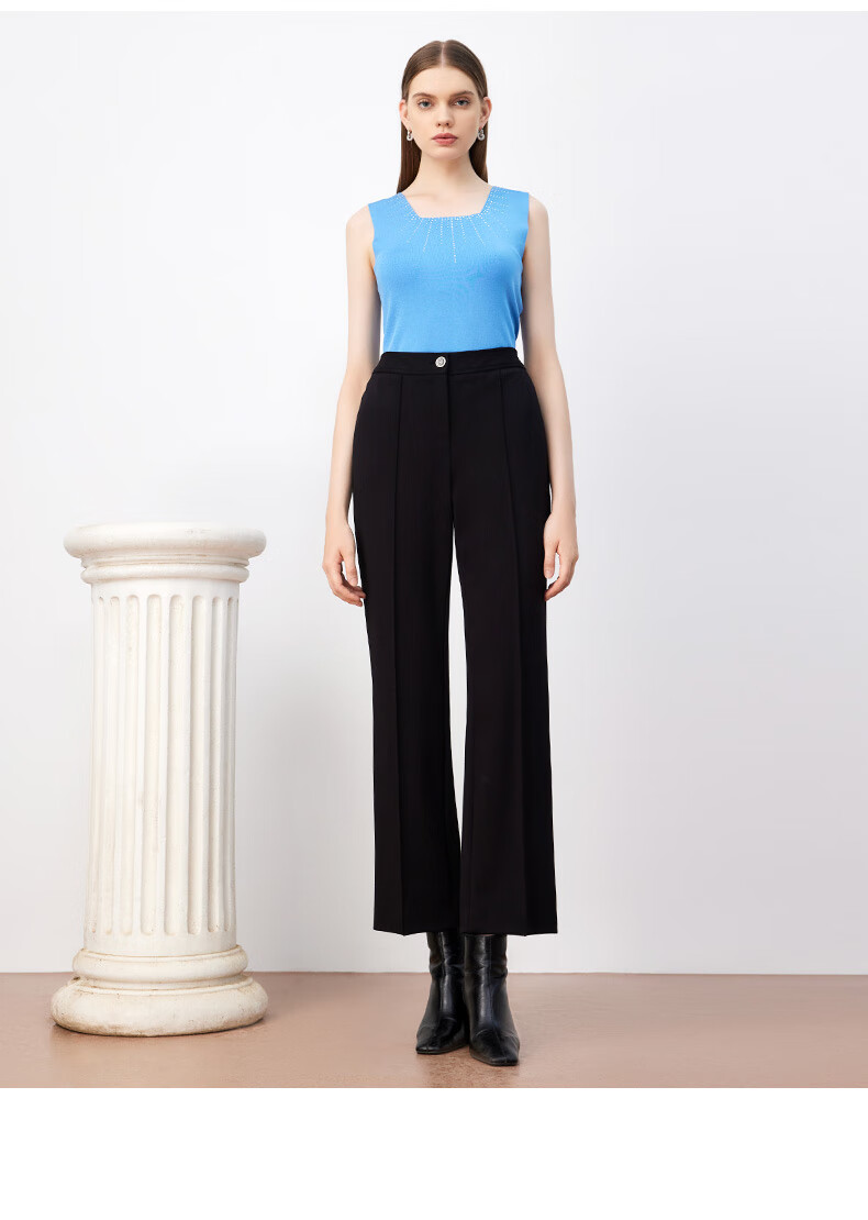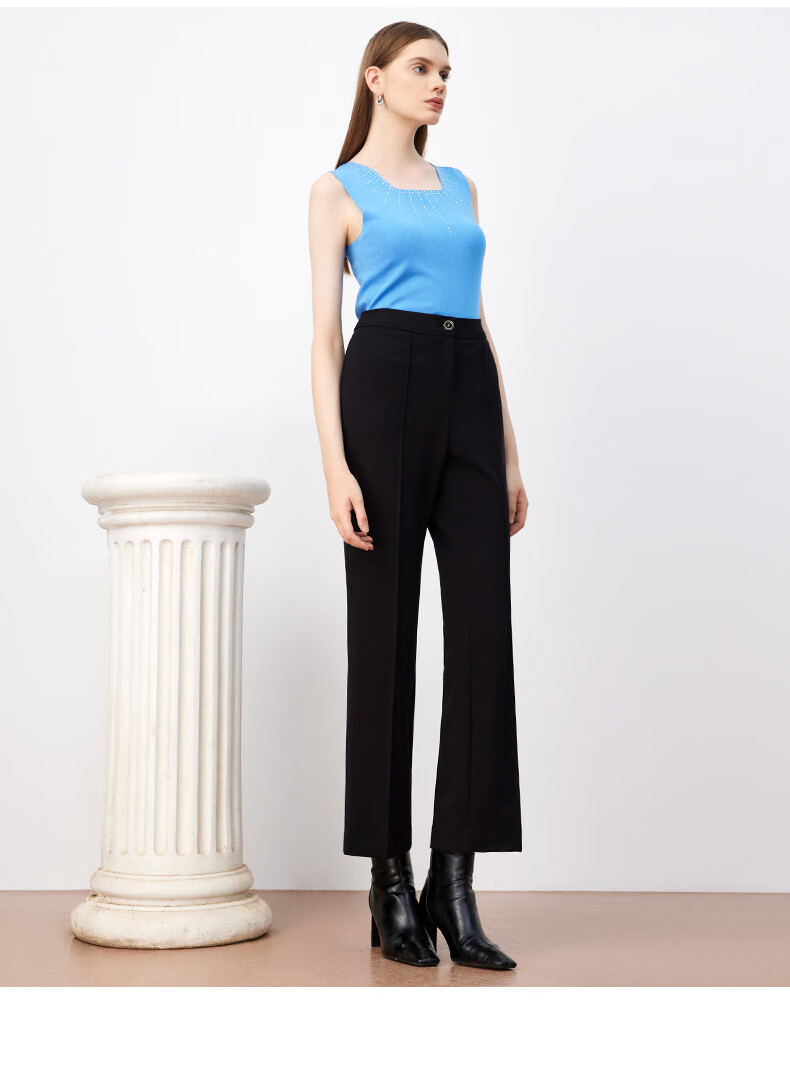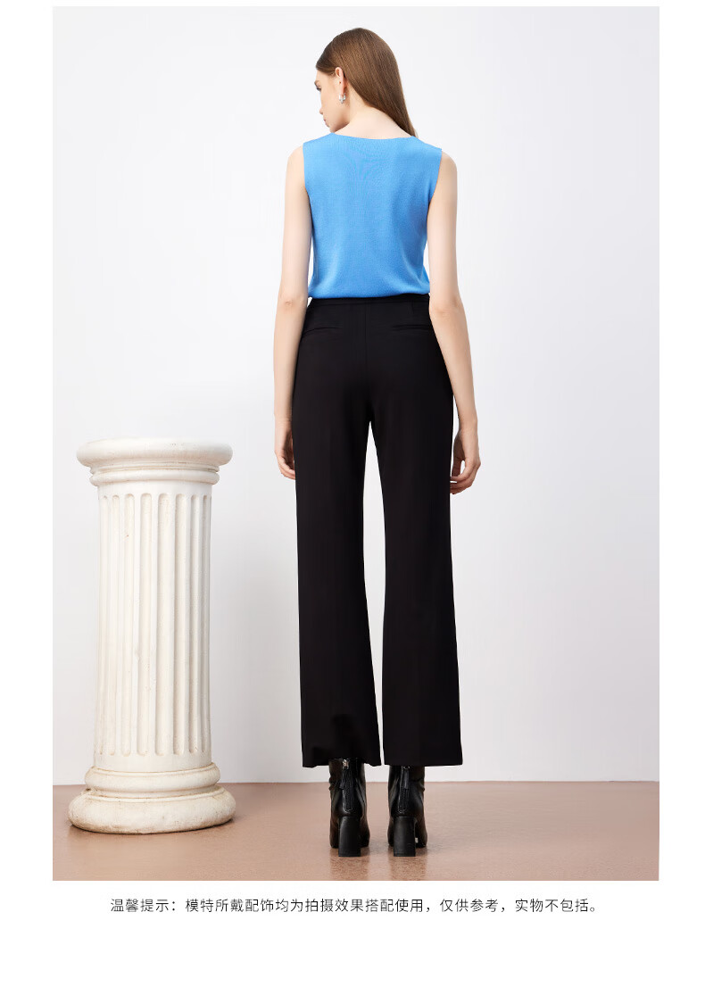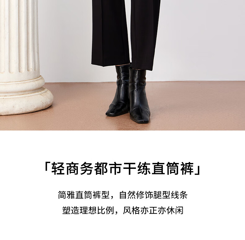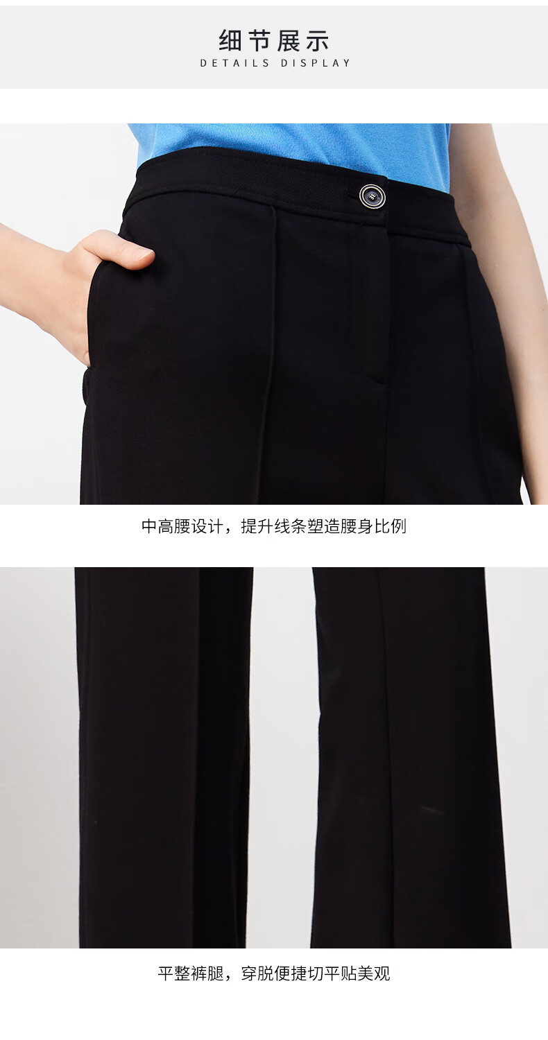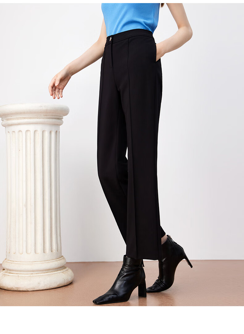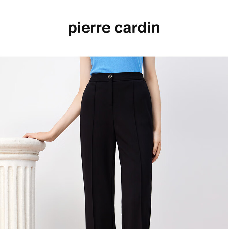 皮尔卡丹女装裤子休闲裤黑色高腰显瘦直筒裤女西裤P3447T3963B0