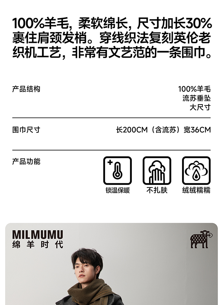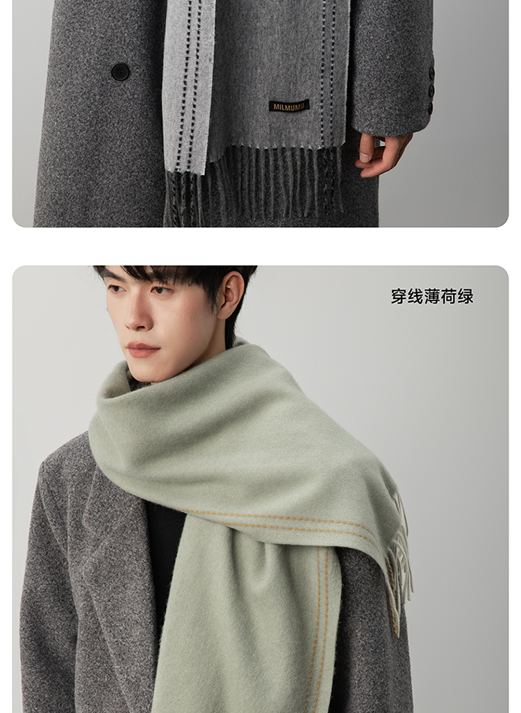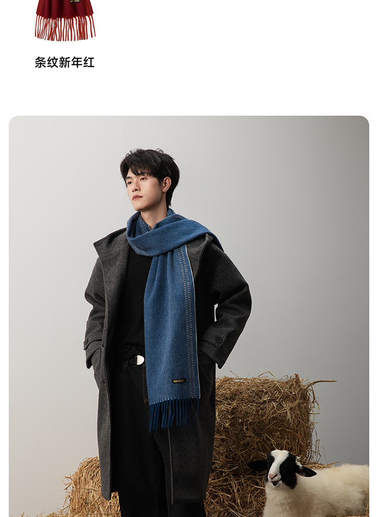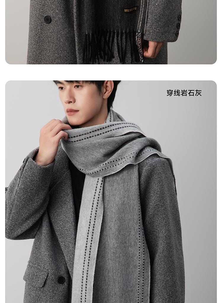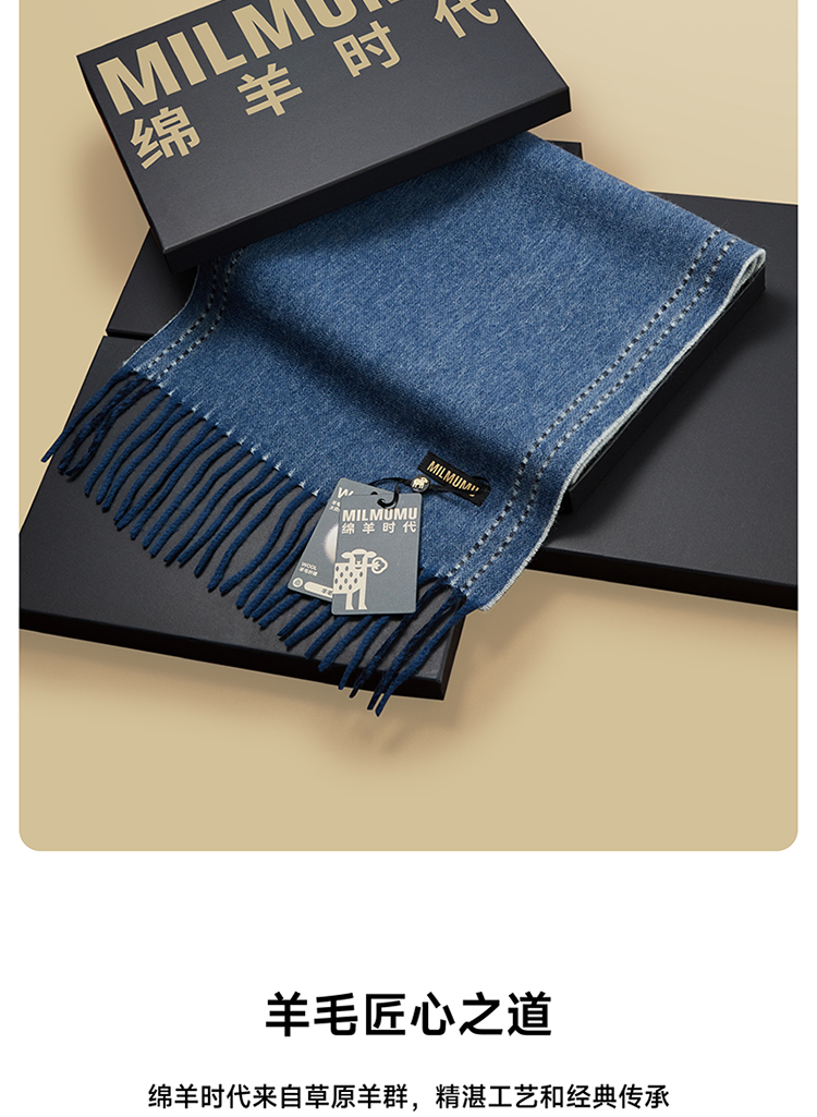【更长更宽】MILMUMU 宽条纹百分百羊毛围巾 男女同款礼盒装 200*36CM 绵密绒感,穿线织法复刻英伦风,文艺范十足