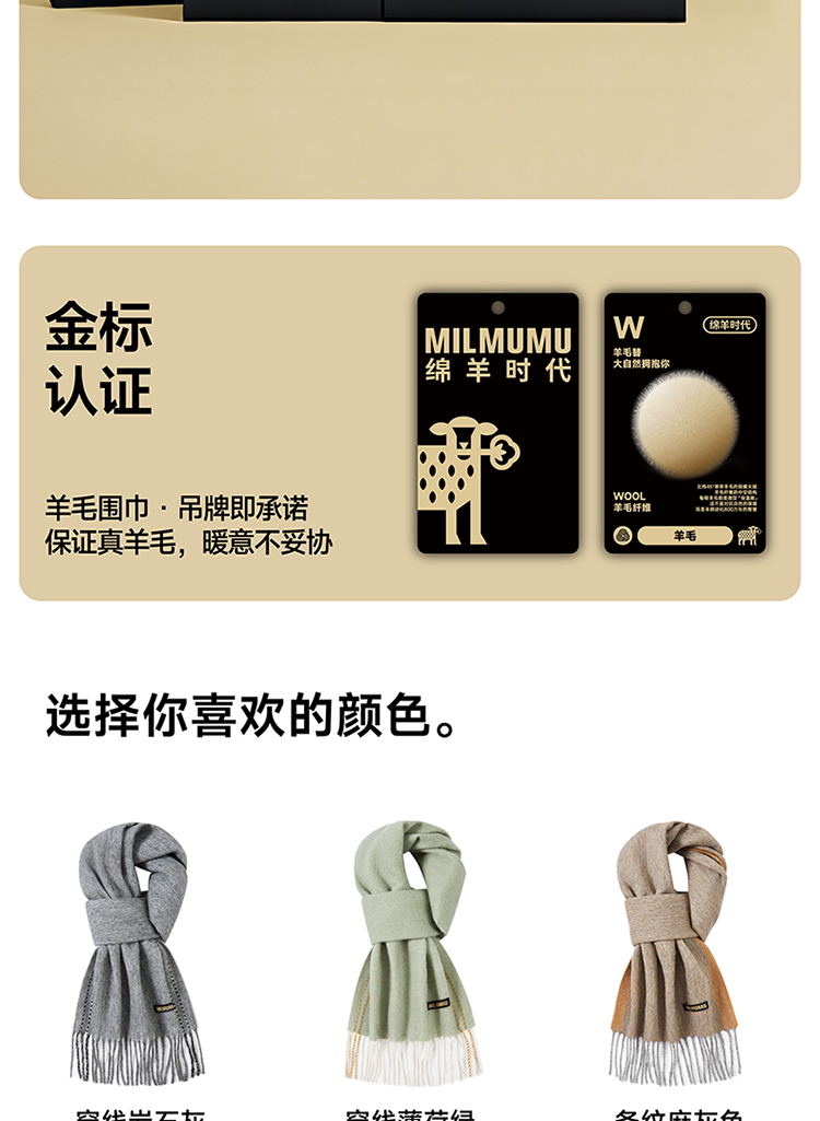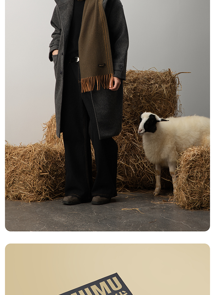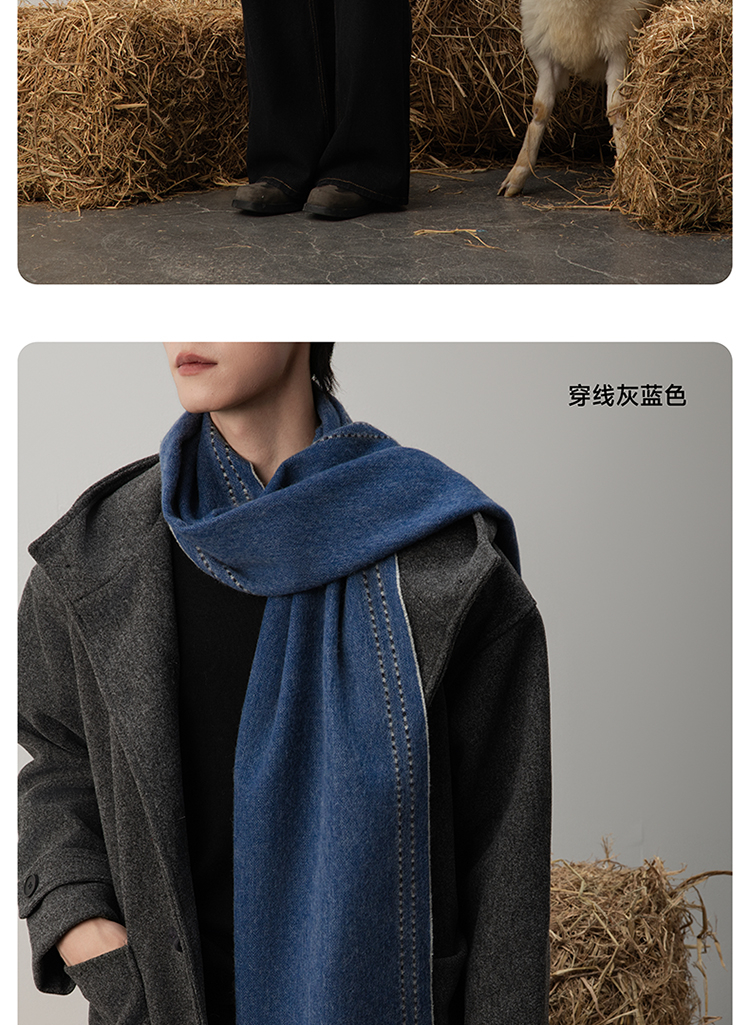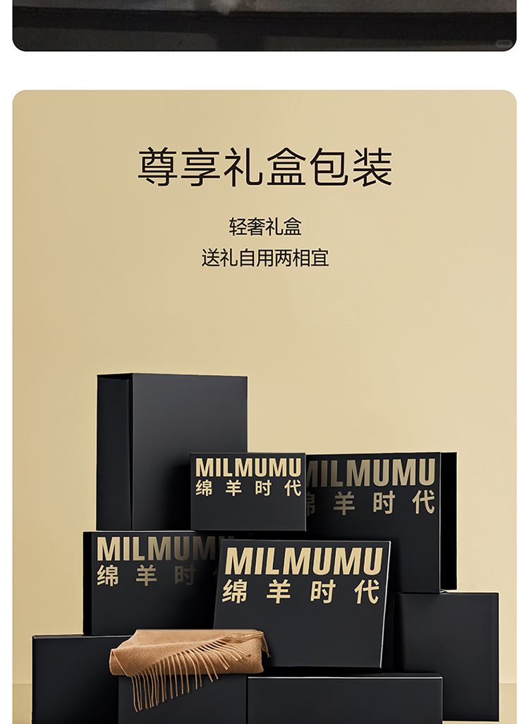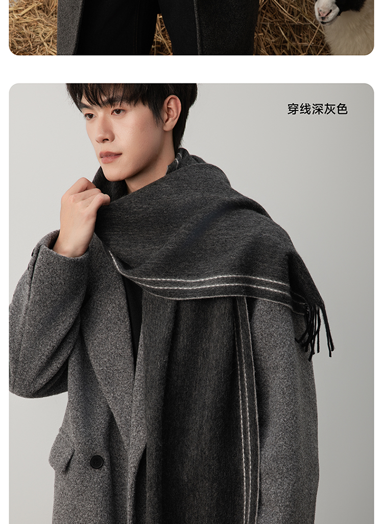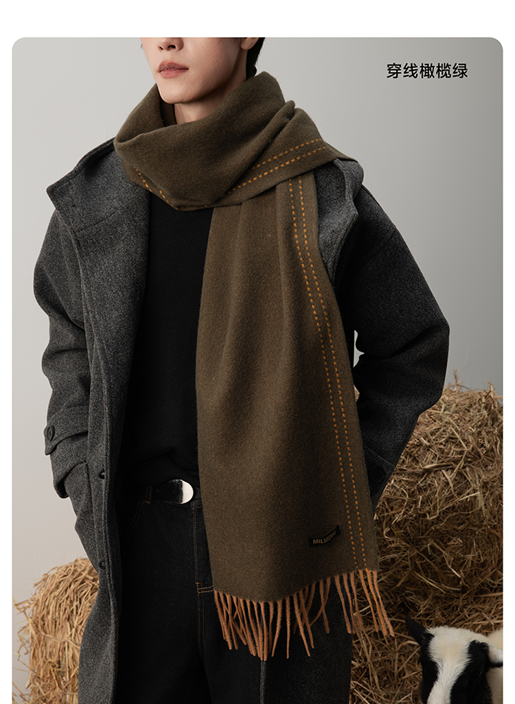 【更长更宽】MILMUMU 宽条纹百分百羊毛围巾 男女同款礼盒装 200*36CM 绵密绒感,穿线织法复刻英伦风,文艺范十足