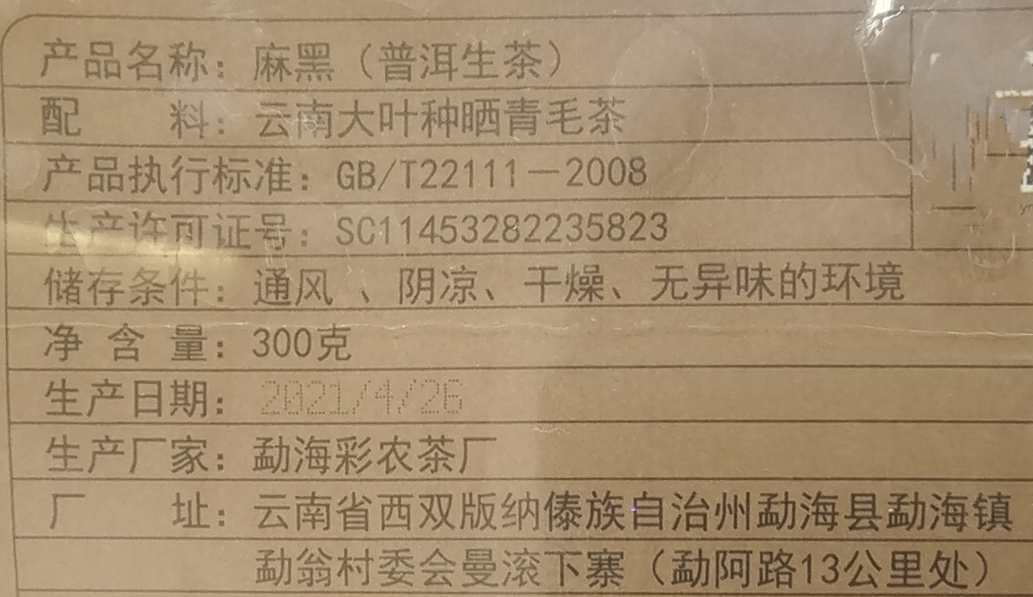 彩农茶|2021春麻黑金玉天·方砖