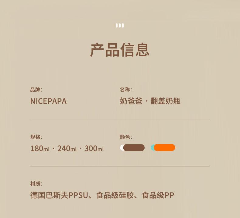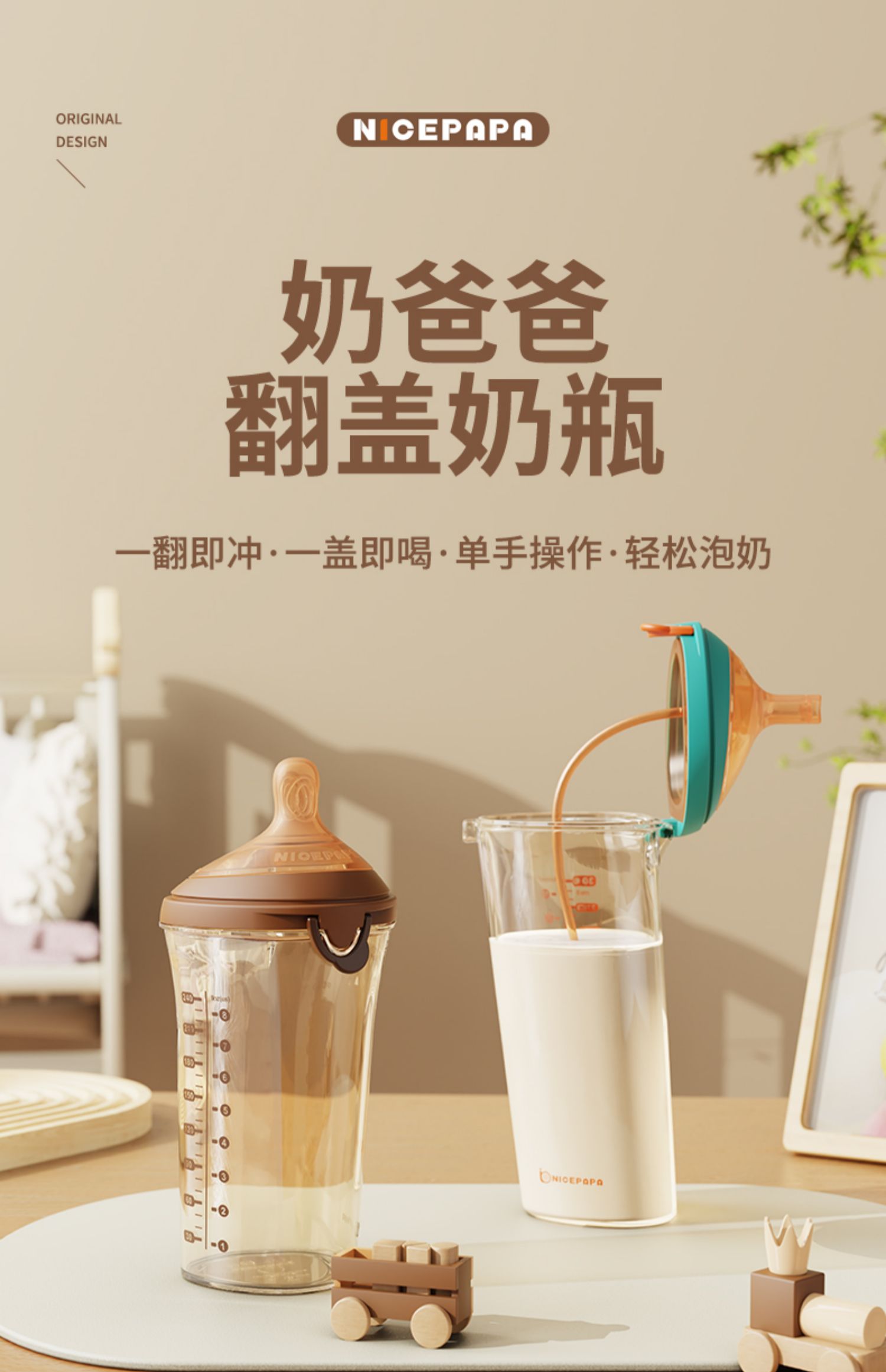 奶爸爸翻盖奶瓶PPSU奶瓶婴儿宝宝吸管奶瓶180ml奶瓶240ml奶瓶300ml