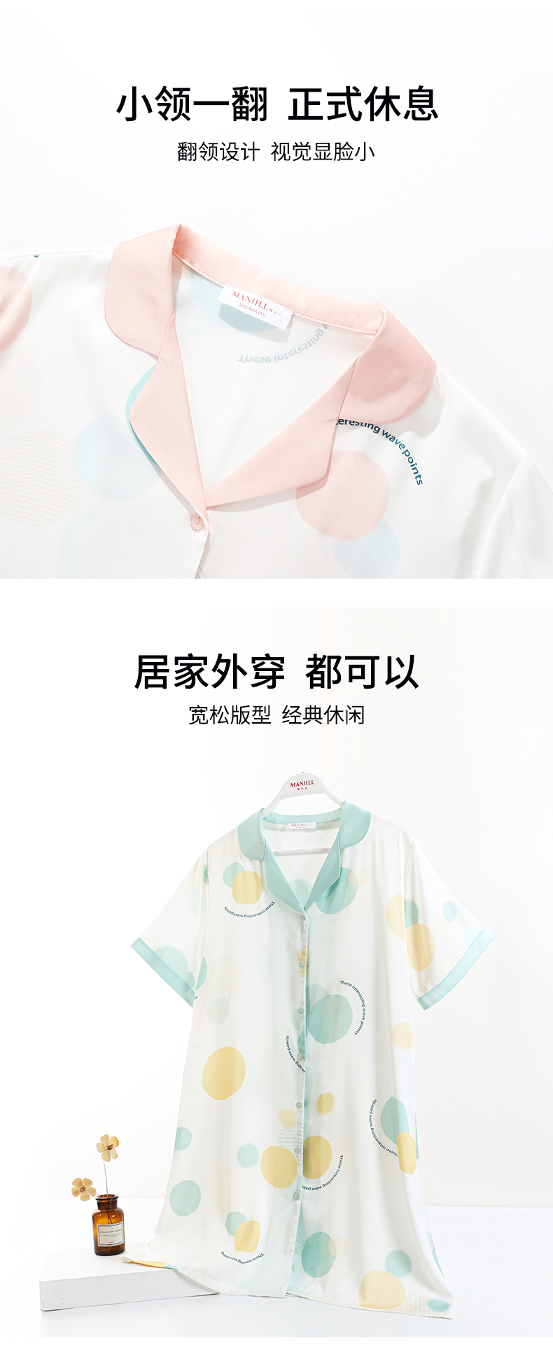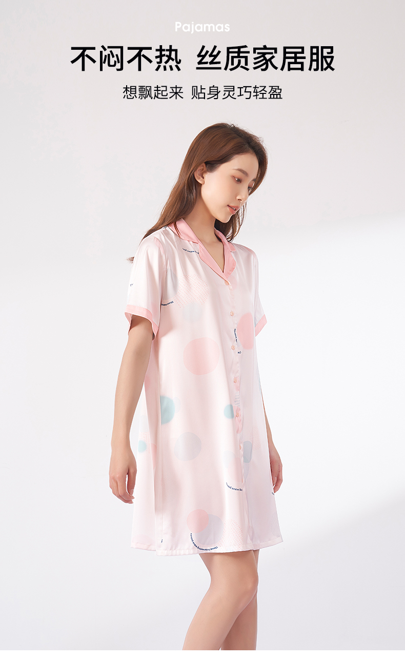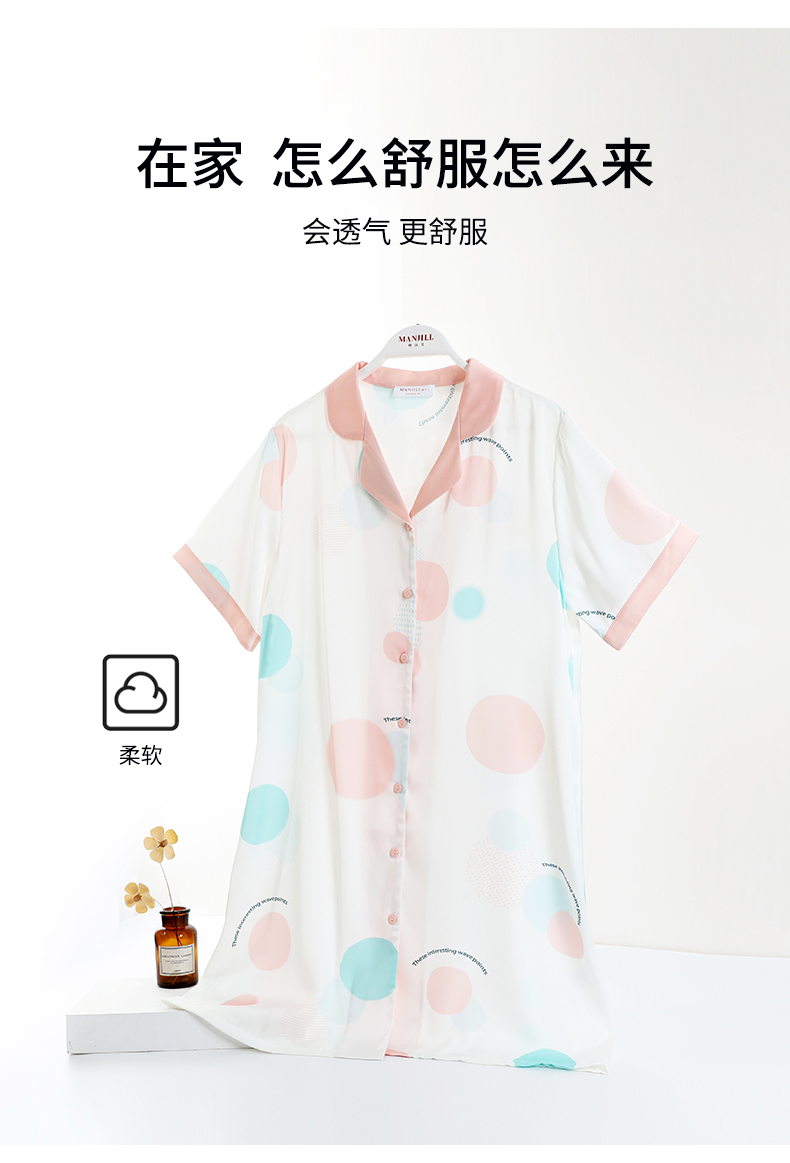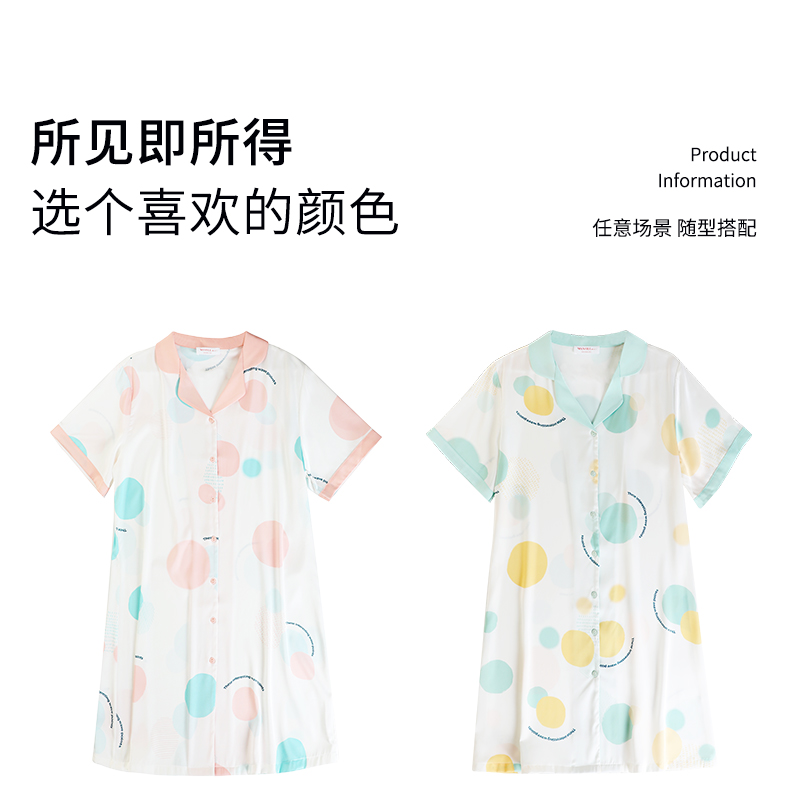熳洁儿 冰雪丝夏季薄款开襟短袖裙睡裙减龄舒适商场同款23203102