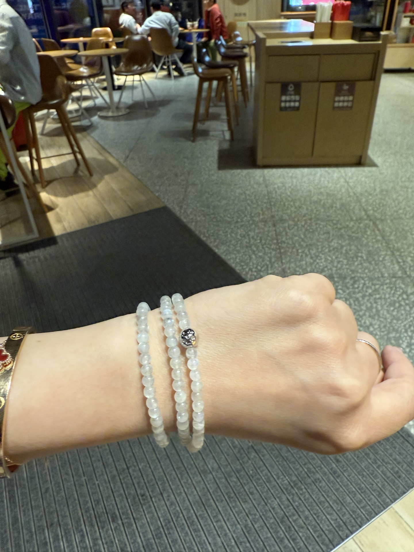 出台湾的 简洁 大方款 东陵玉 加 白水晶 转运珠 手链