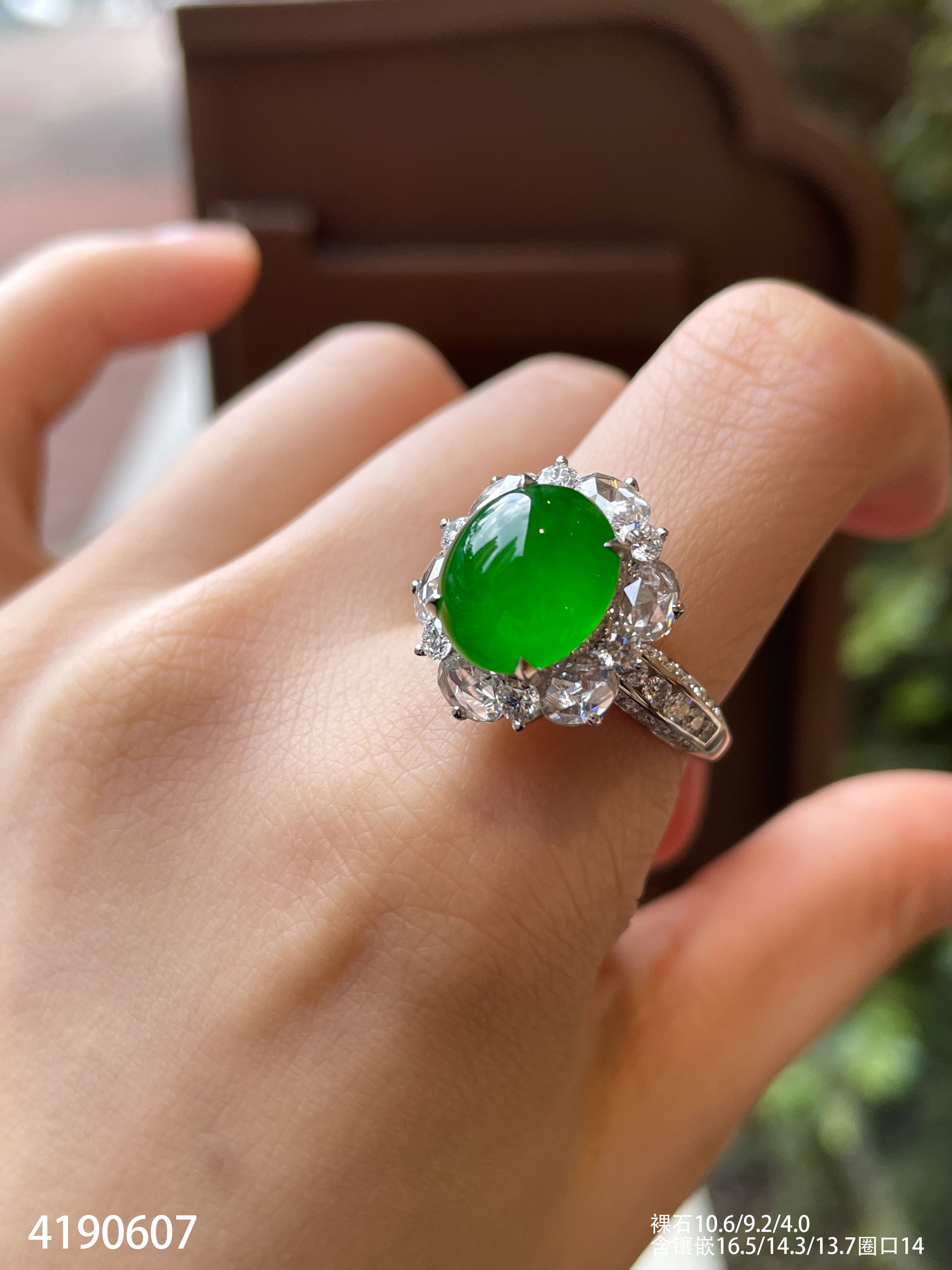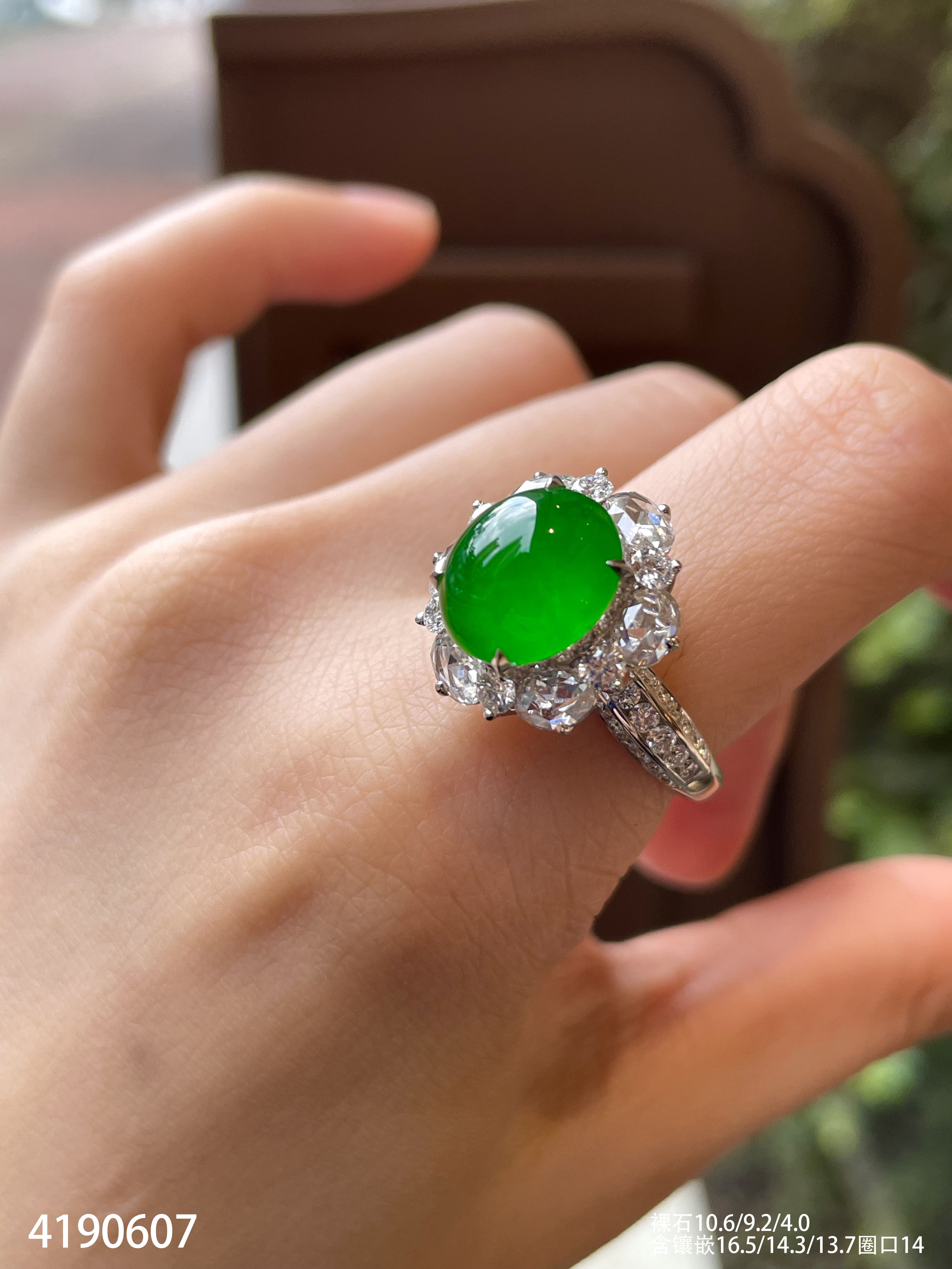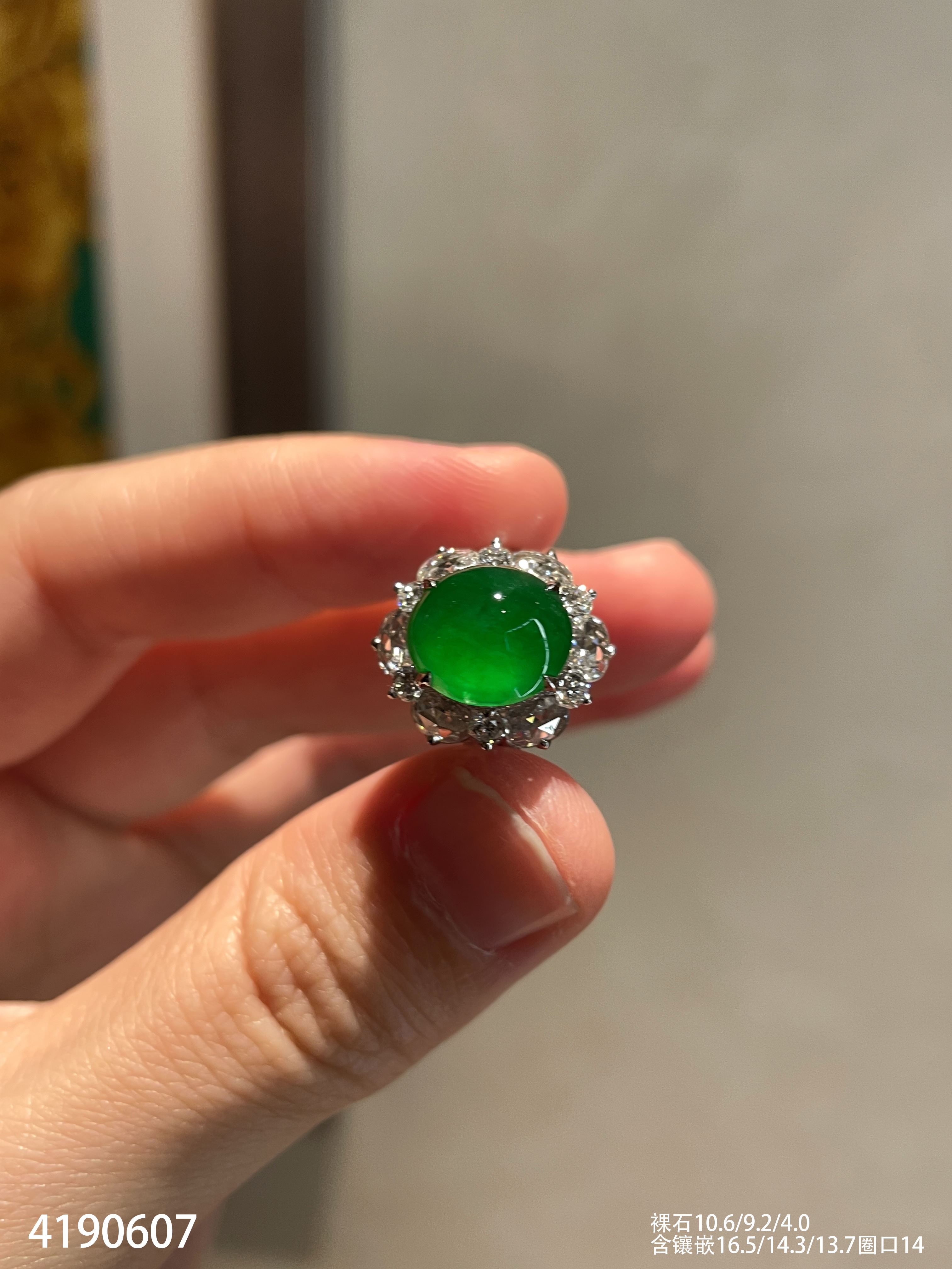 玻璃种蛋面戒指【4190607】具体价格微信咨询