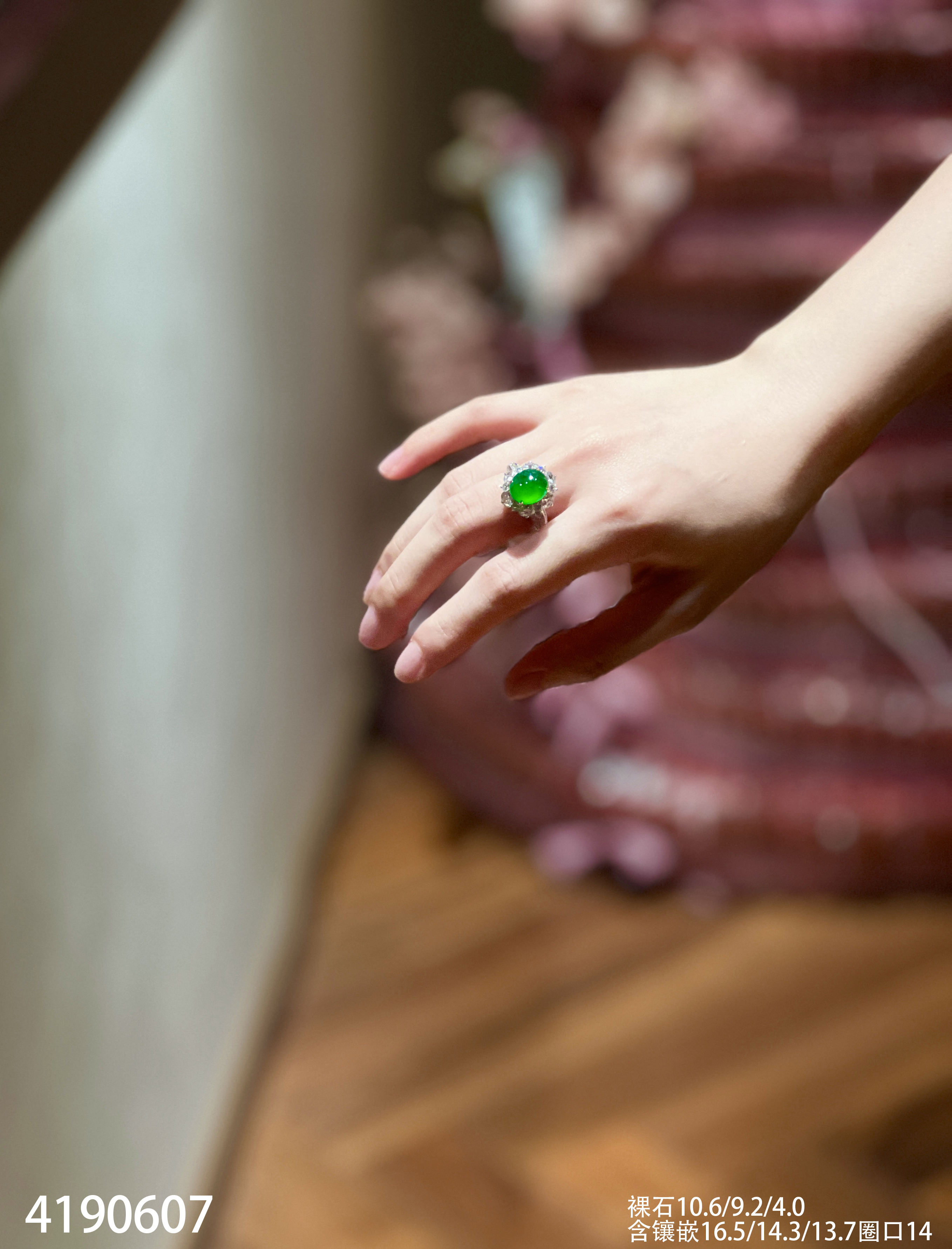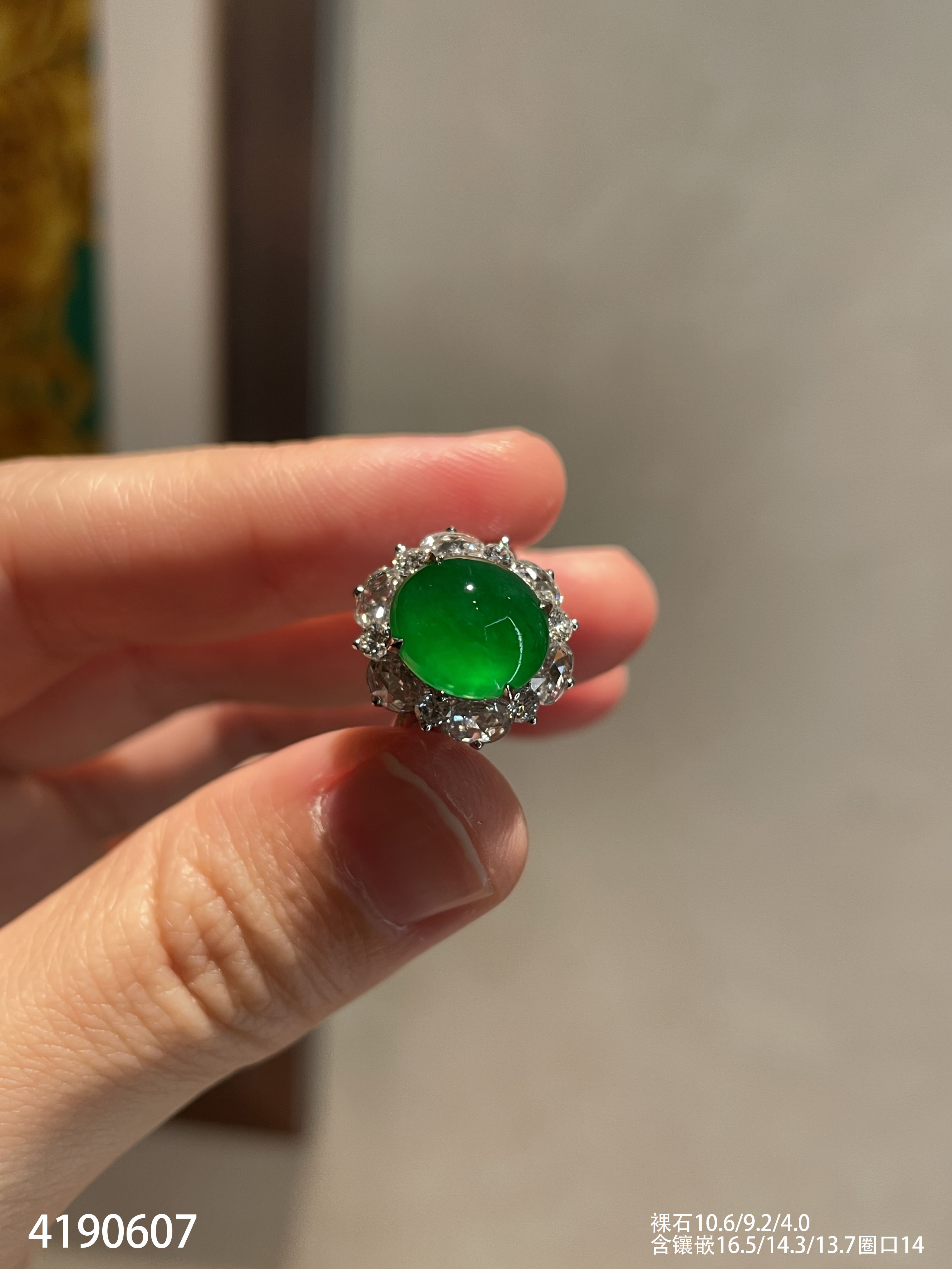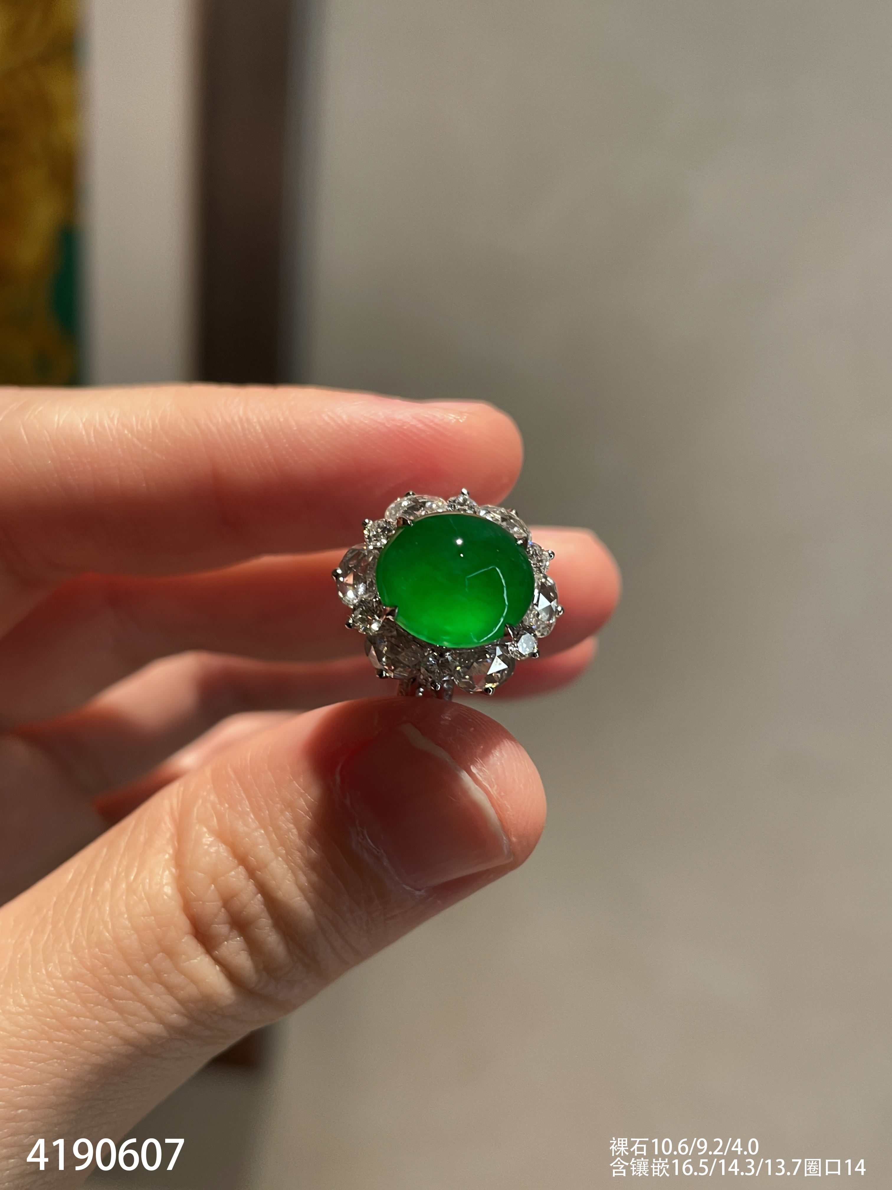 玻璃种蛋面戒指【4190607】具体价格微信咨询