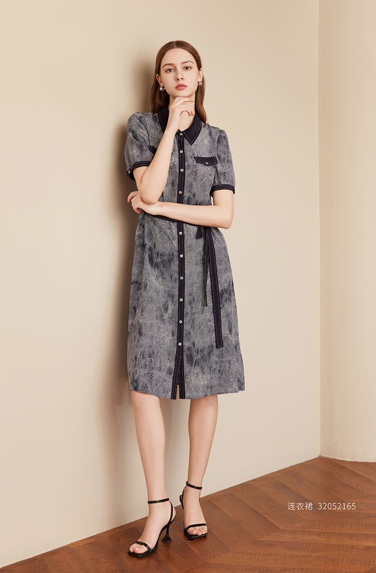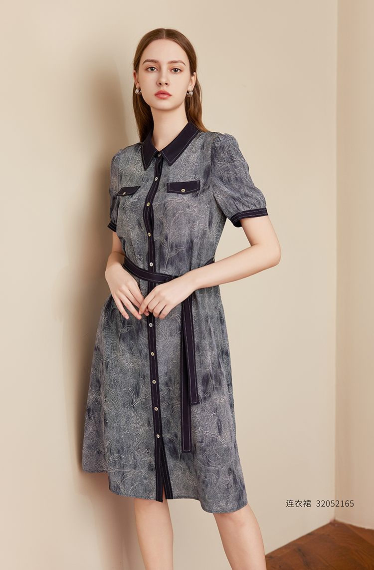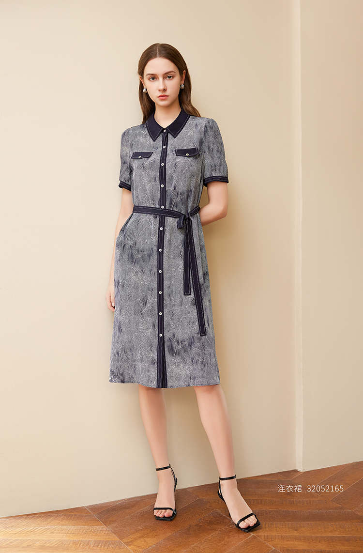 【衬衫款真丝裙】25年夏季新品女士100%桑蚕丝中长款系带收腰连衣裙