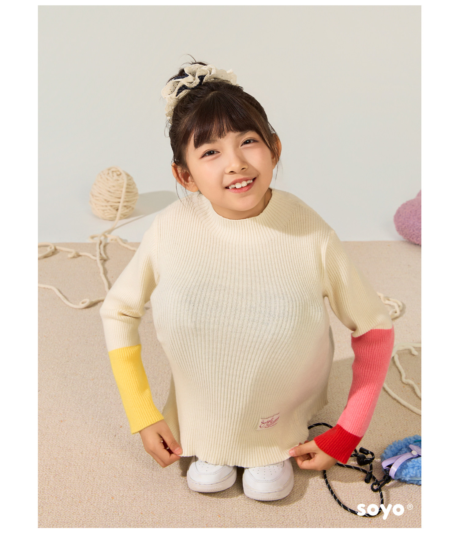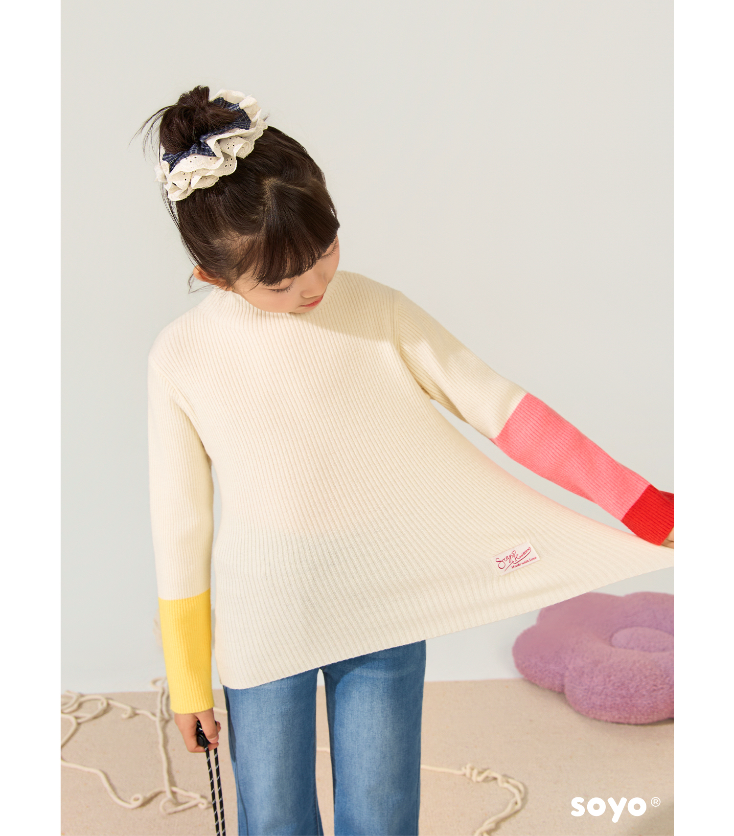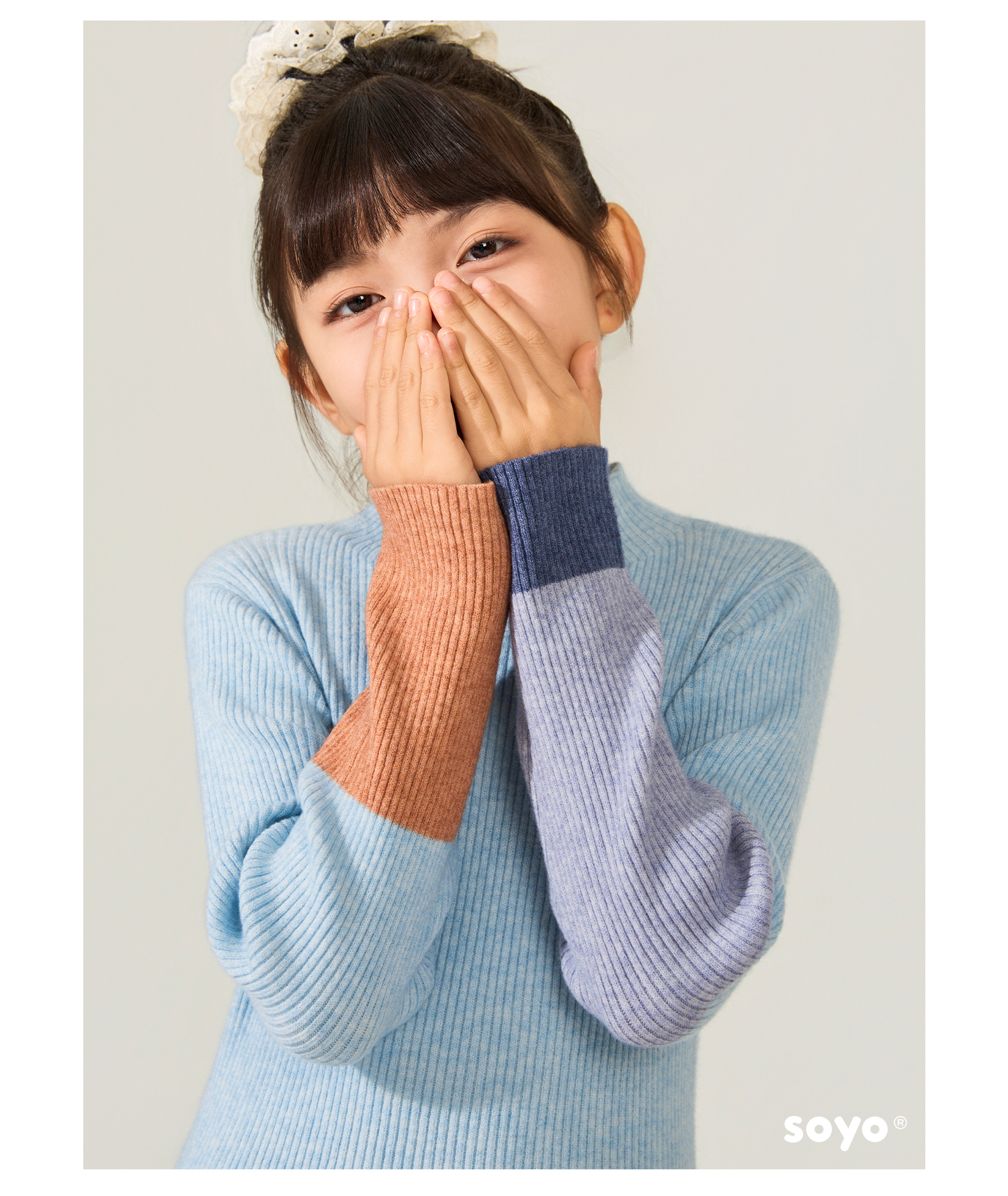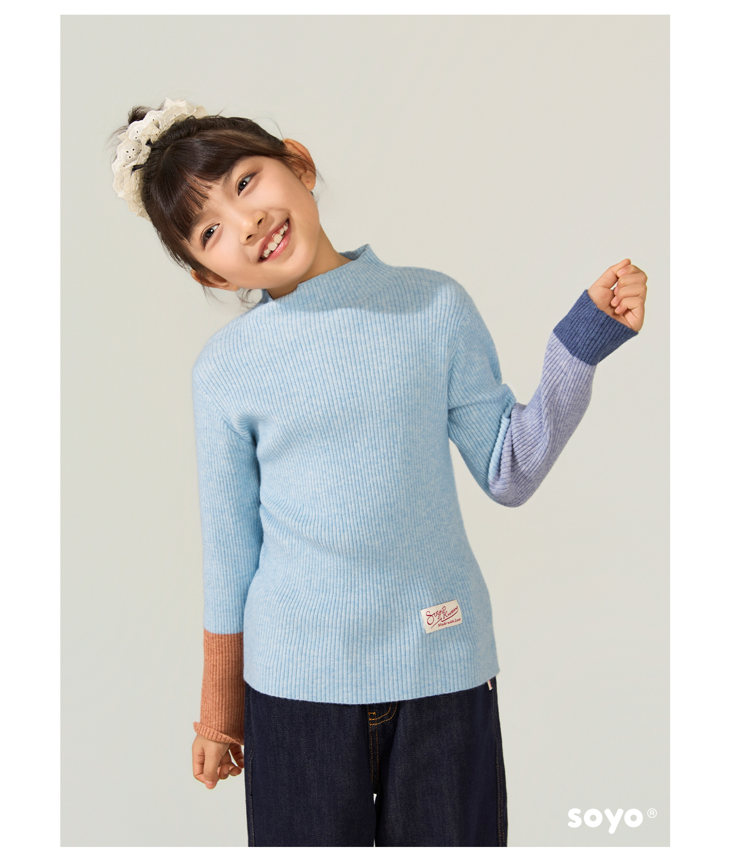 soyo舍予良仓俏皮可爱小高领袖子撞色打底针织衫