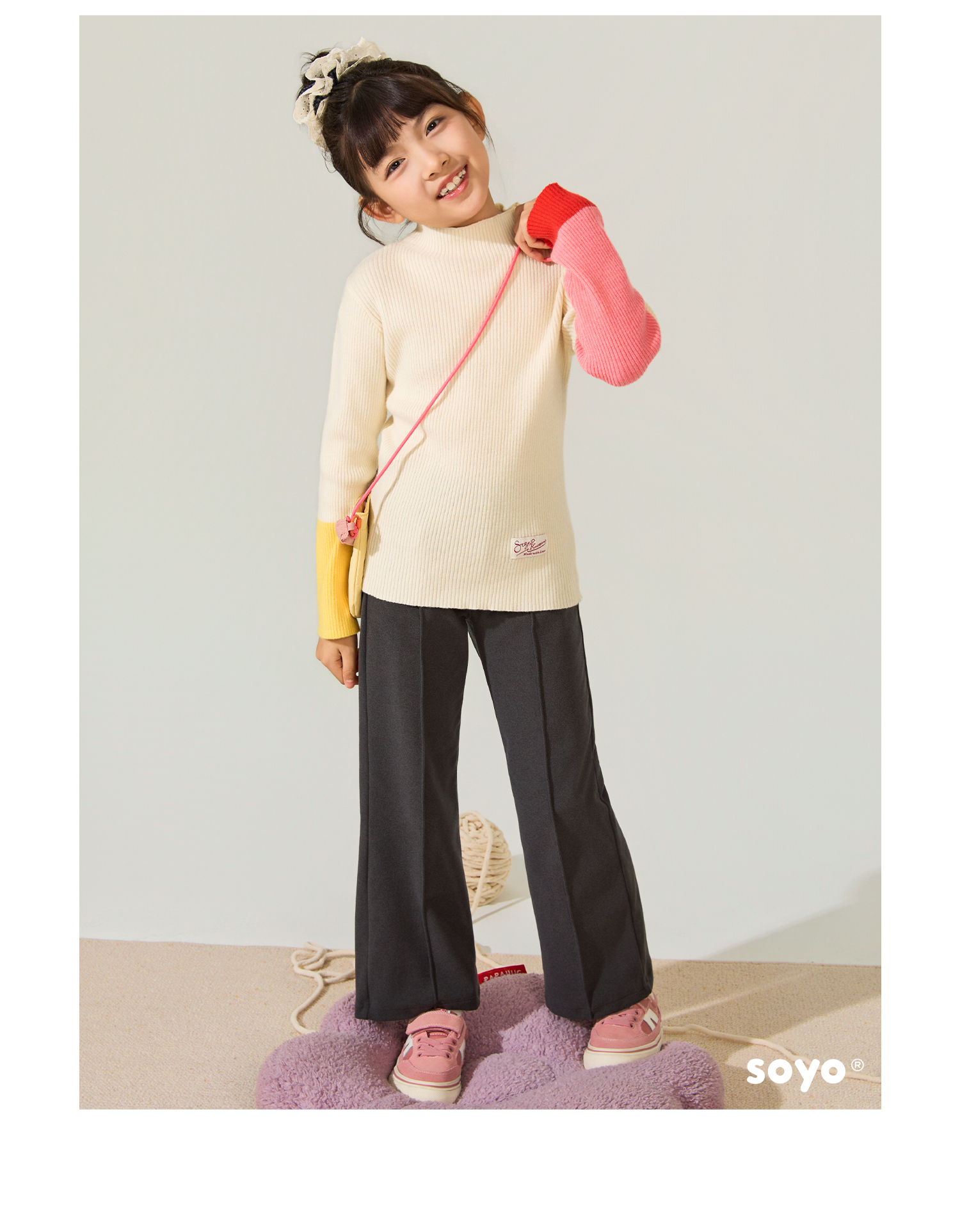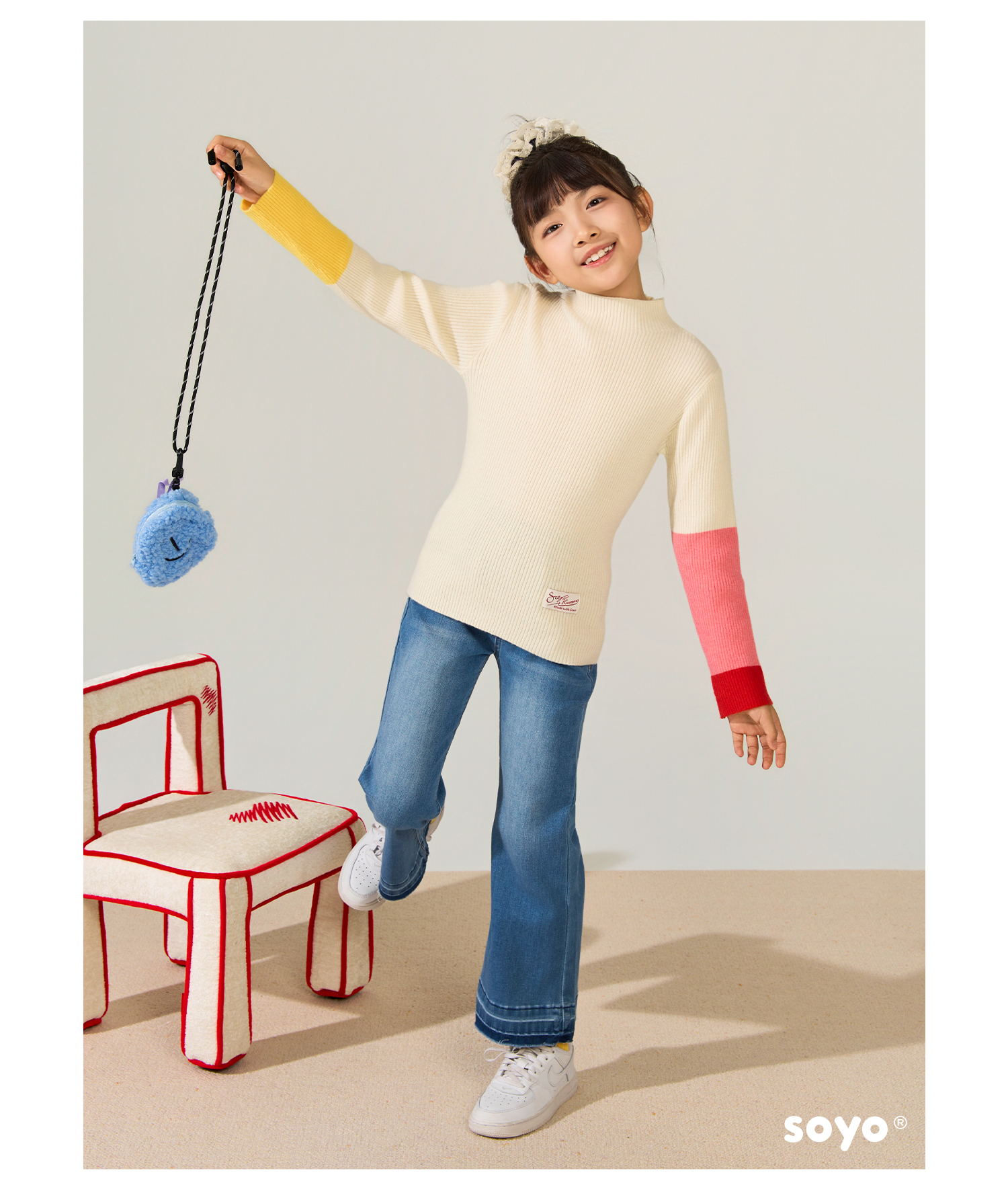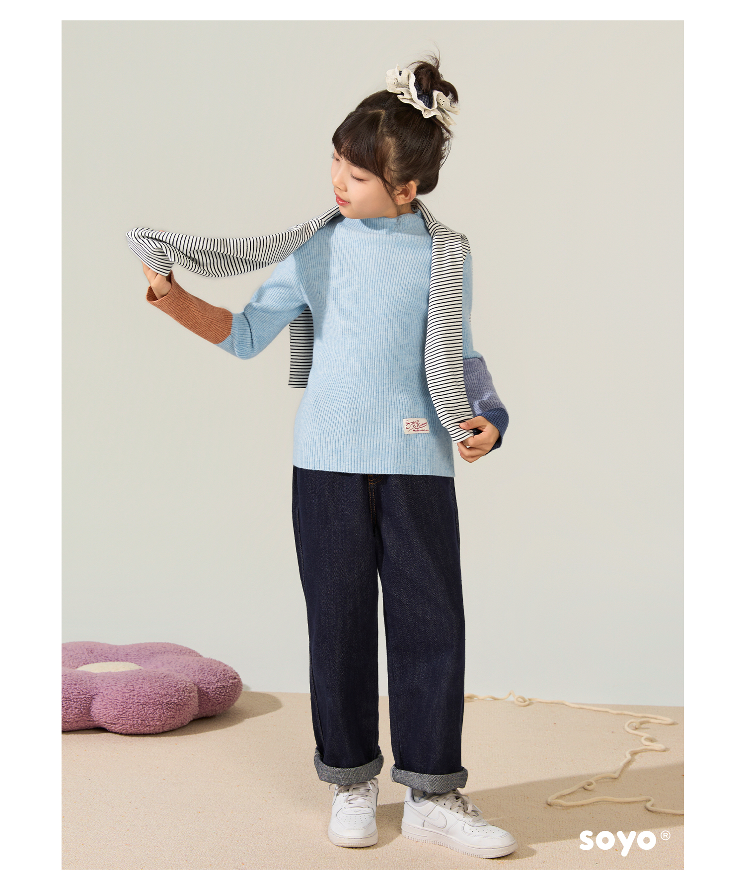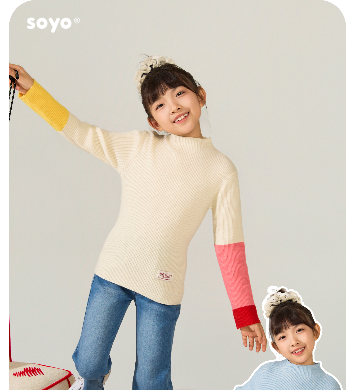 soyo舍予良仓俏皮可爱小高领袖子撞色打底针织衫