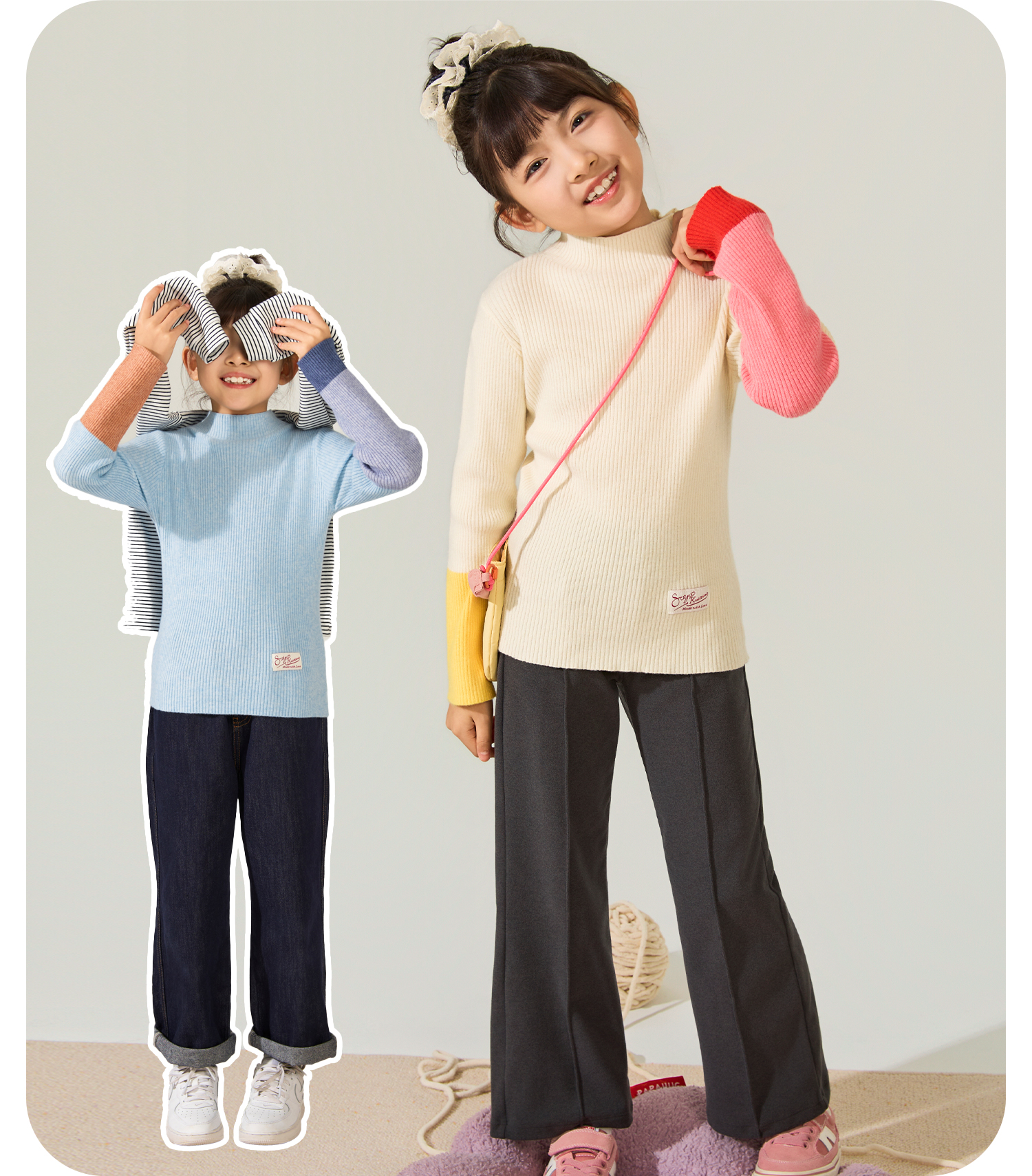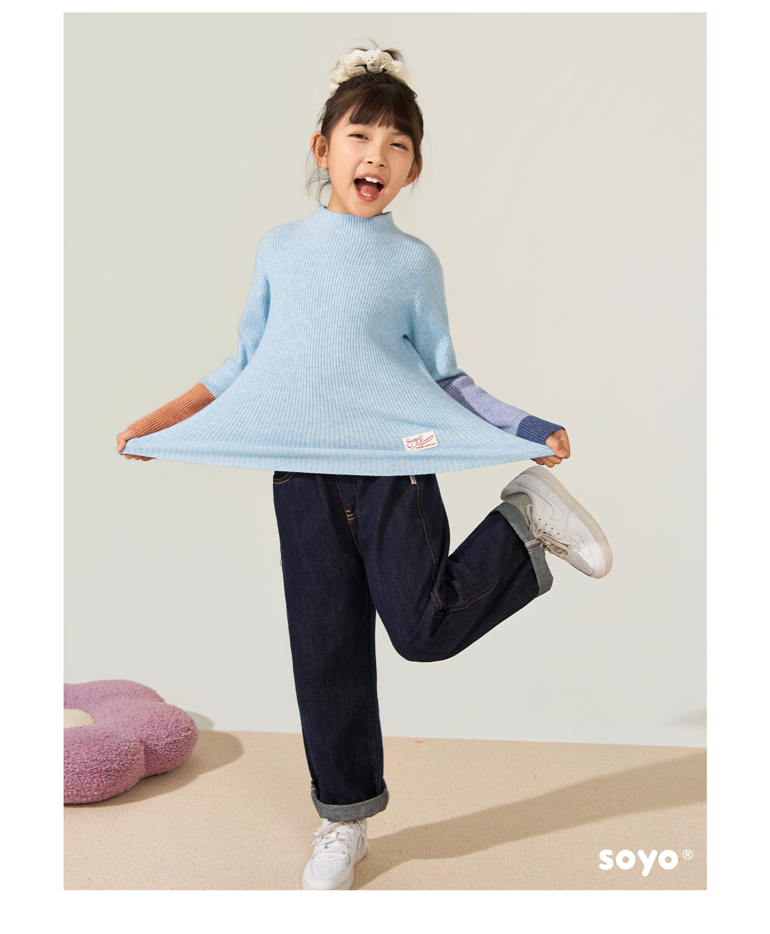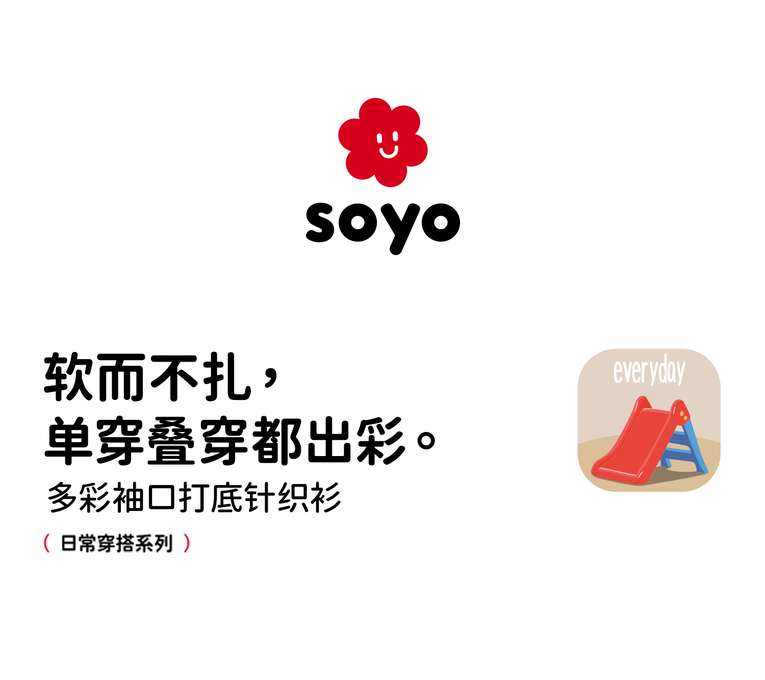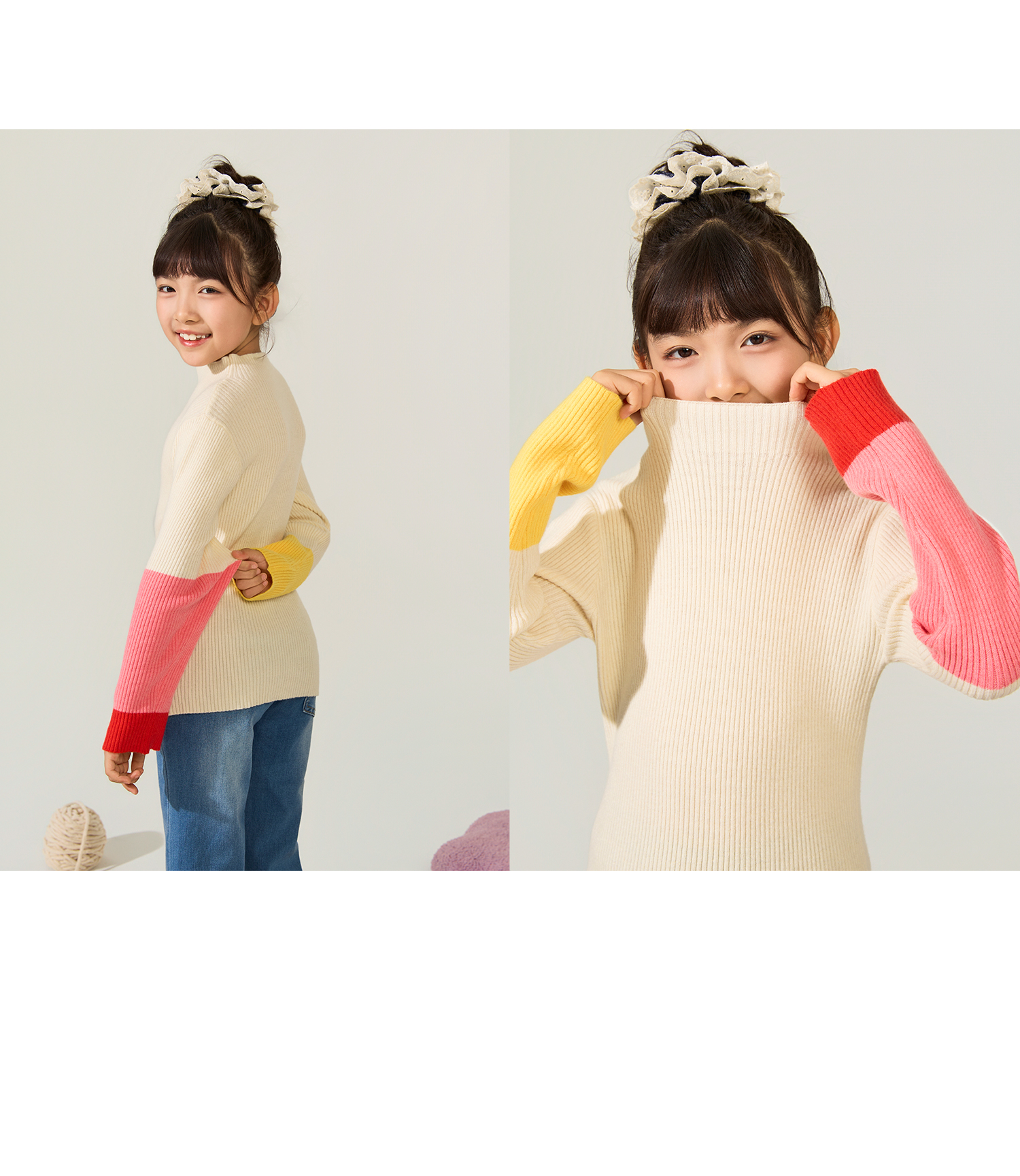 soyo舍予良仓俏皮可爱小高领袖子撞色打底针织衫