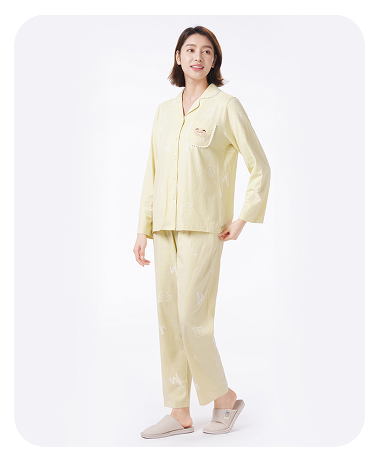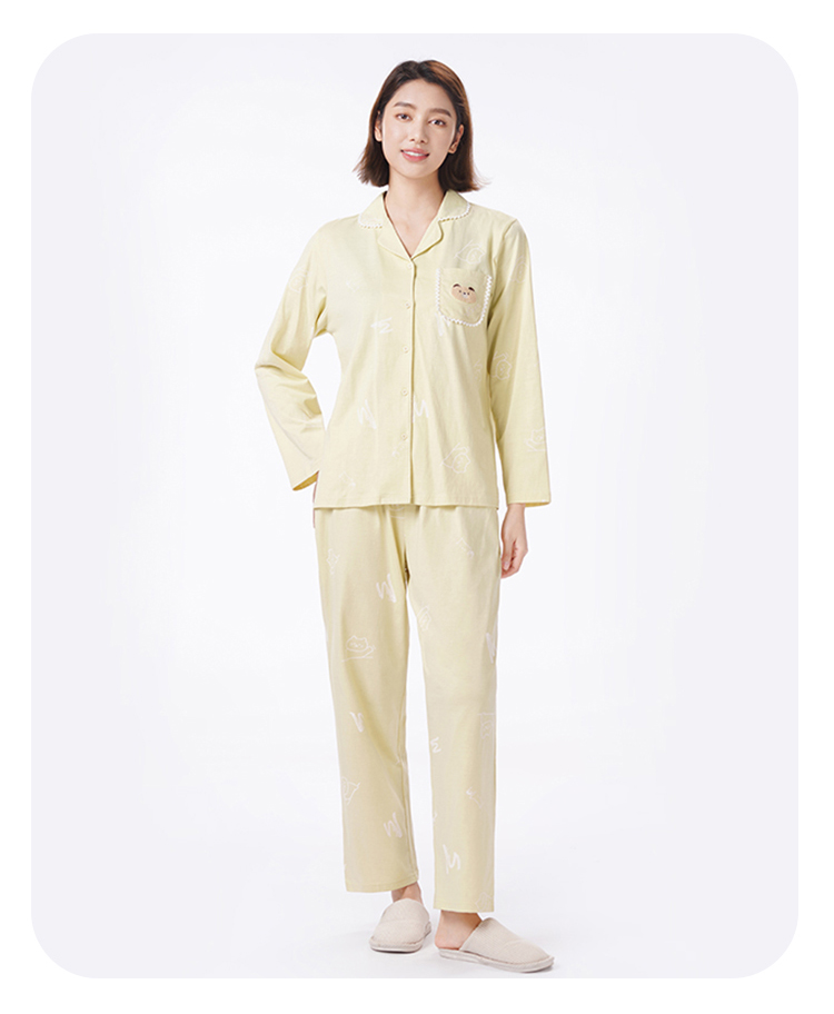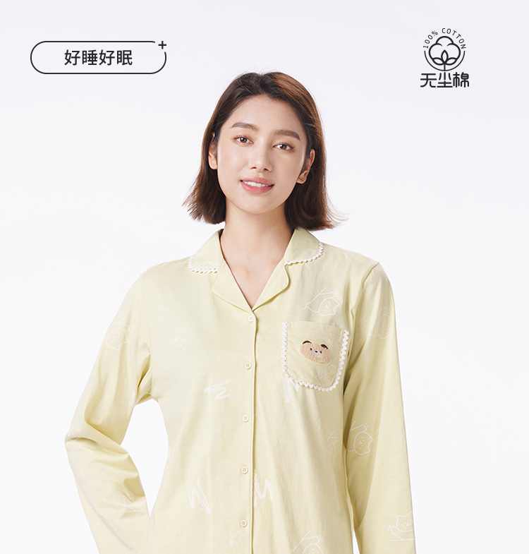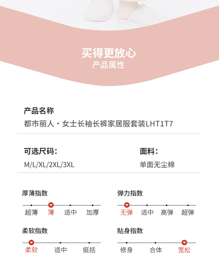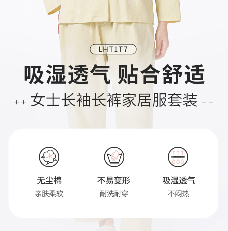 都市丽人睡衣好睡好眠长袖家居服单面无尘棉薄女士棉质套装LHT1T7
