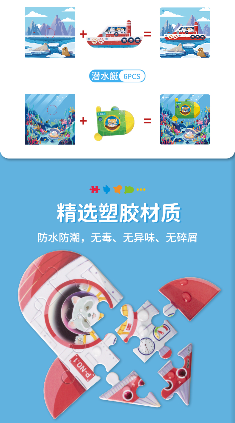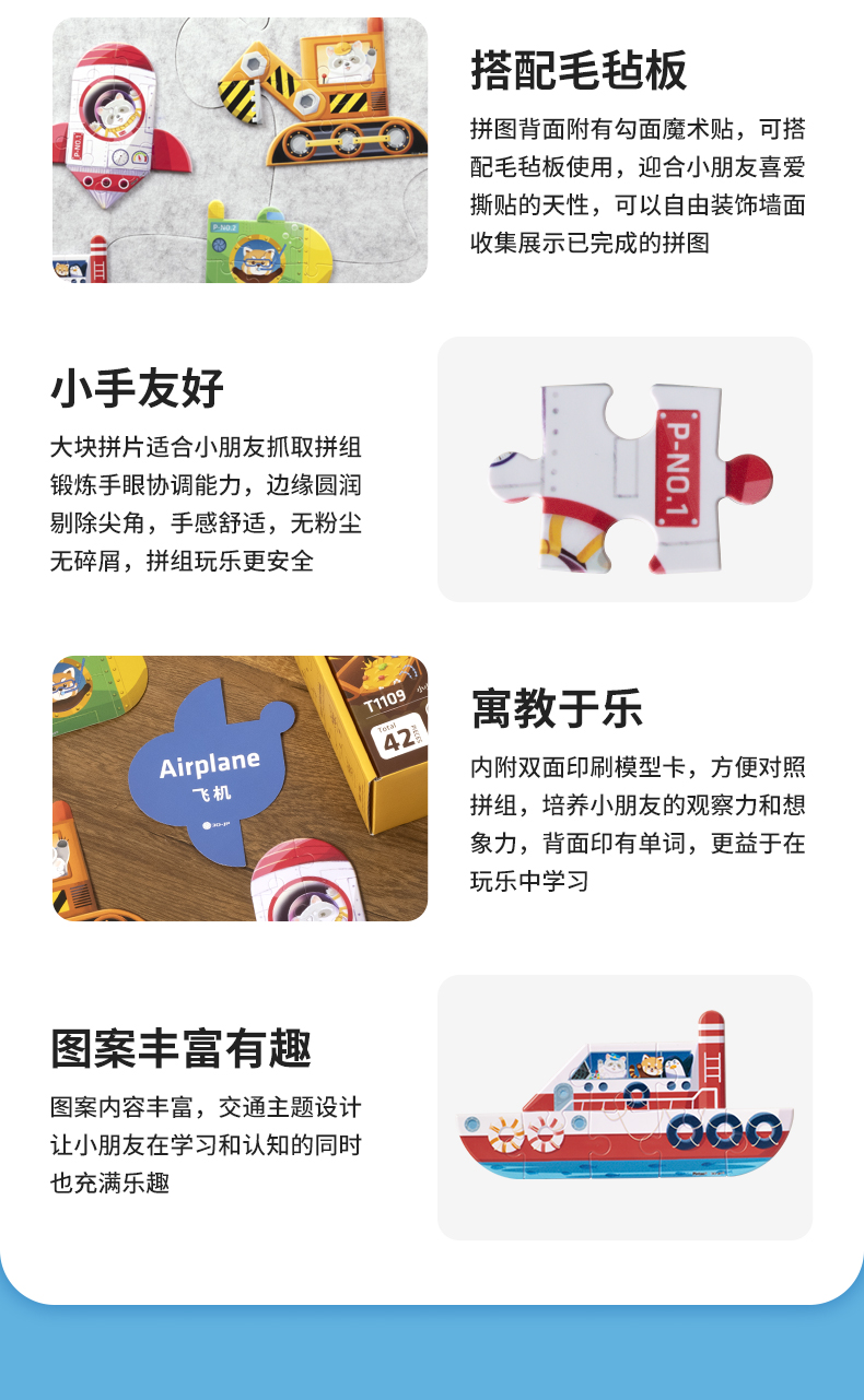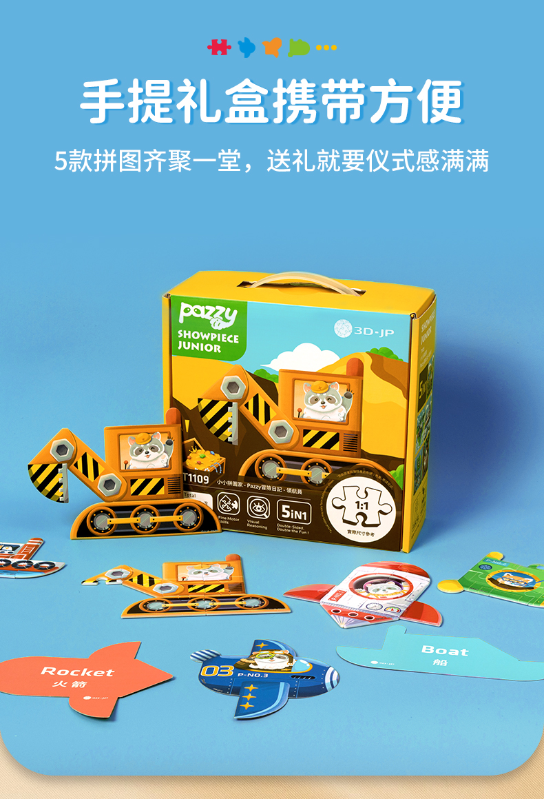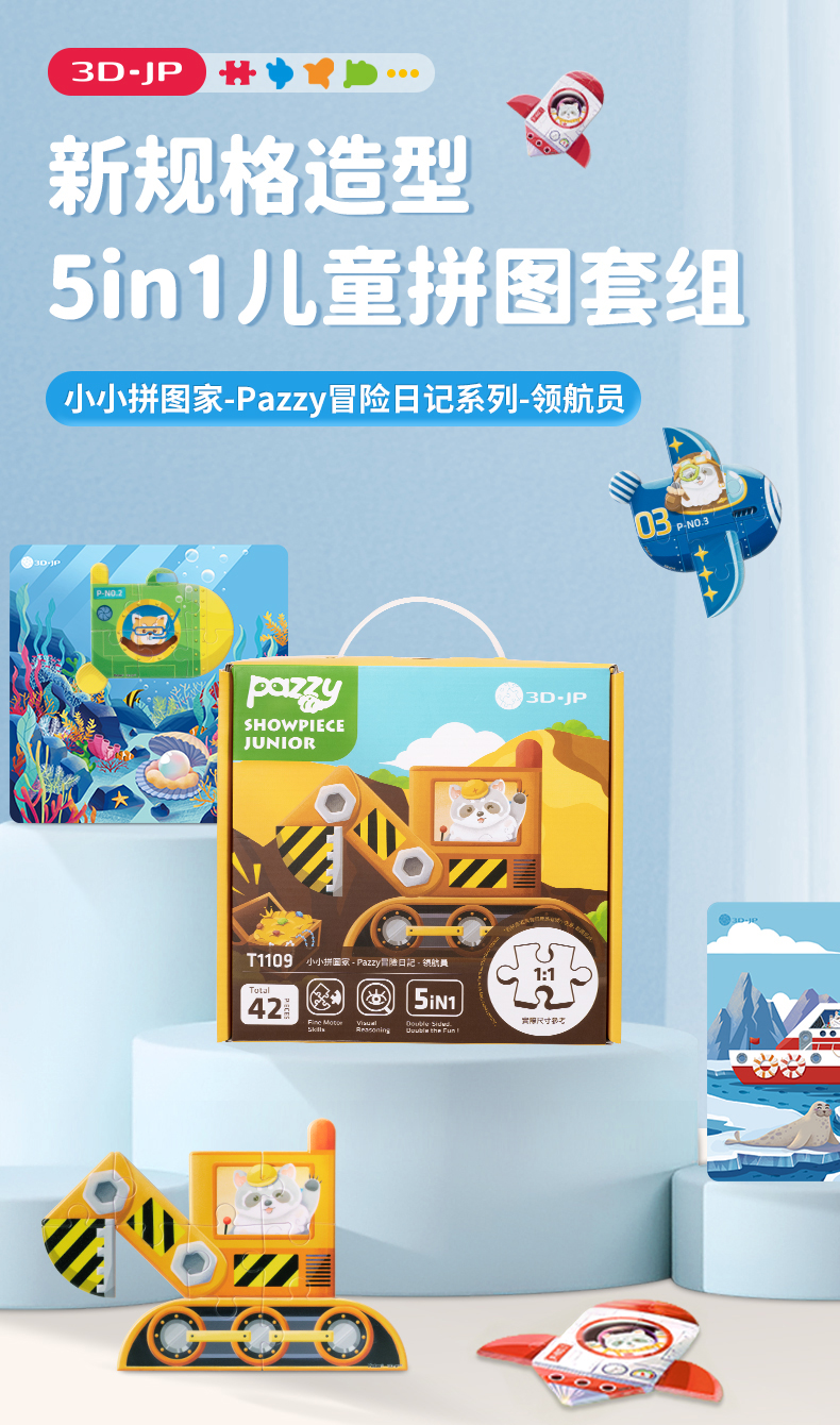 【折扣商品 不退不换】42片 造型儿童拼图套装 T1109 小小拼图家-Pazzy冒险日记-领航员