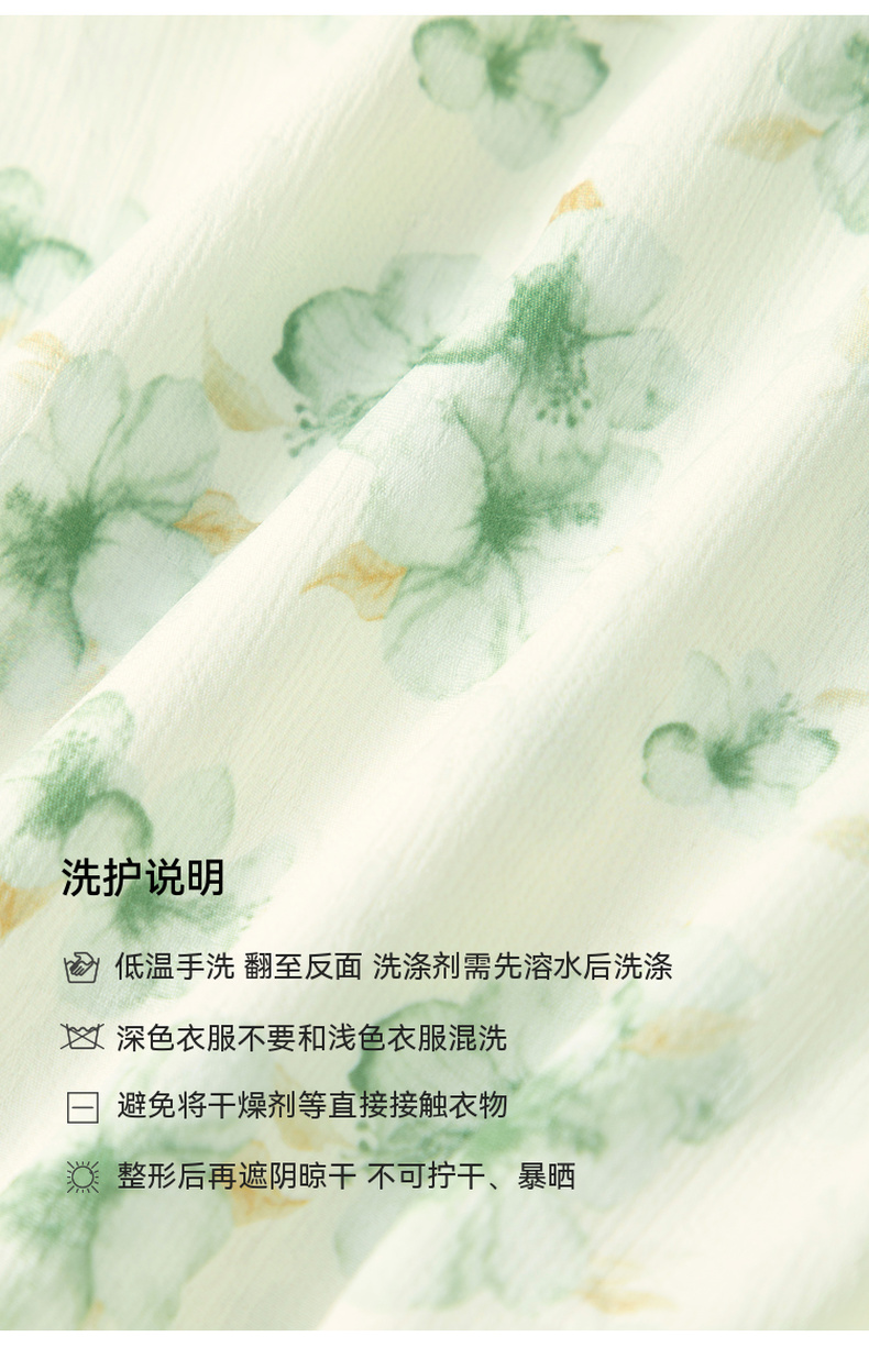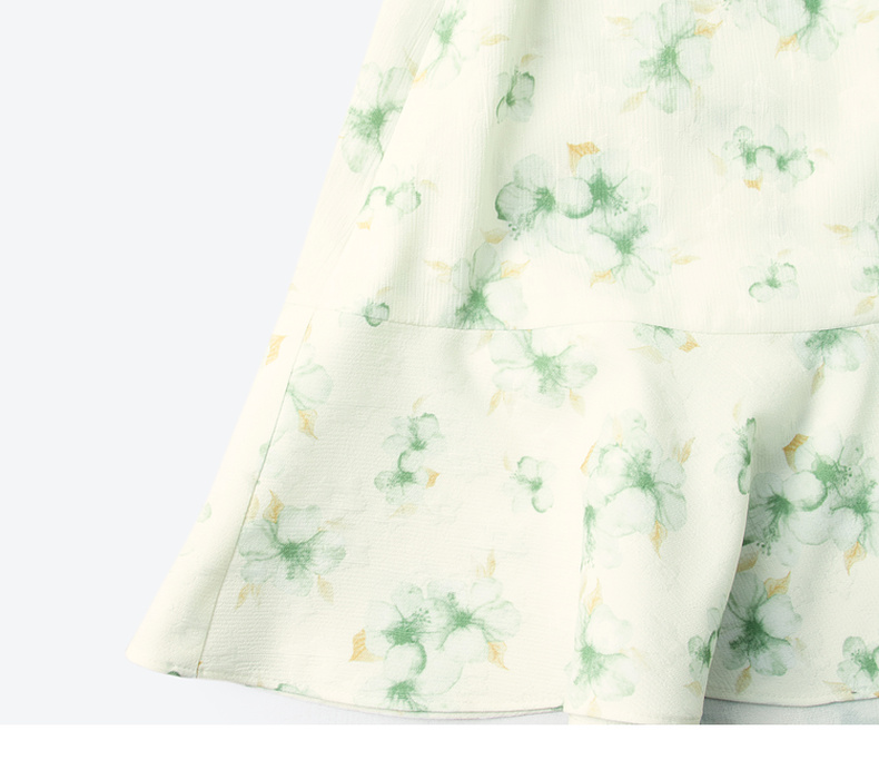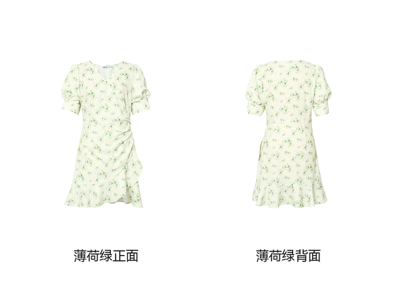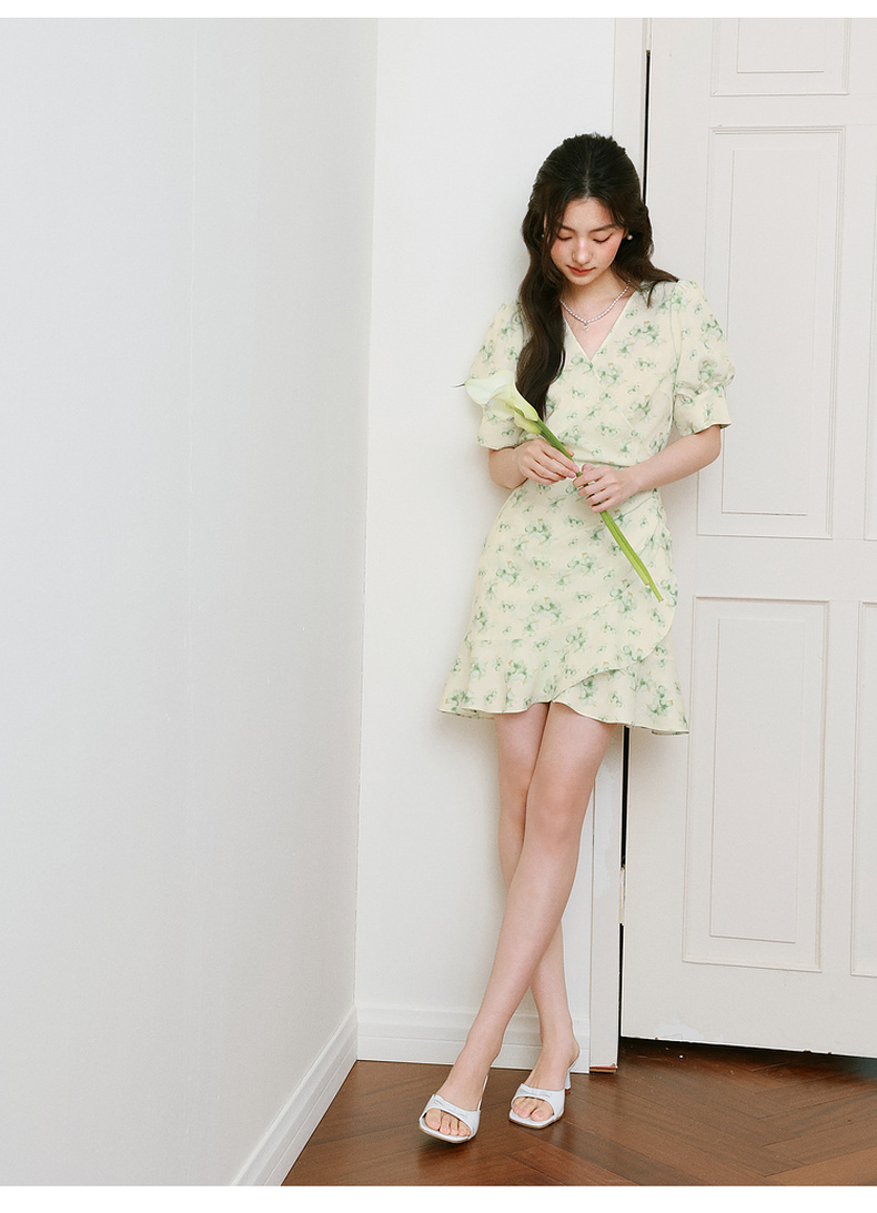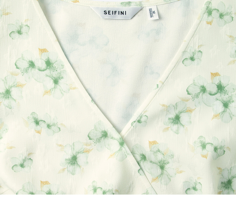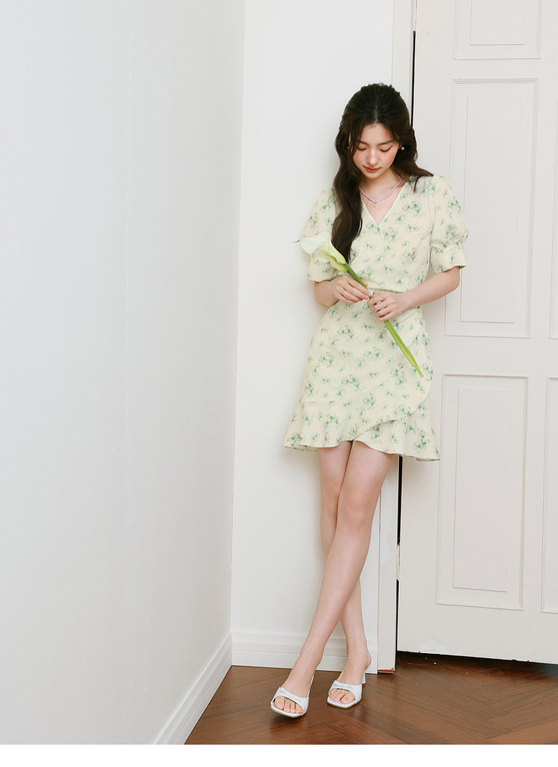 【严选】诗凡黎碎花连衣裙2025春季显瘦甜美暗纹提花泡泡袖围裹式茶歇裙7G3190221