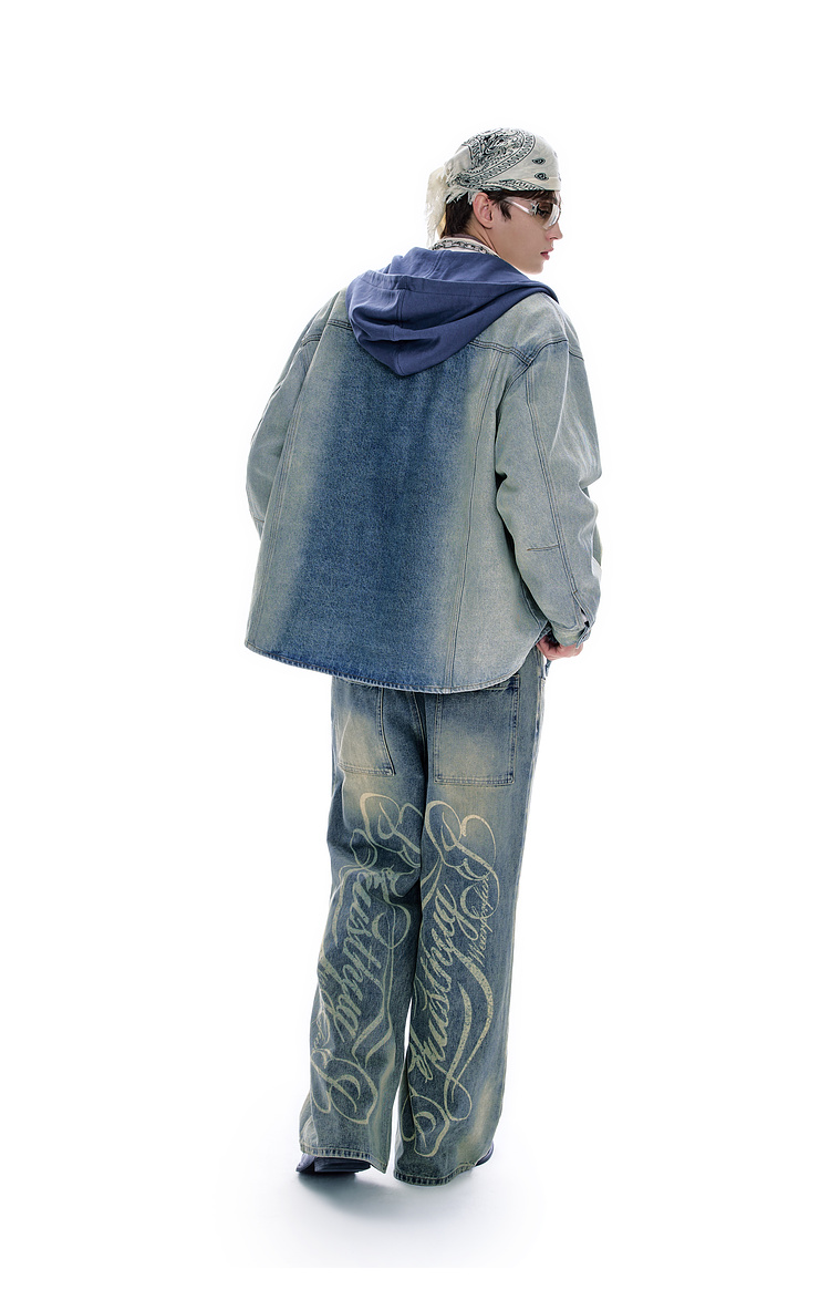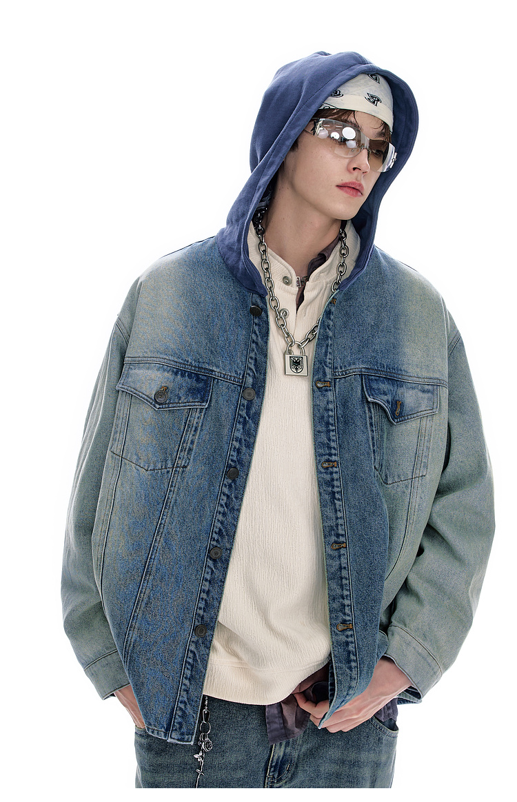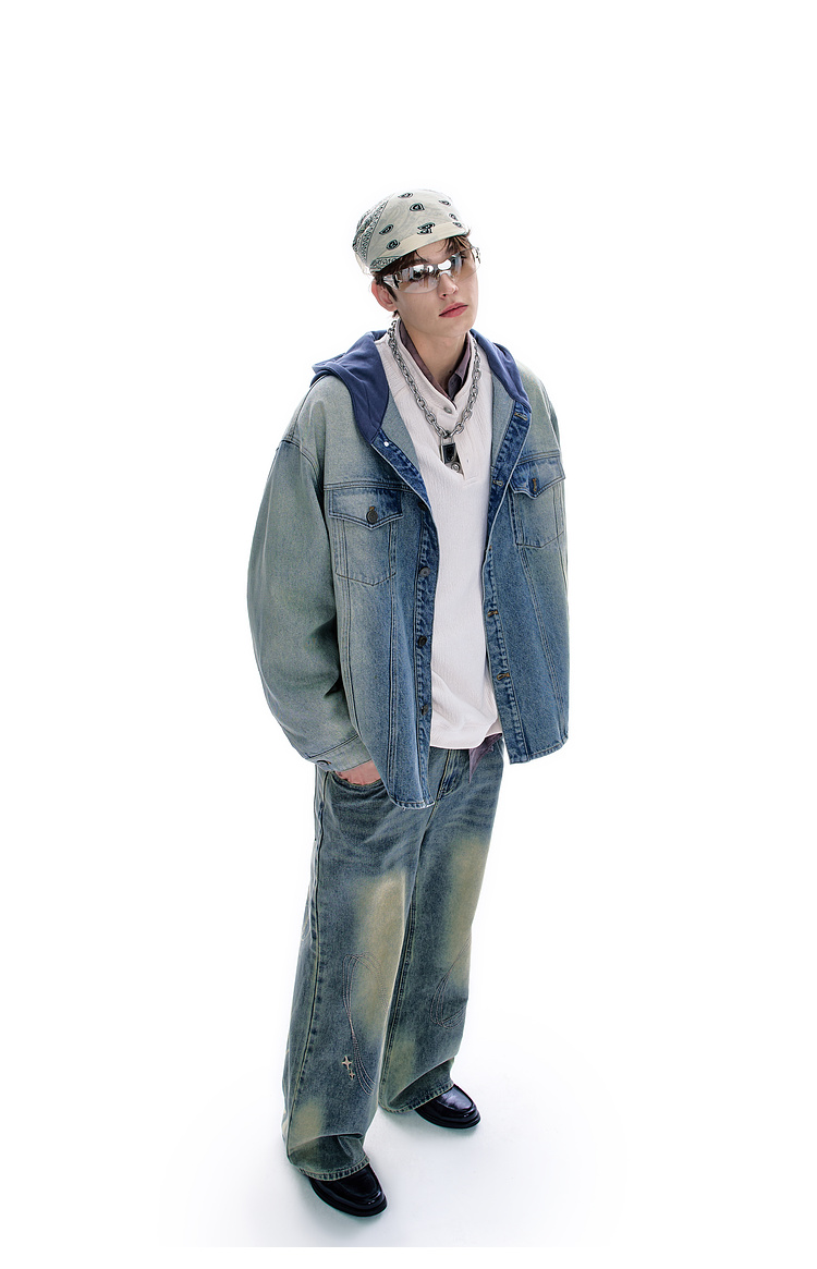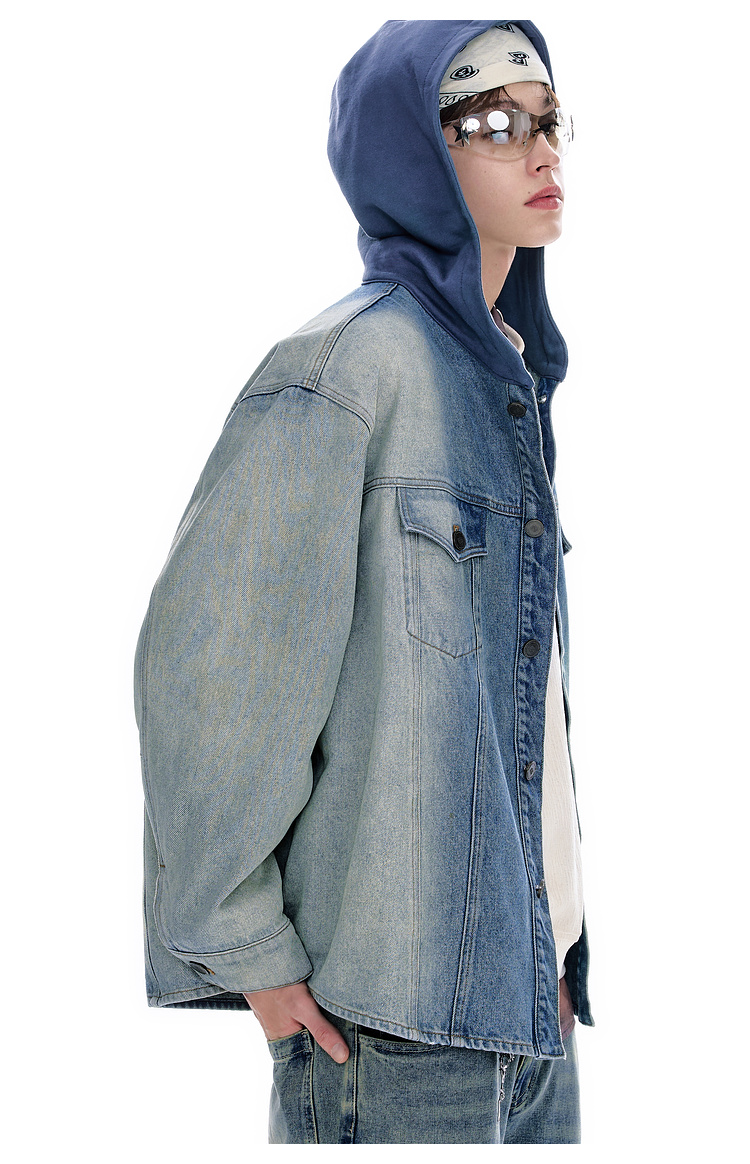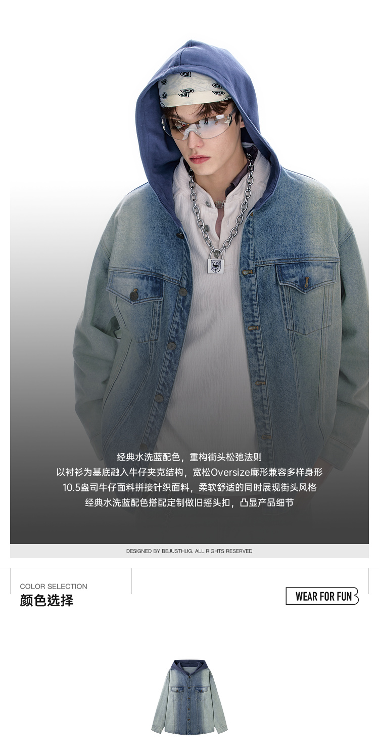 BJHG不计后果牛仔外套男款秋季2025新款水洗做旧连帽衬衫休闲夹克