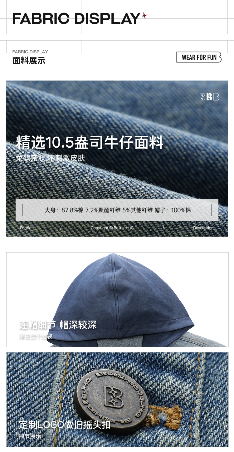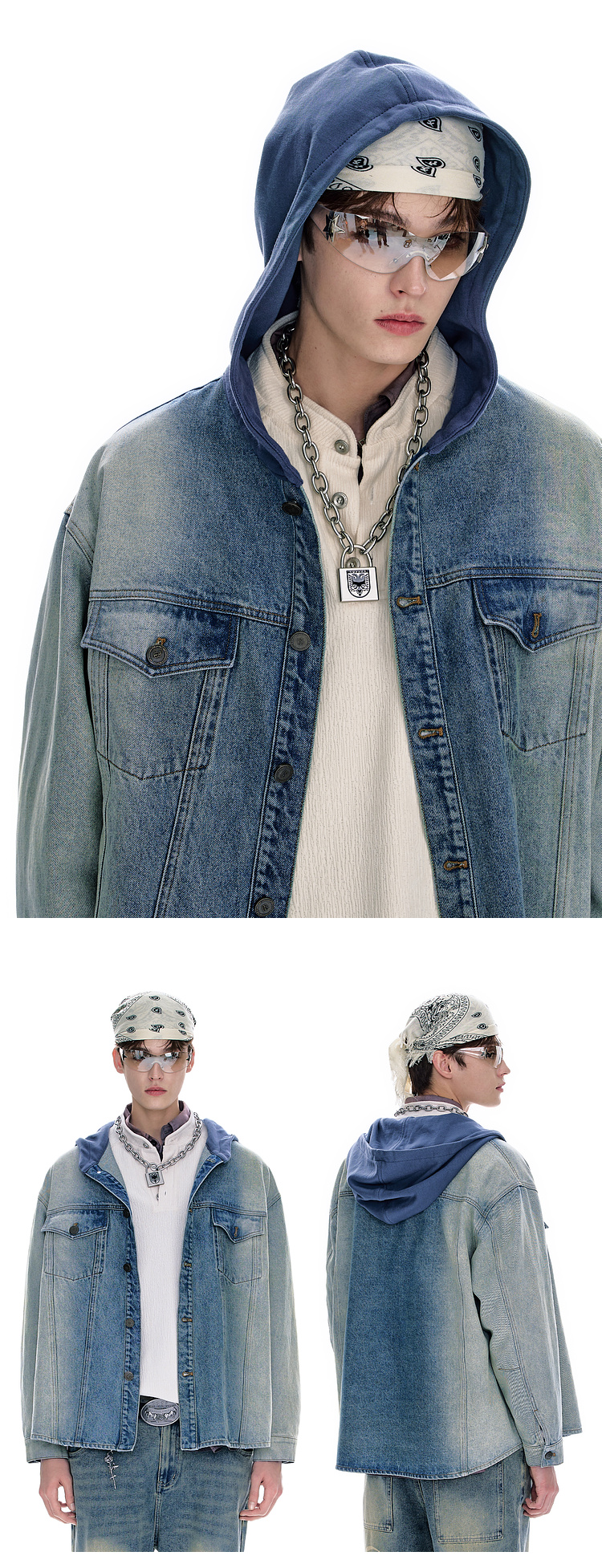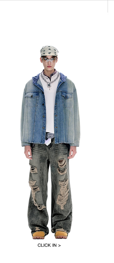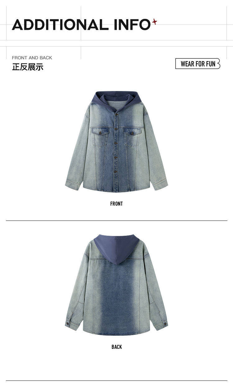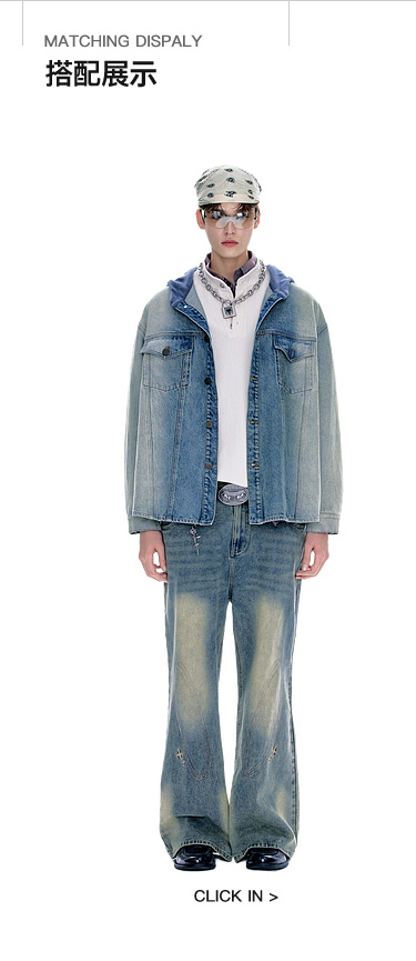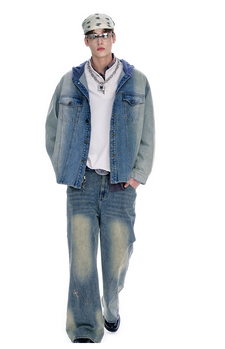 BJHG不计后果牛仔外套男款秋季2025新款水洗做旧连帽衬衫休闲夹克