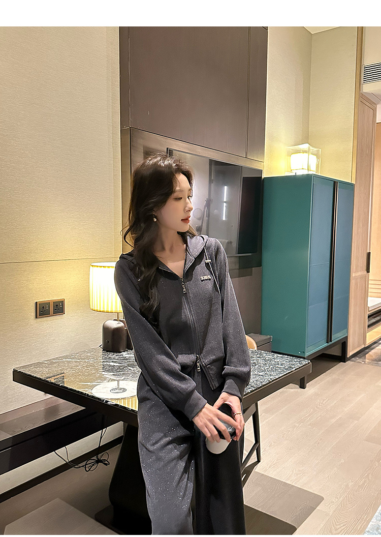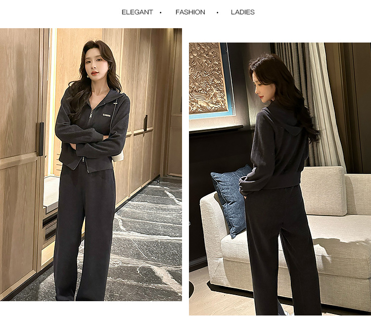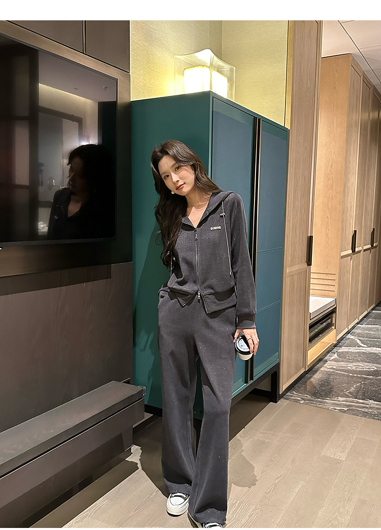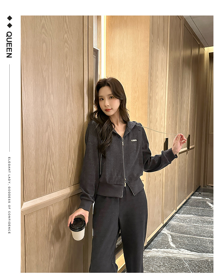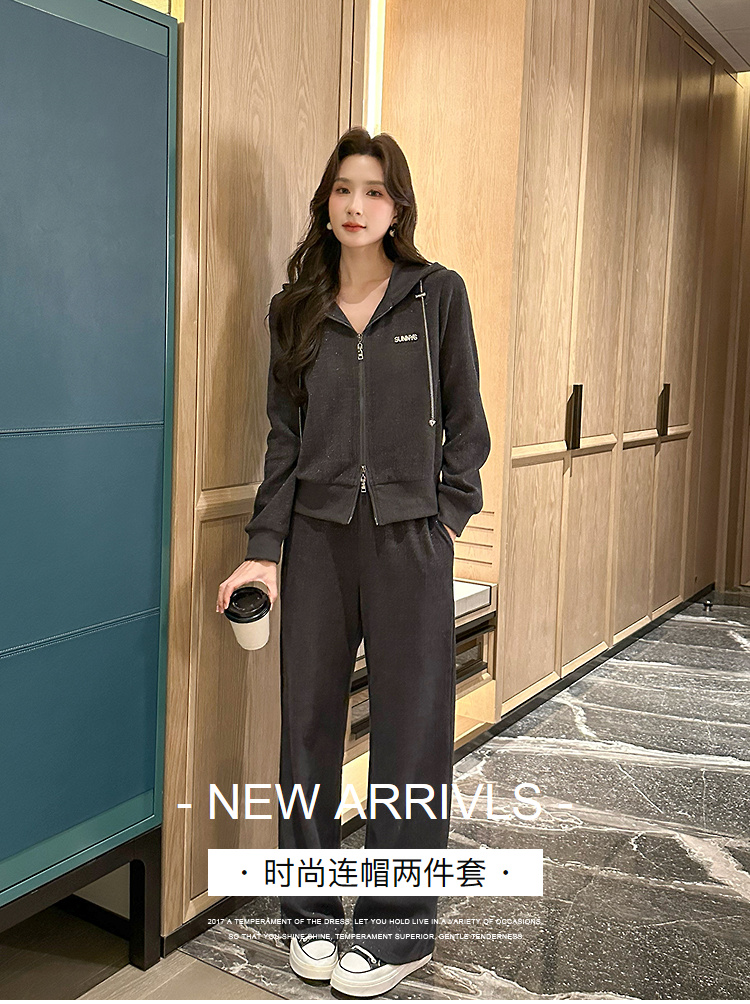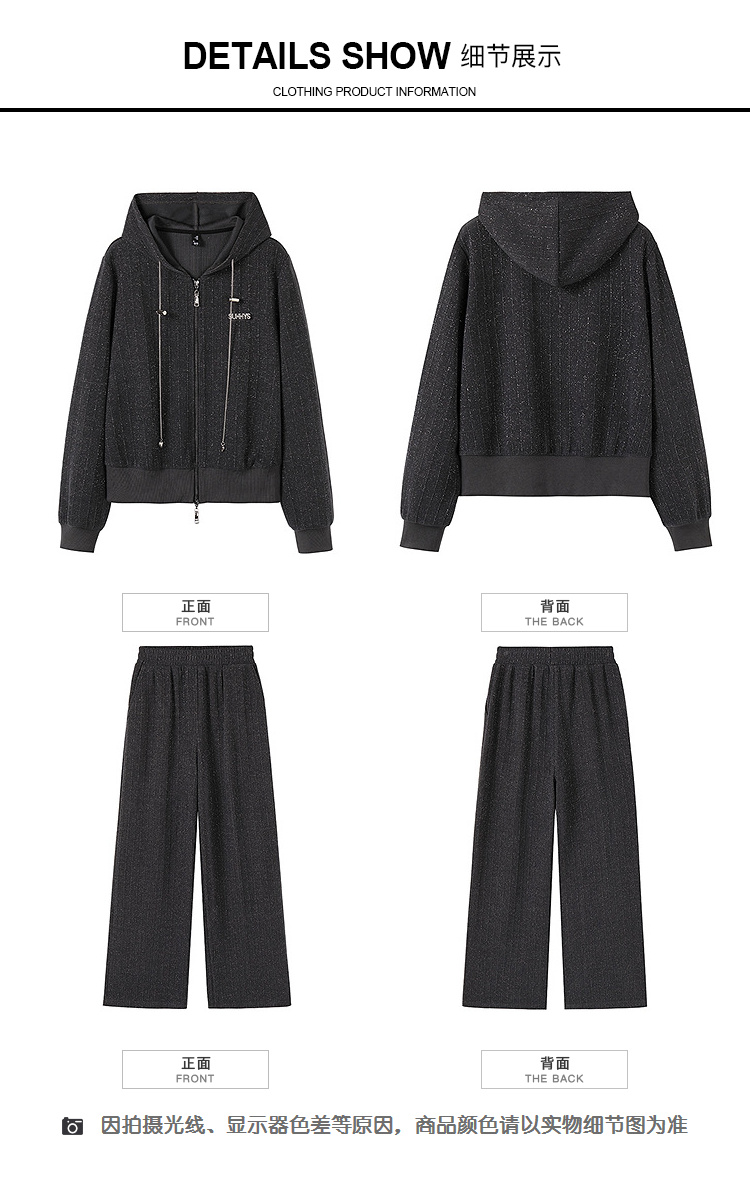 奢姿大码女装2024冬季减龄字母立体装饰连帽两件套胖妹妹休闲套装9944955089