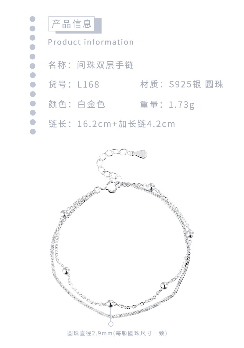 【掌心温差】S925银双层圆珠手链【YXS-L168】
