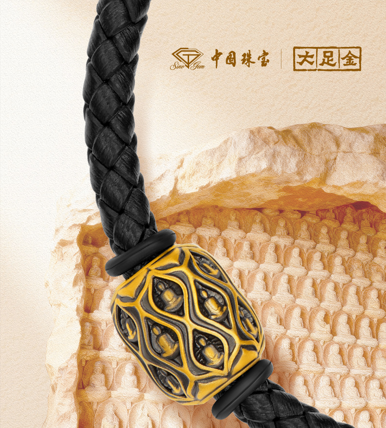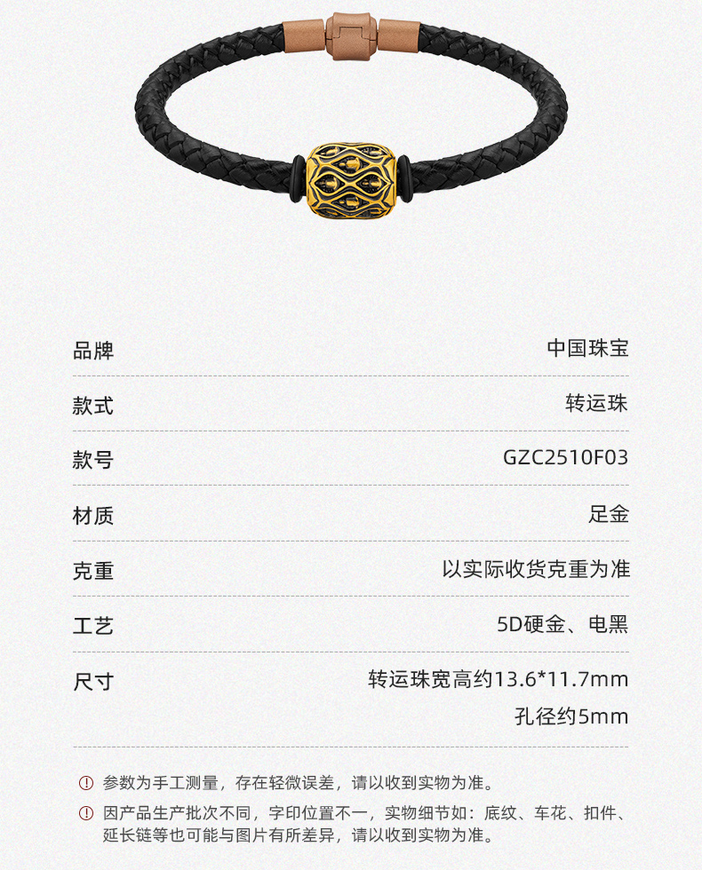 「大足金-大自在」5D硬金慧心黄金转运珠 足金手串