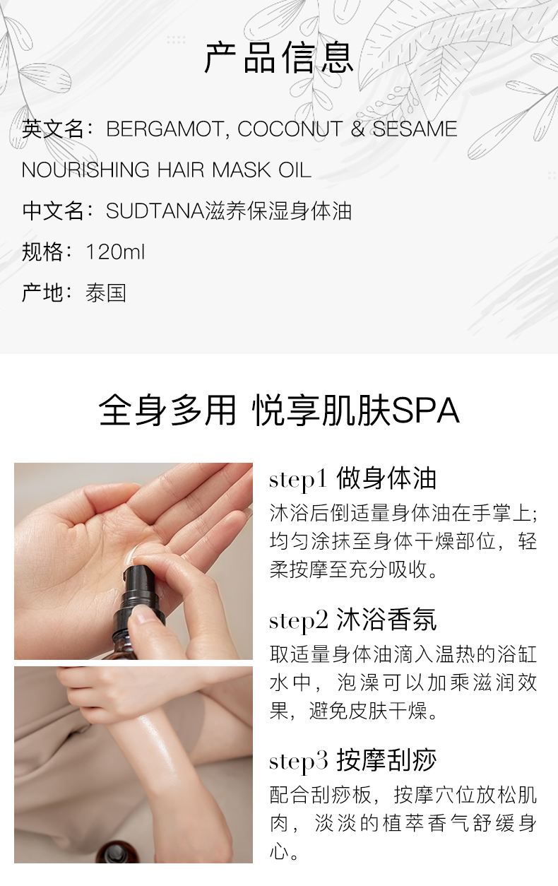 【跨境商品】sudtana身体油 以油养肤 保湿滋润72h 姜黄椰子/迷迭香120ml