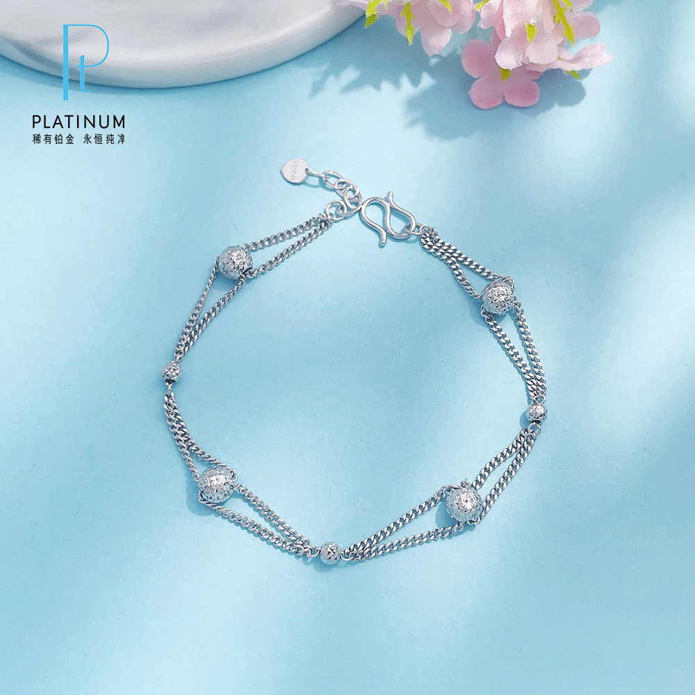 【限时8.8折】【线上铂金馆】PT950 【国际铂金协会 精品】铂金调节车花米珠双排手链(ACPTSL00036)预售产品下单后不退款不退货不换货不补差价)