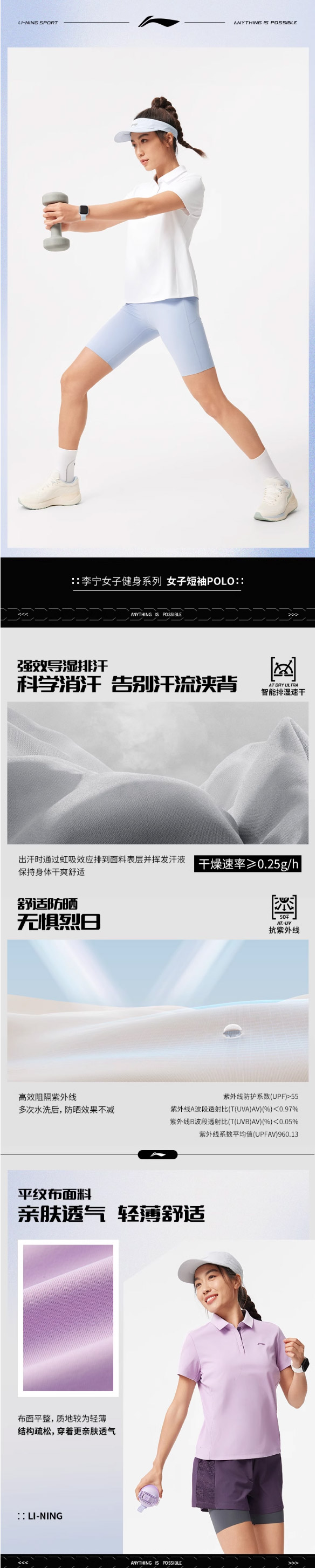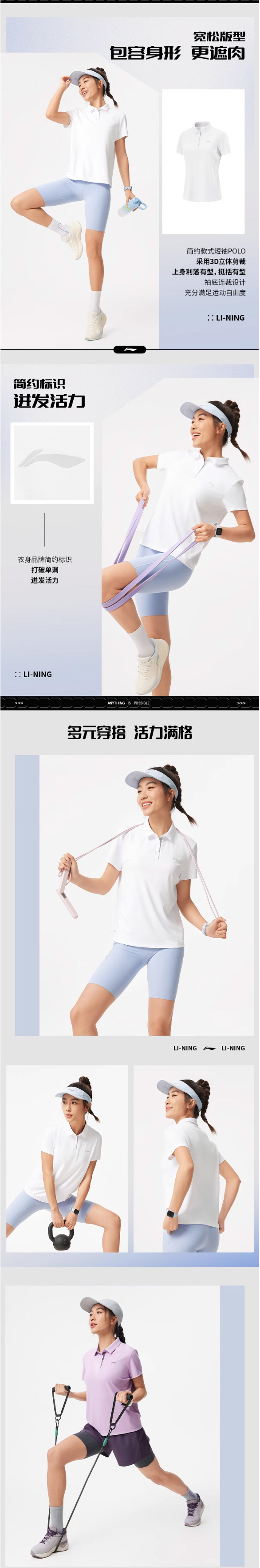 李宁女夏季POLO衫新款速干短袖翻领运动T恤APLV016