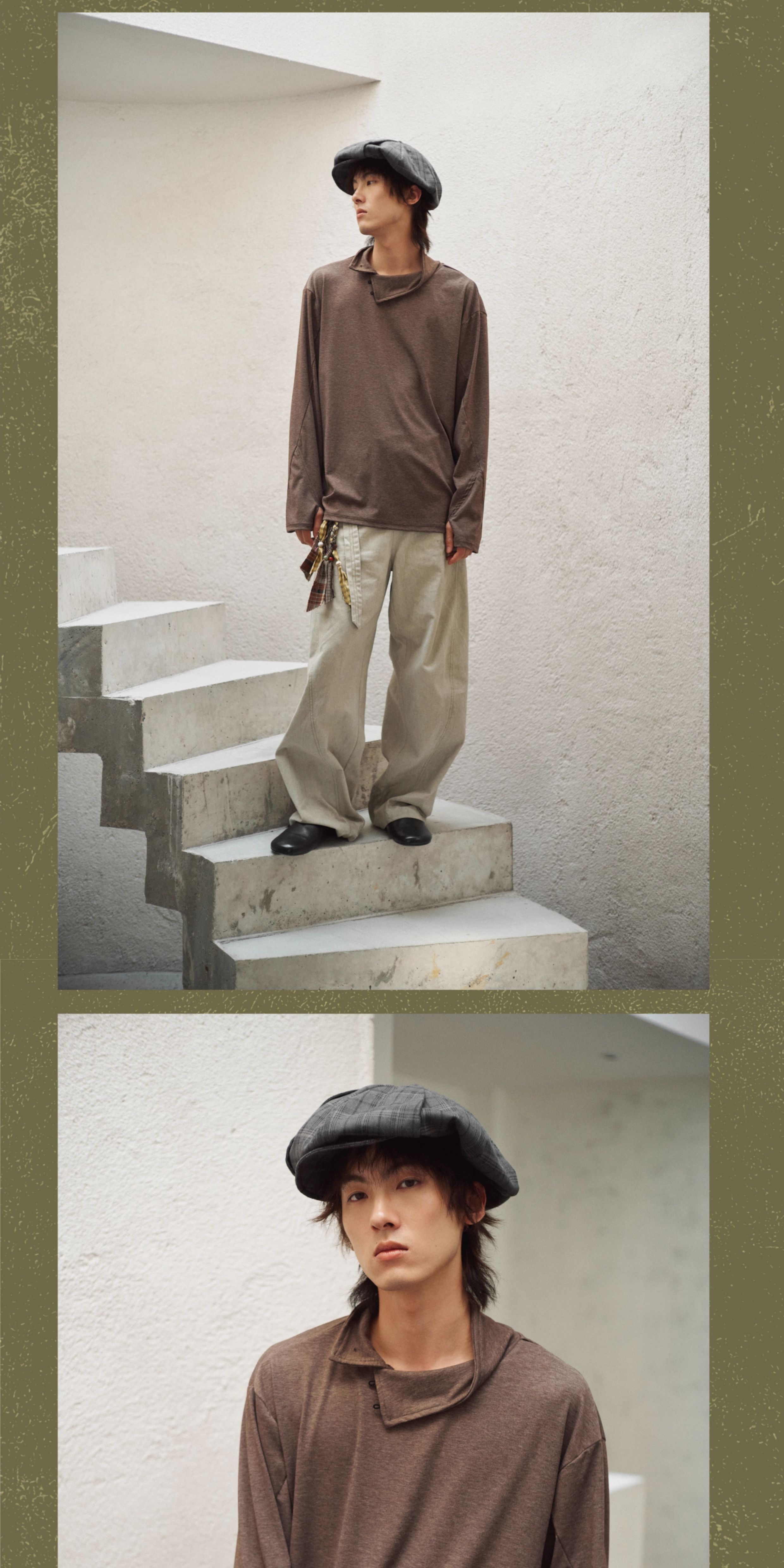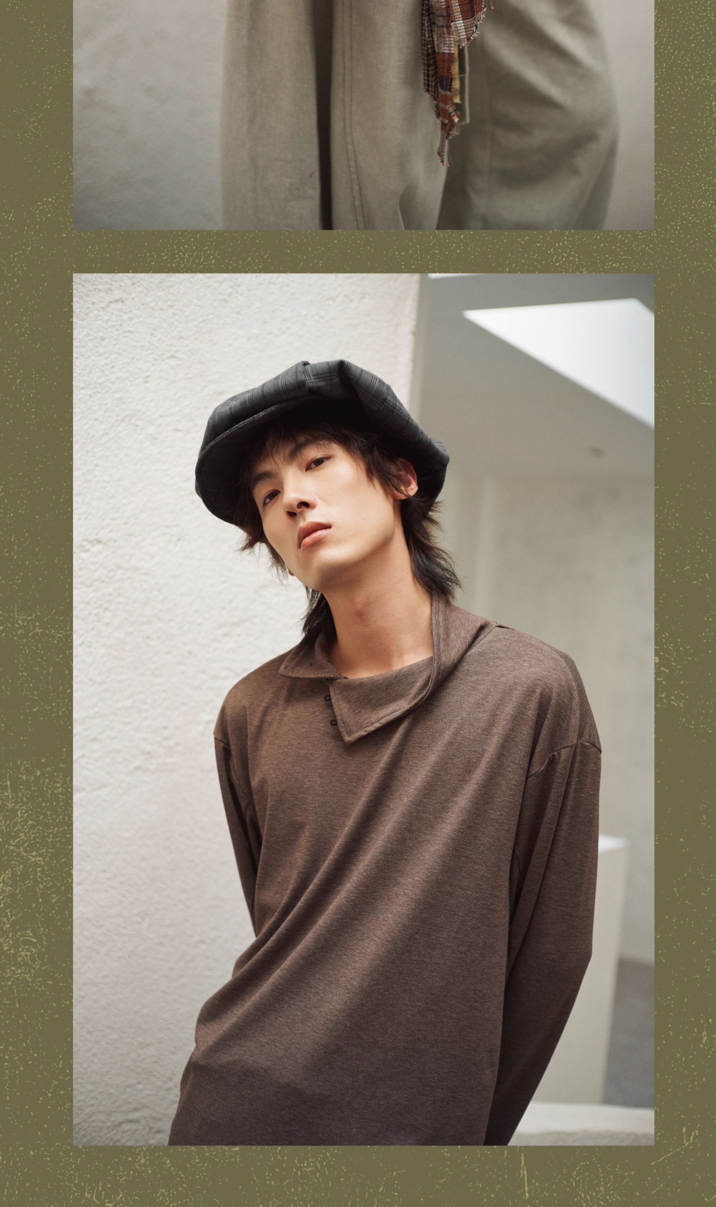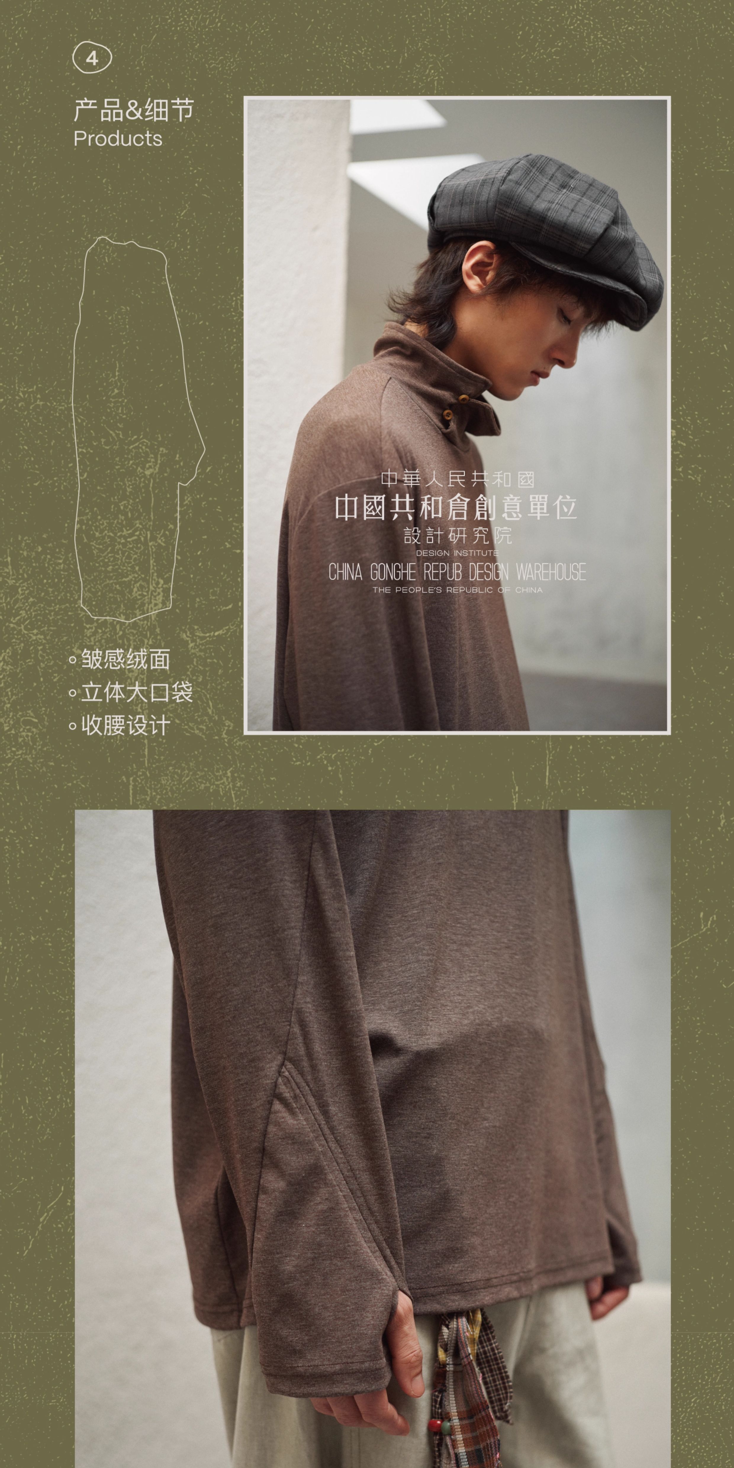 共和GongheRepub/GH24038/秋冬斜开叉高领可扣长袖T恤