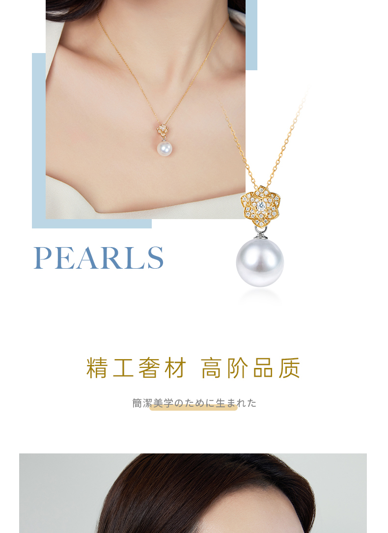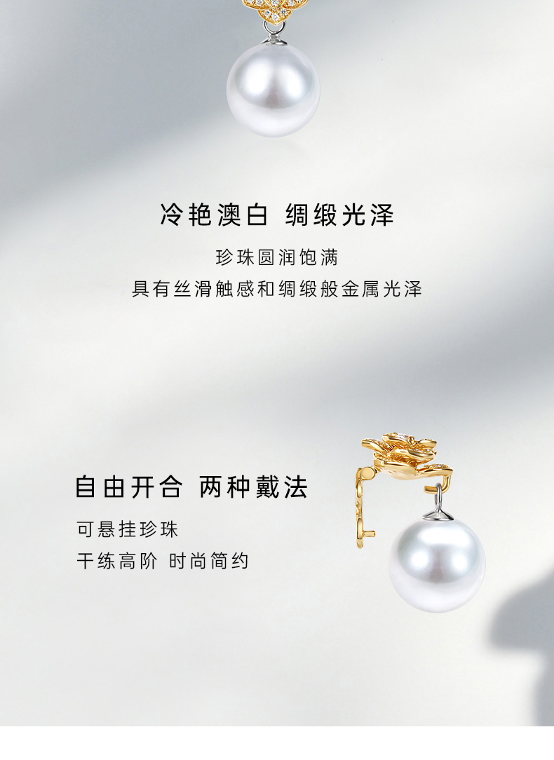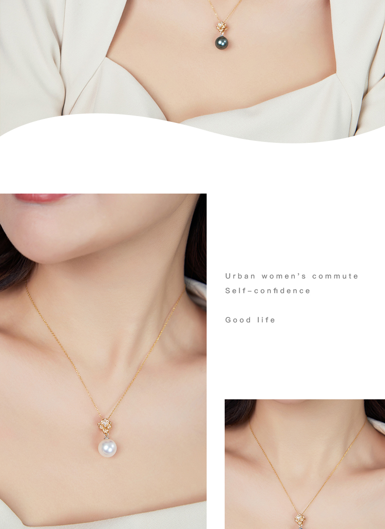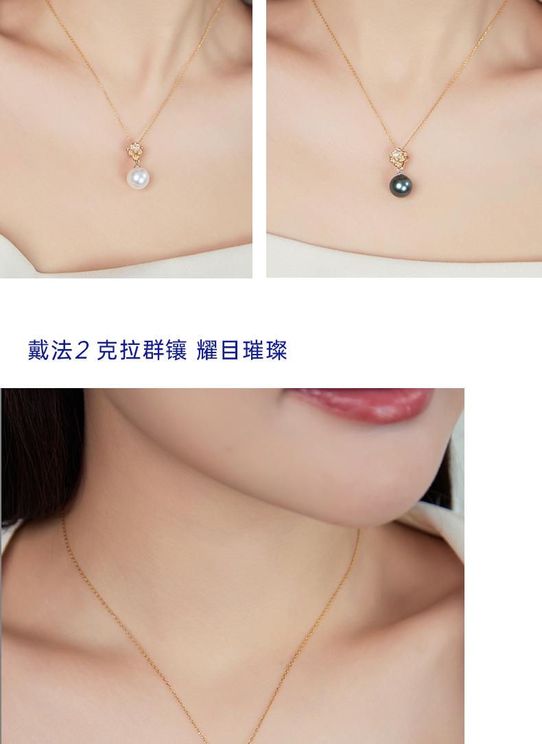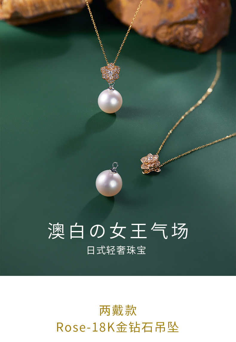 【天猫同款】18k金两戴款钻石珍珠吊坠 Rose