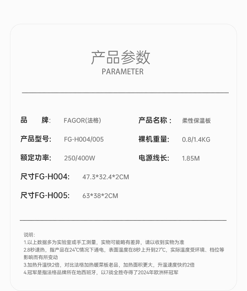 FAGOR法格 多功能加热暖菜板 安全防漏电 【源自西班牙 始于1943】