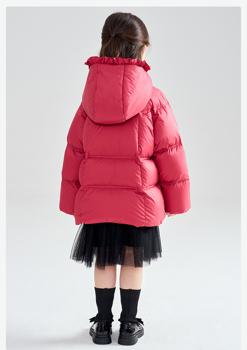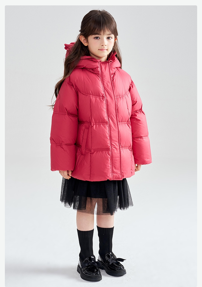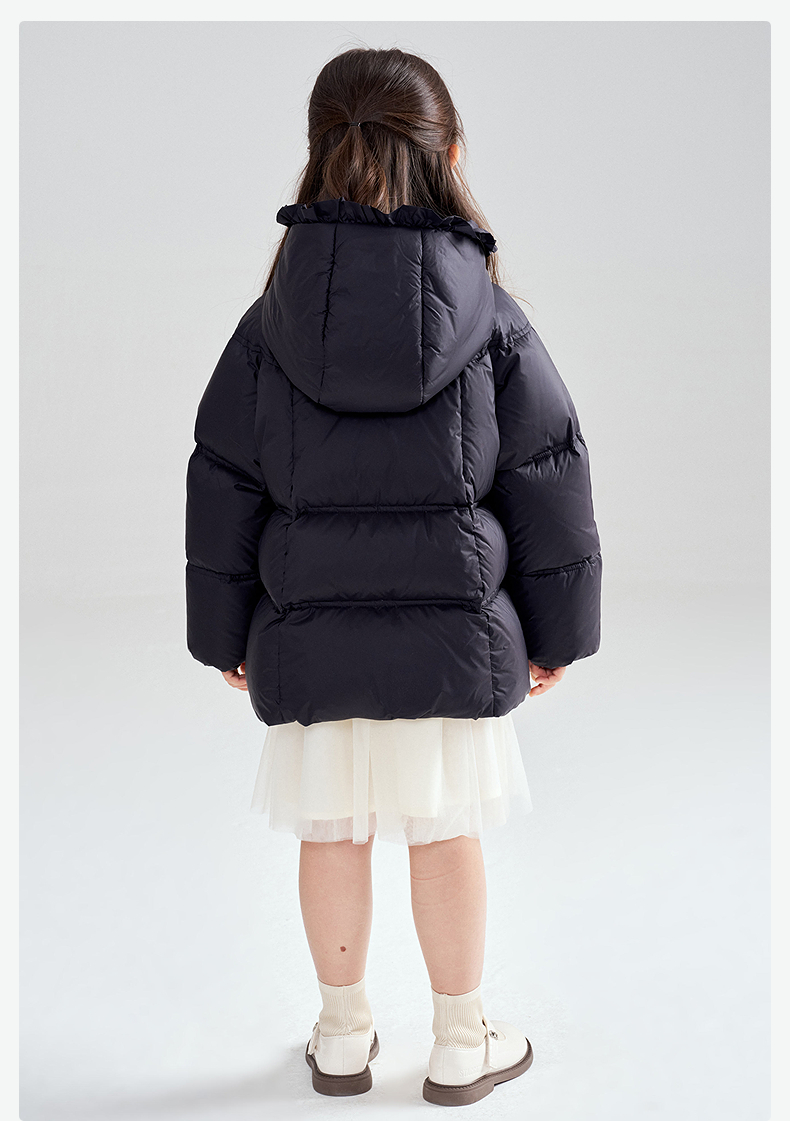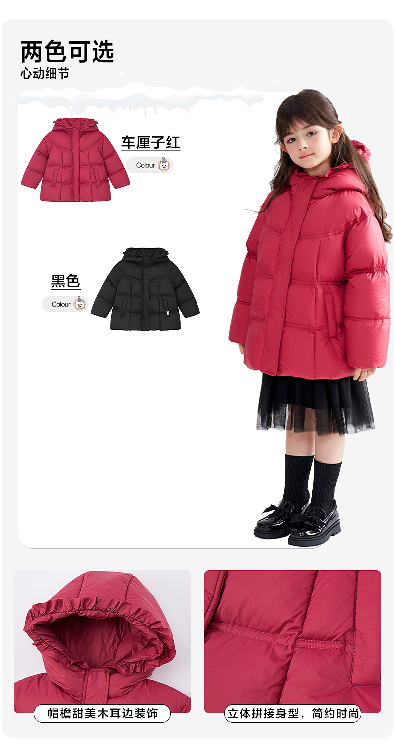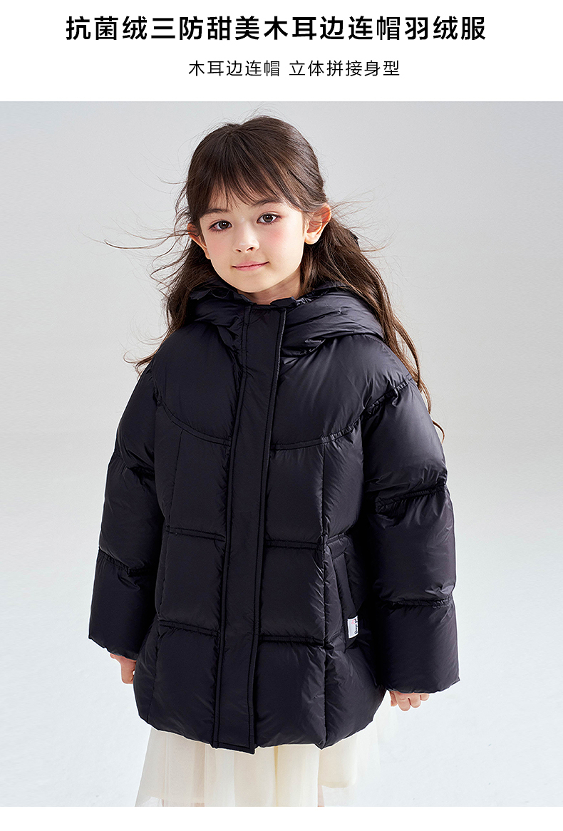 笛莎Deesha 2025冬季女童抗菌绒三防甜美木耳边连帽羽绒服