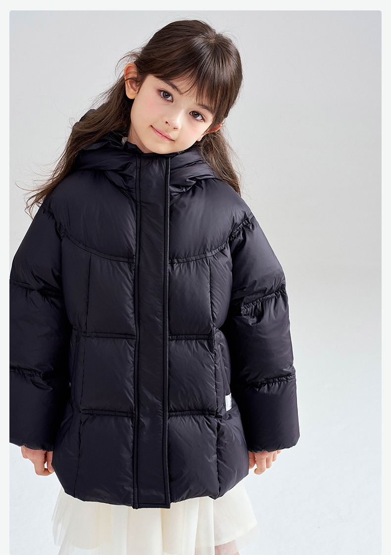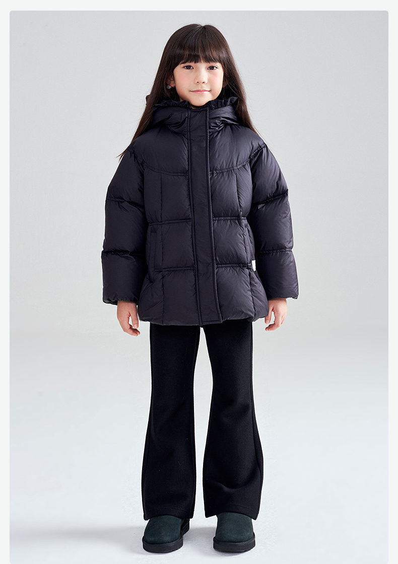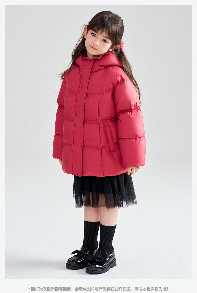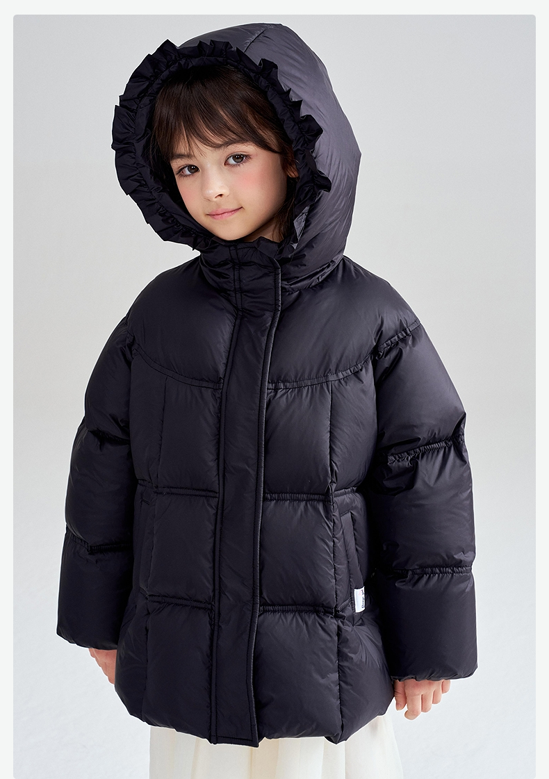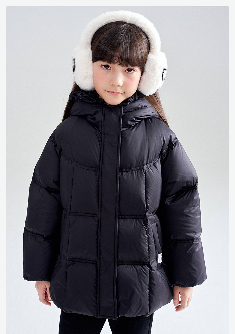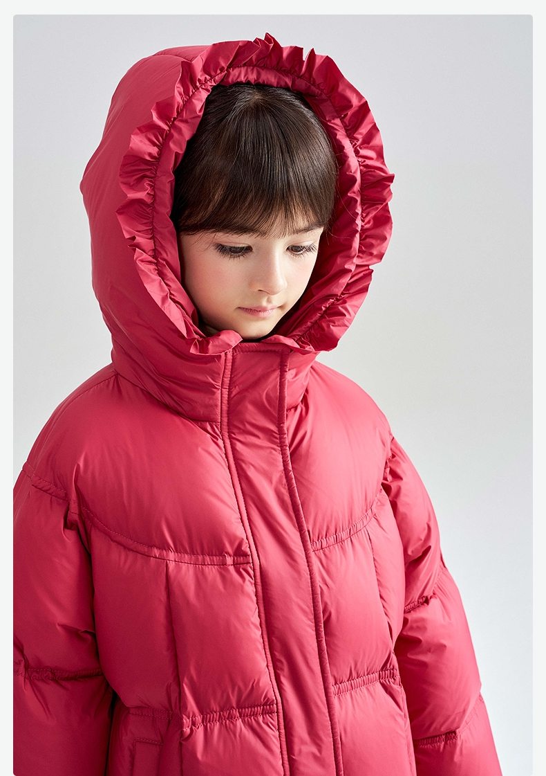 笛莎Deesha 2025冬季女童抗菌绒三防甜美木耳边连帽羽绒服
