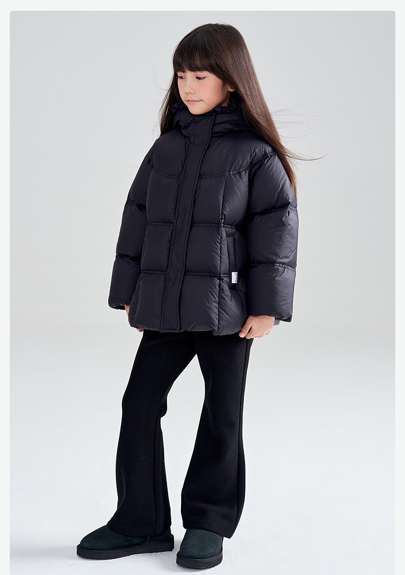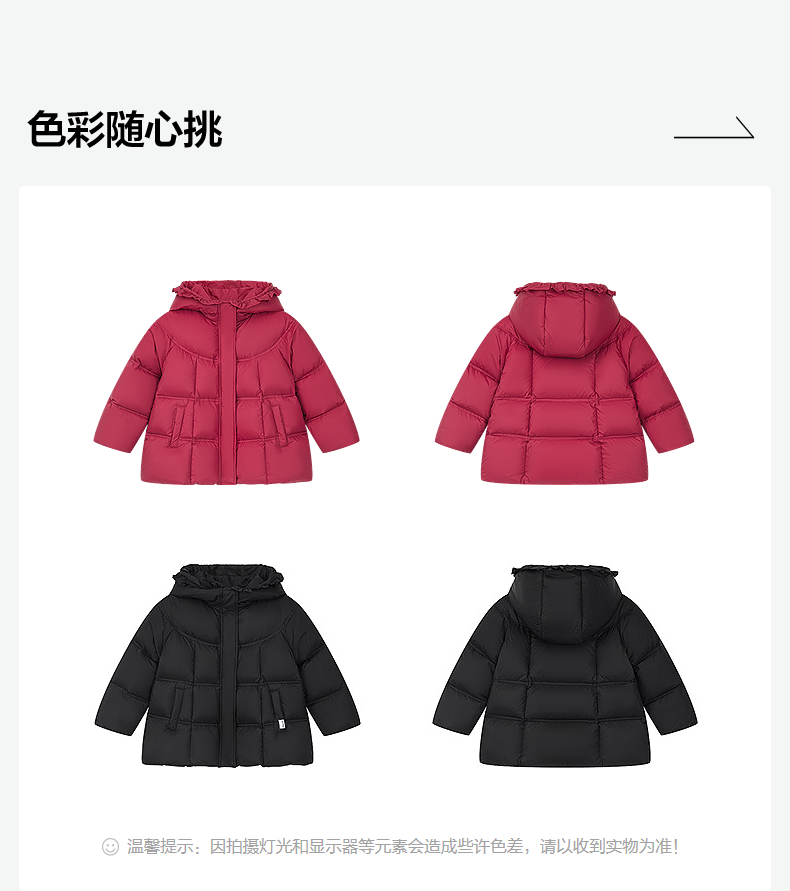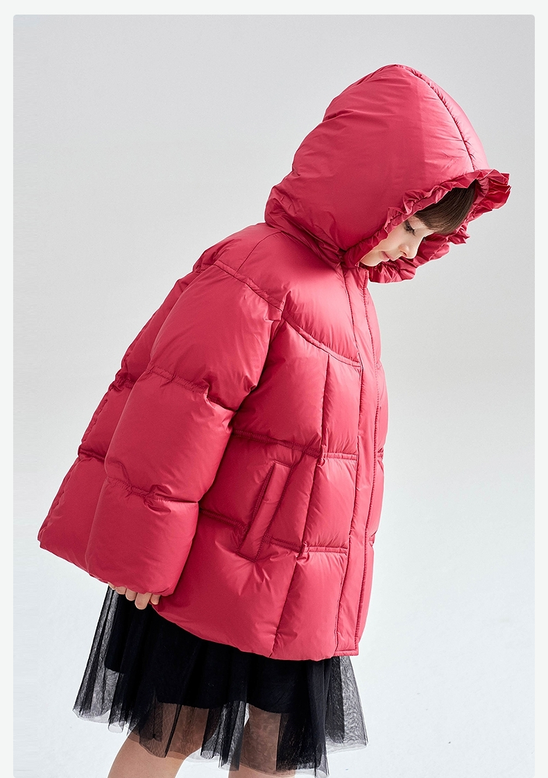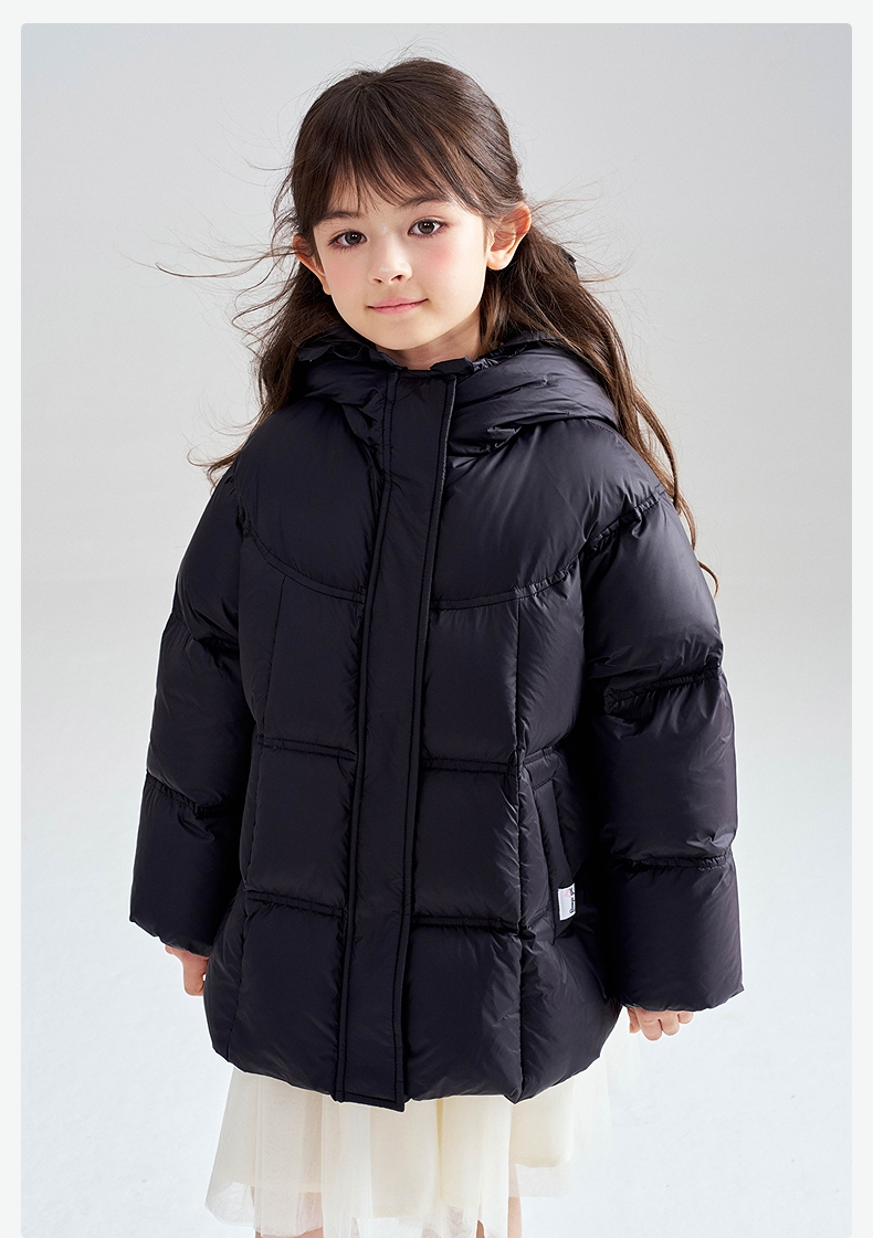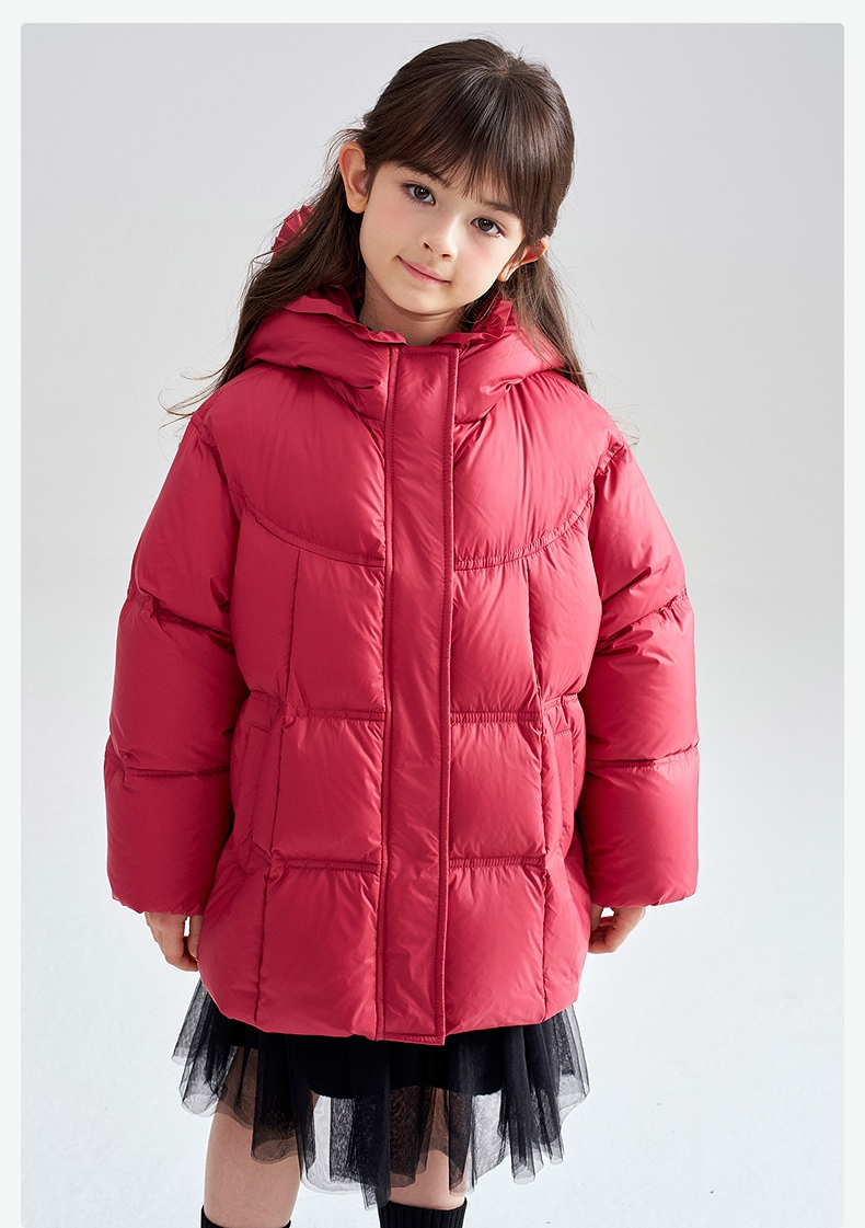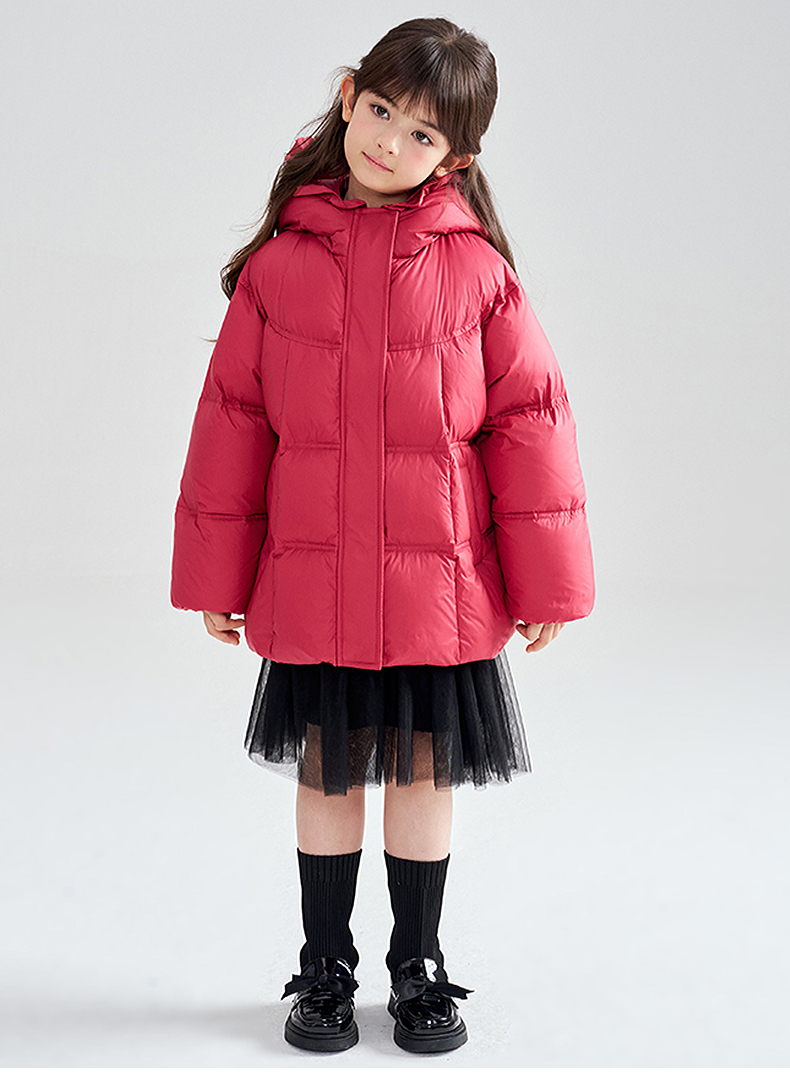笛莎Deesha 2025冬季女童抗菌绒三防甜美木耳边连帽羽绒服
