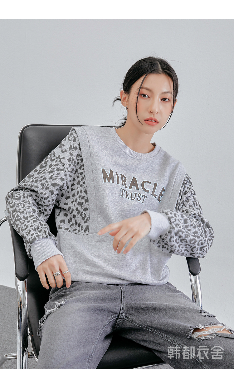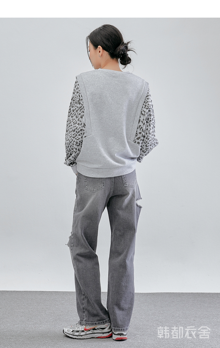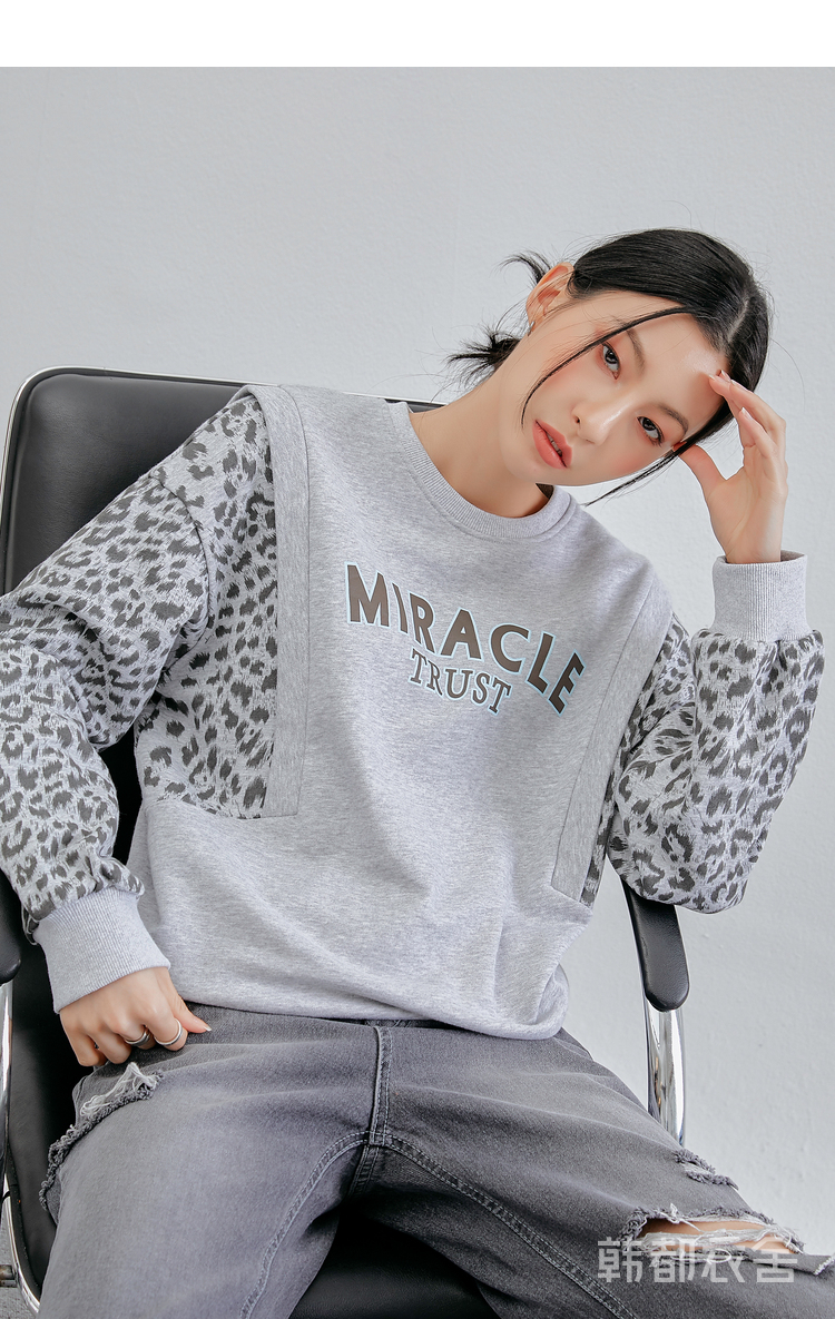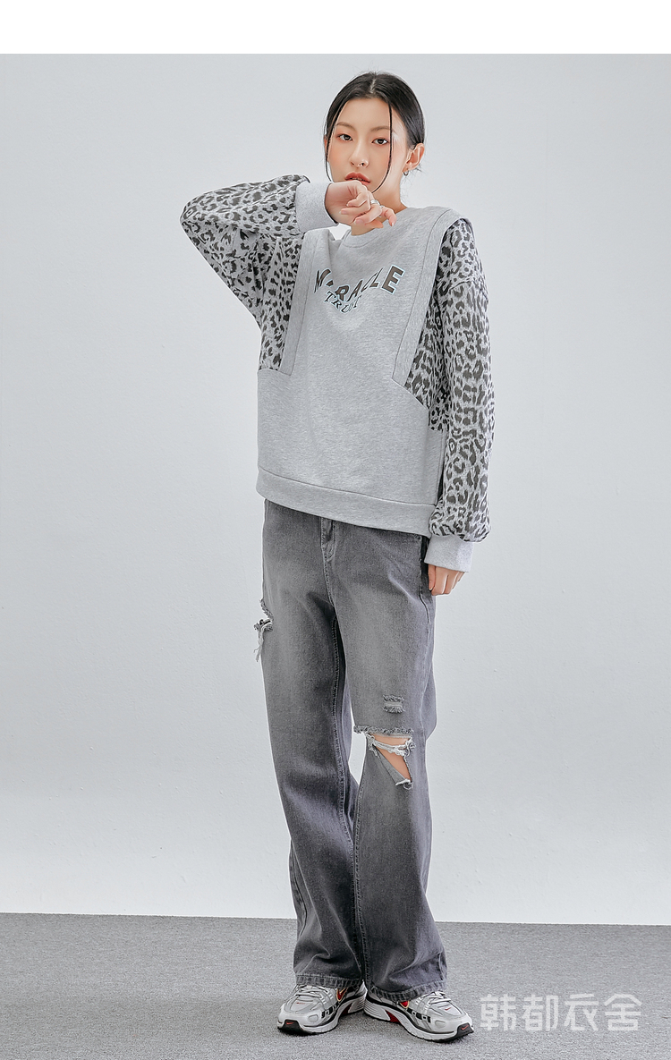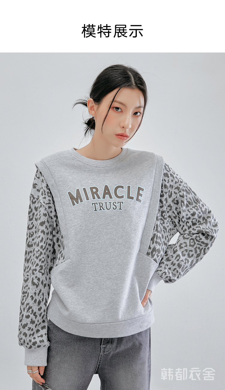 韩都衣舍冬装新款韩版女装宽松上衣豹纹套头卫衣潮insOM82269