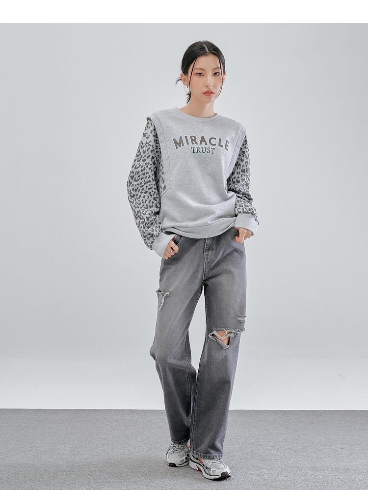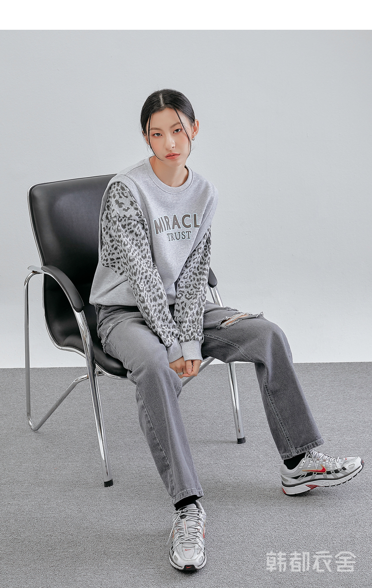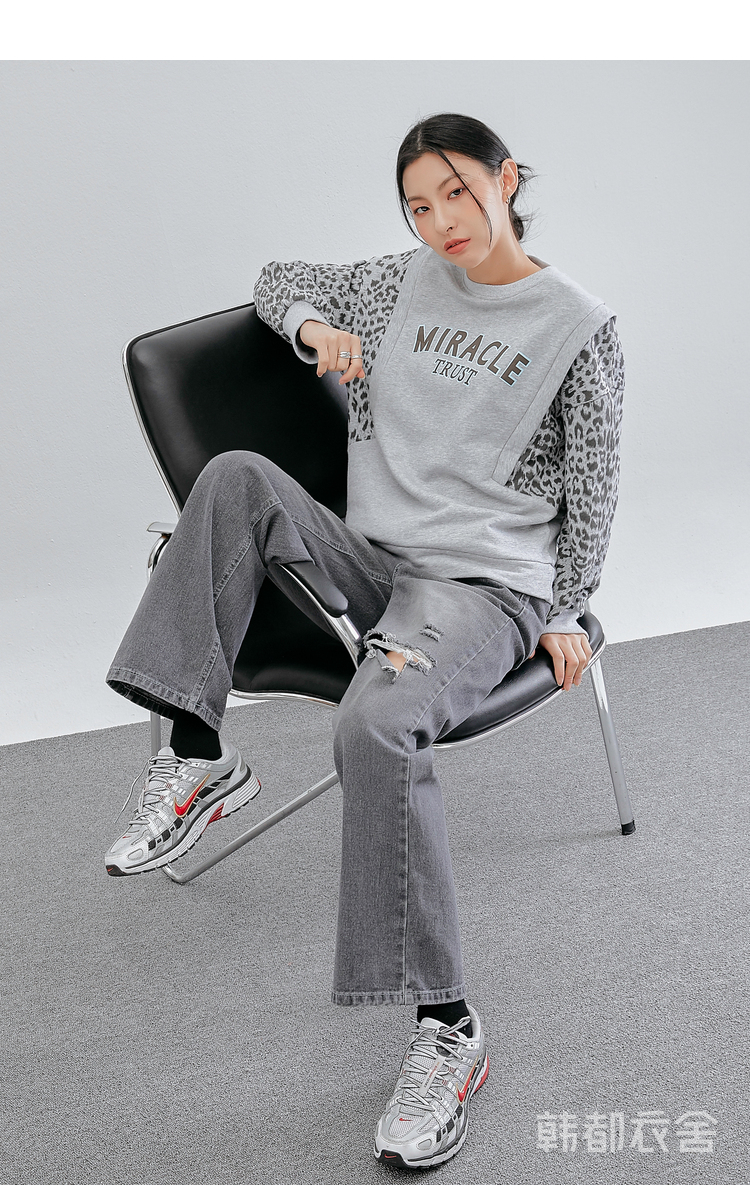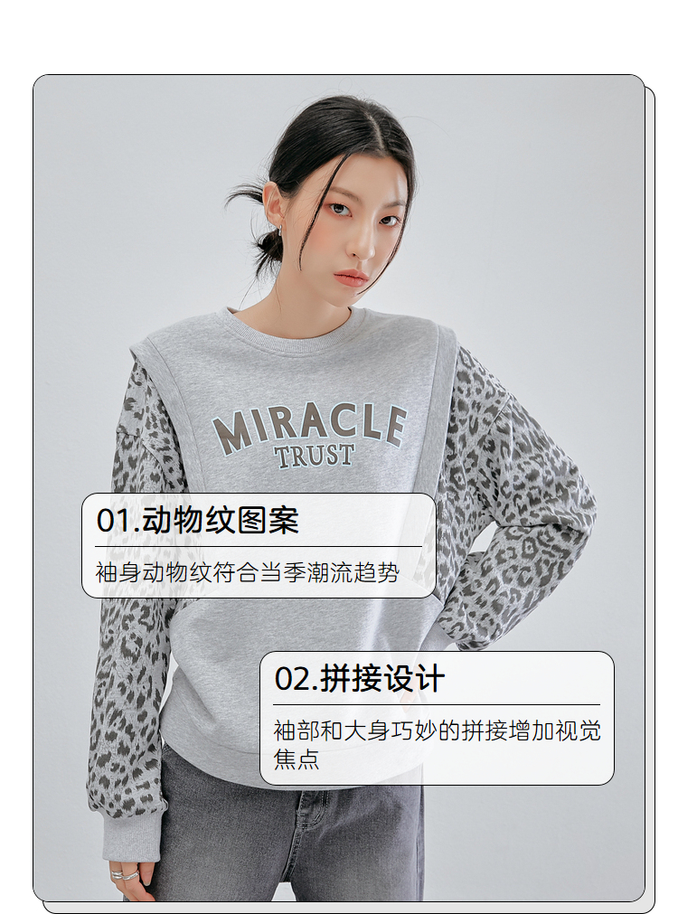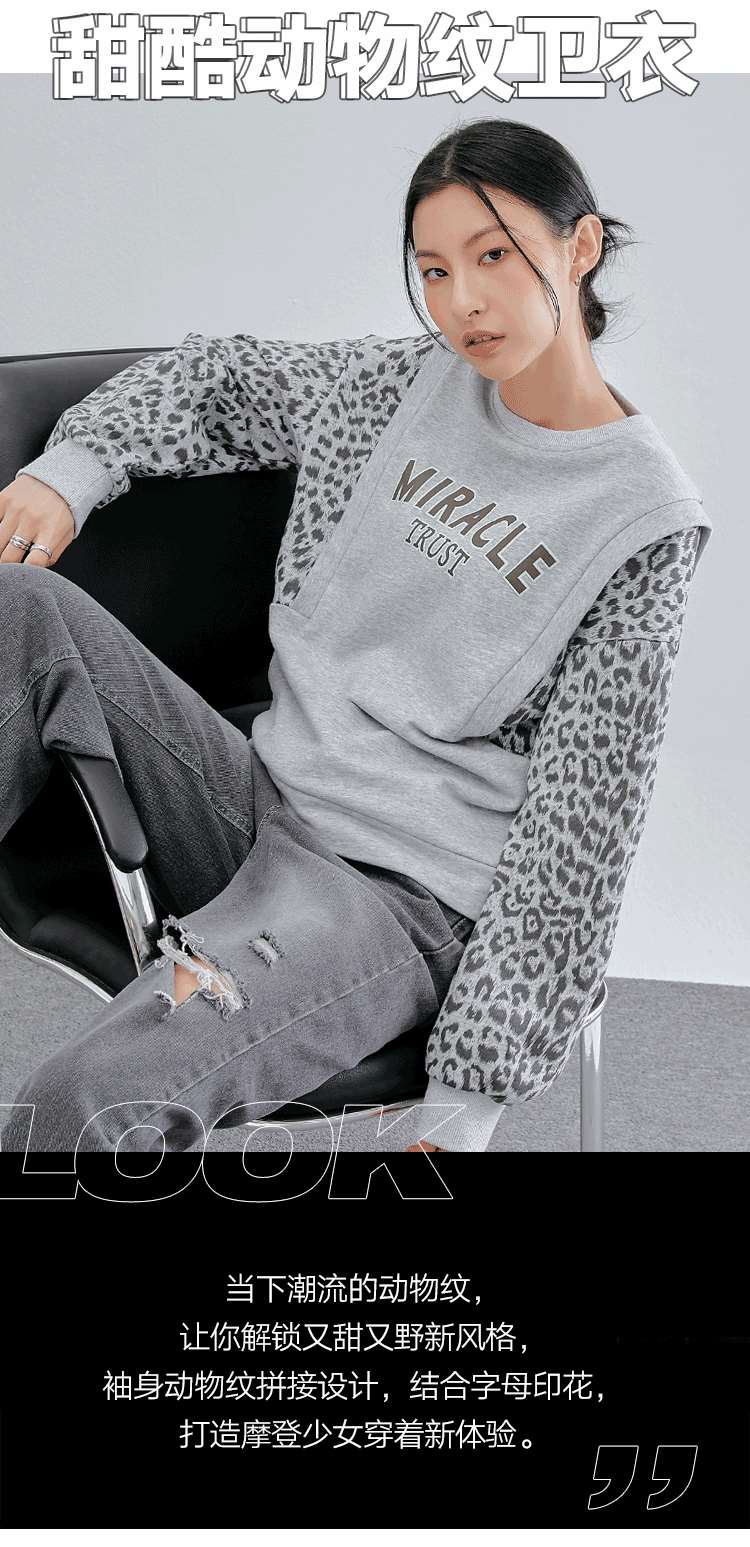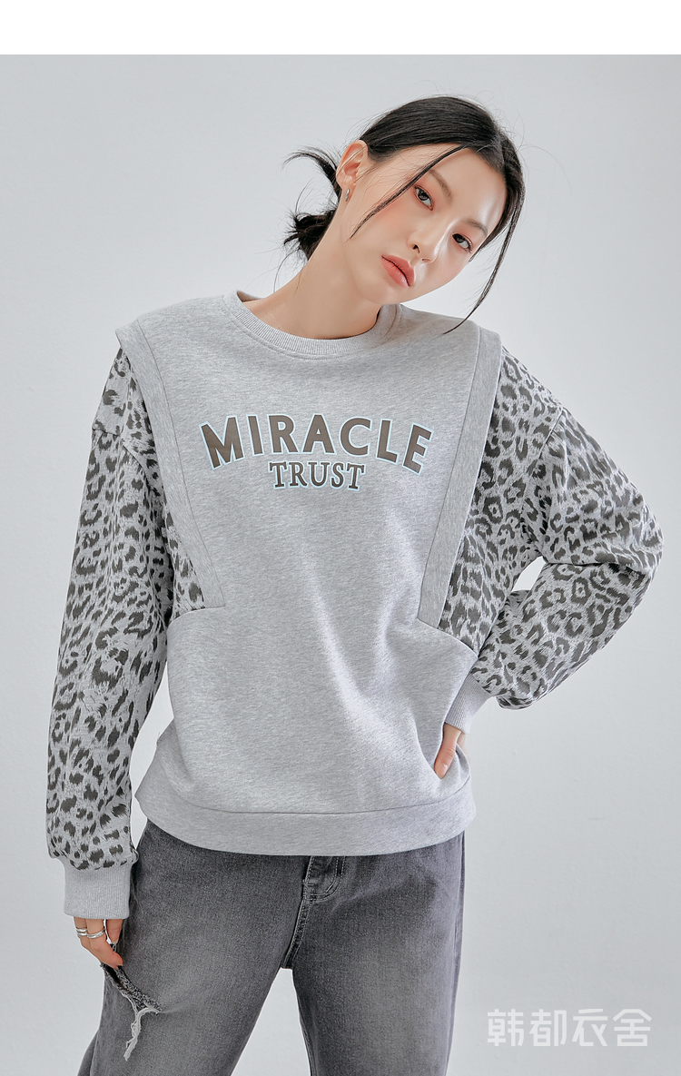 韩都衣舍冬装新款韩版女装宽松上衣豹纹套头卫衣潮insOM82269