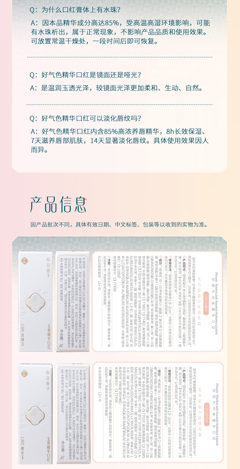 【门店专享】花西子玉养精华口红/滋润精华/养唇盈润