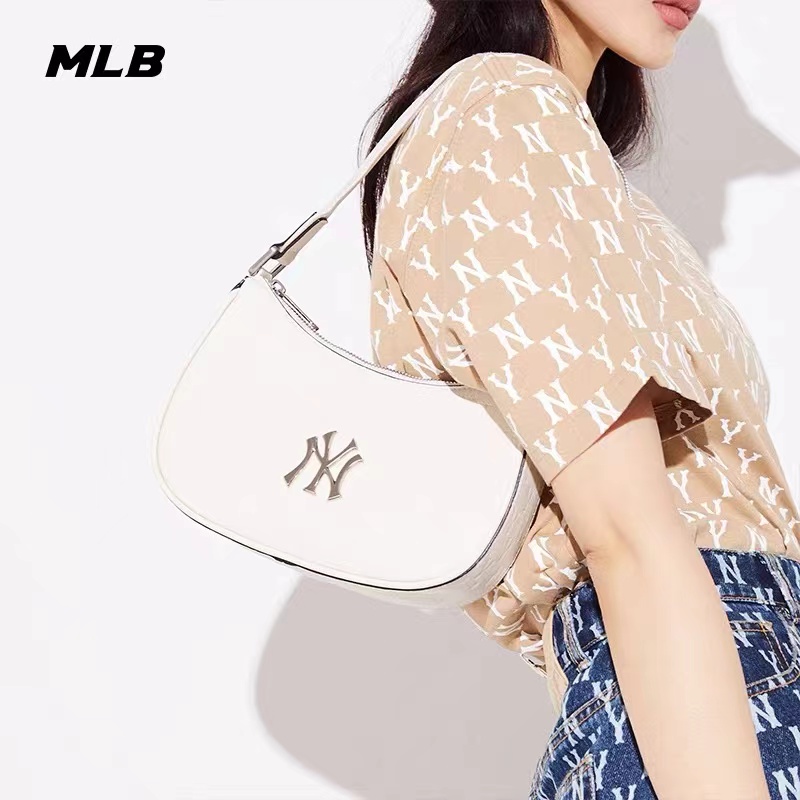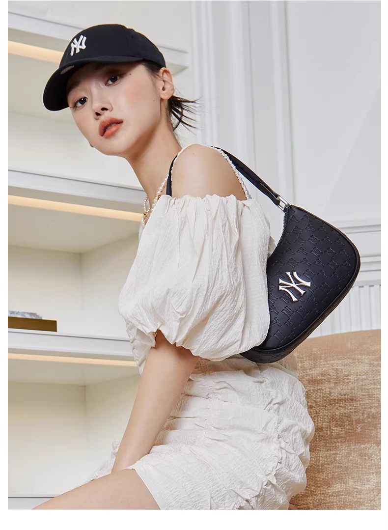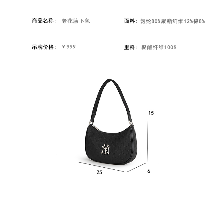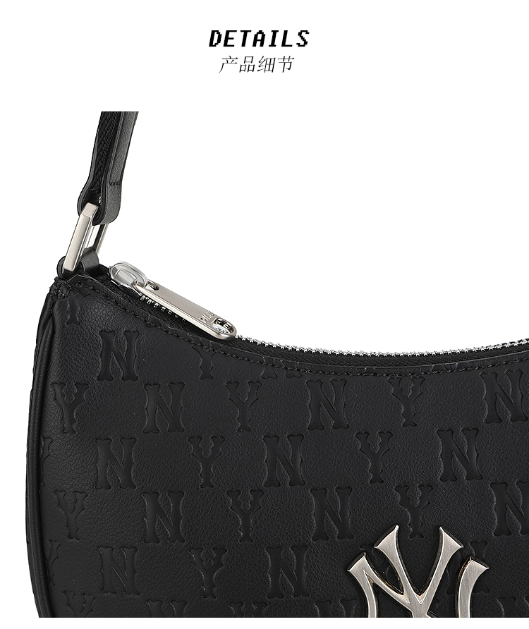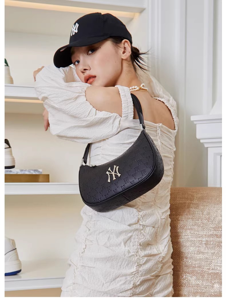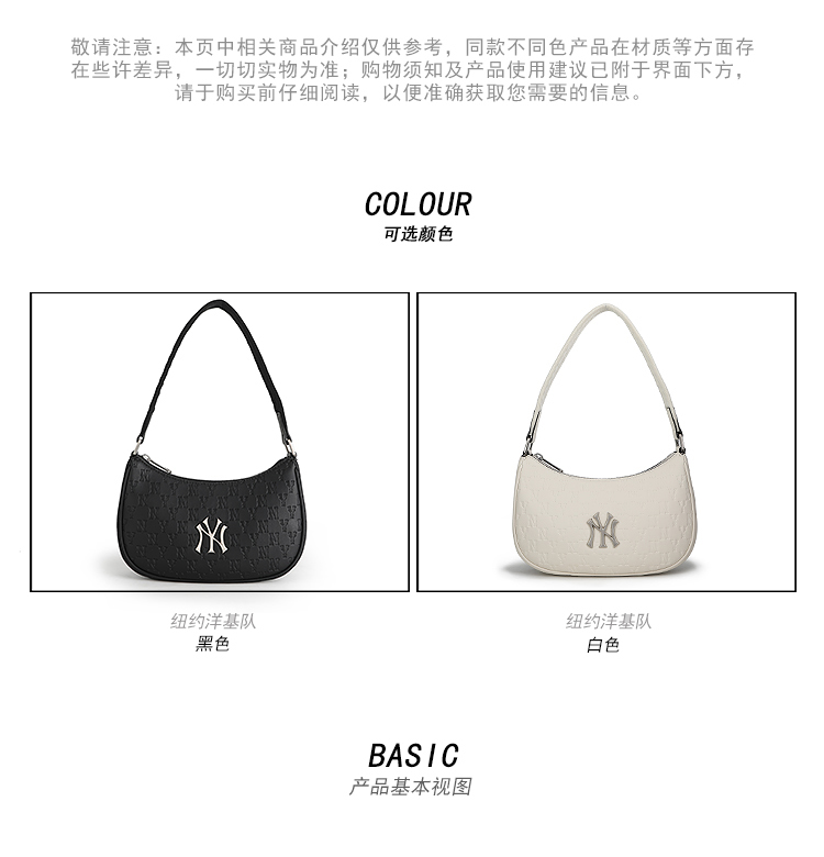 【品牌授权】扫码验证 韩国MLB 暗纹满标腋下包奶-油色 黑色 新款老花满印休闲时尚运动背包单肩学生书包 3ABQS022N