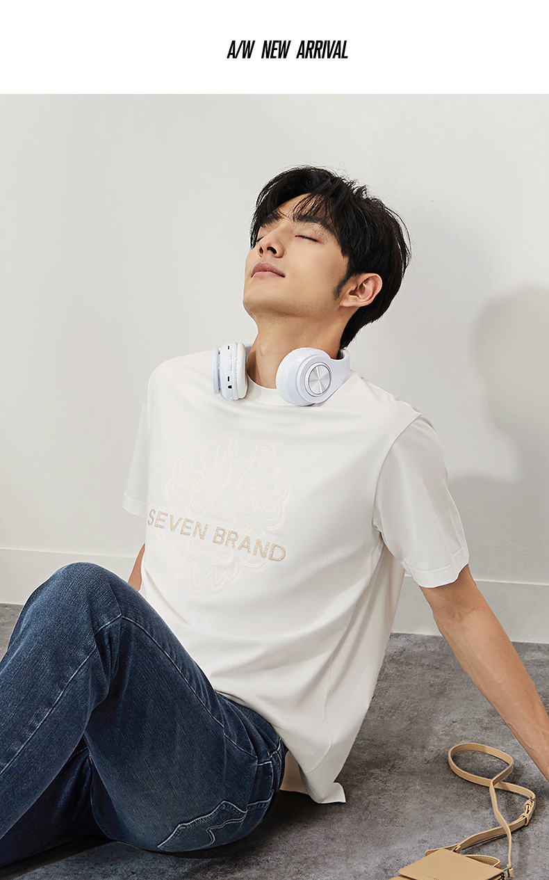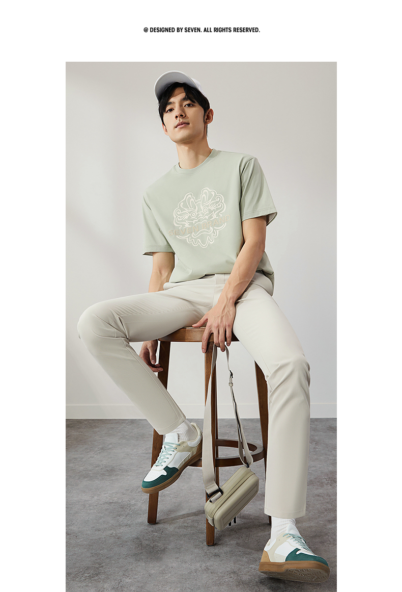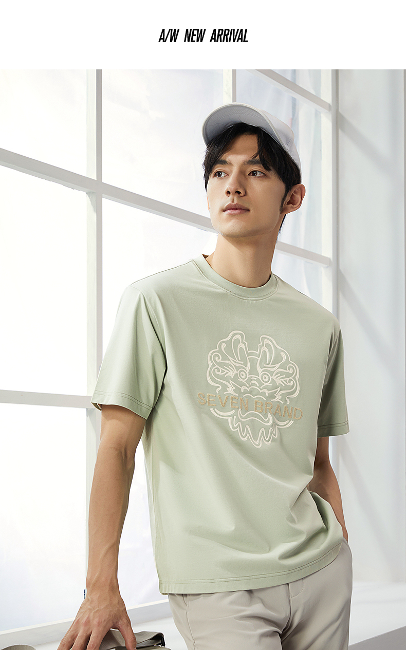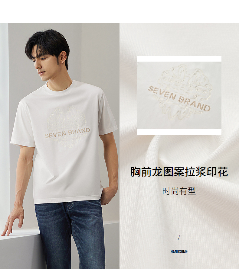 【凉感索罗纳】柒牌短袖T恤男夏季新款时尚龙纹印花圆领休闲上衣 126T73610