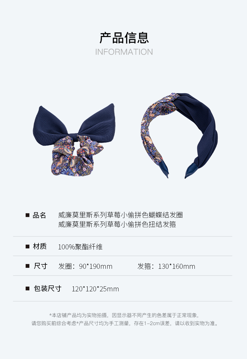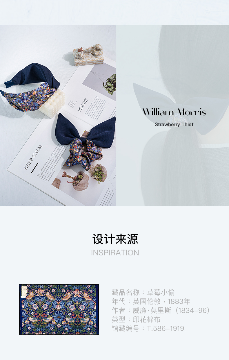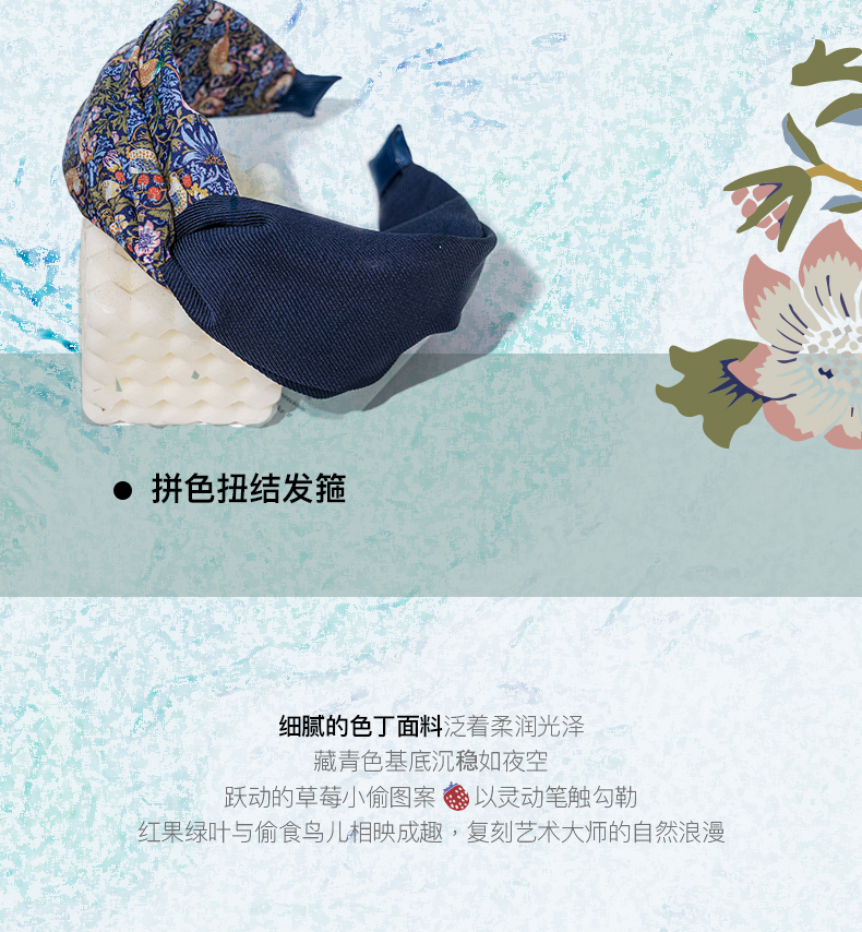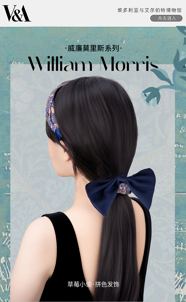 V&A博物馆威廉莫里斯系列草莓小偷拼色扭结发箍-蝴蝶结发圈