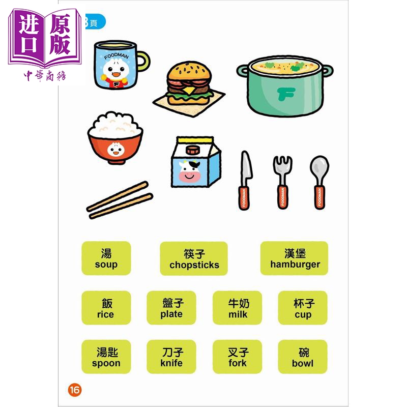 【中商原版】FOOD超人益智游戏贴纸书 英文ABC 港台原版 儿童绘本 图画故事书 益智游戏书 亲子童书 训练手眼协调能力