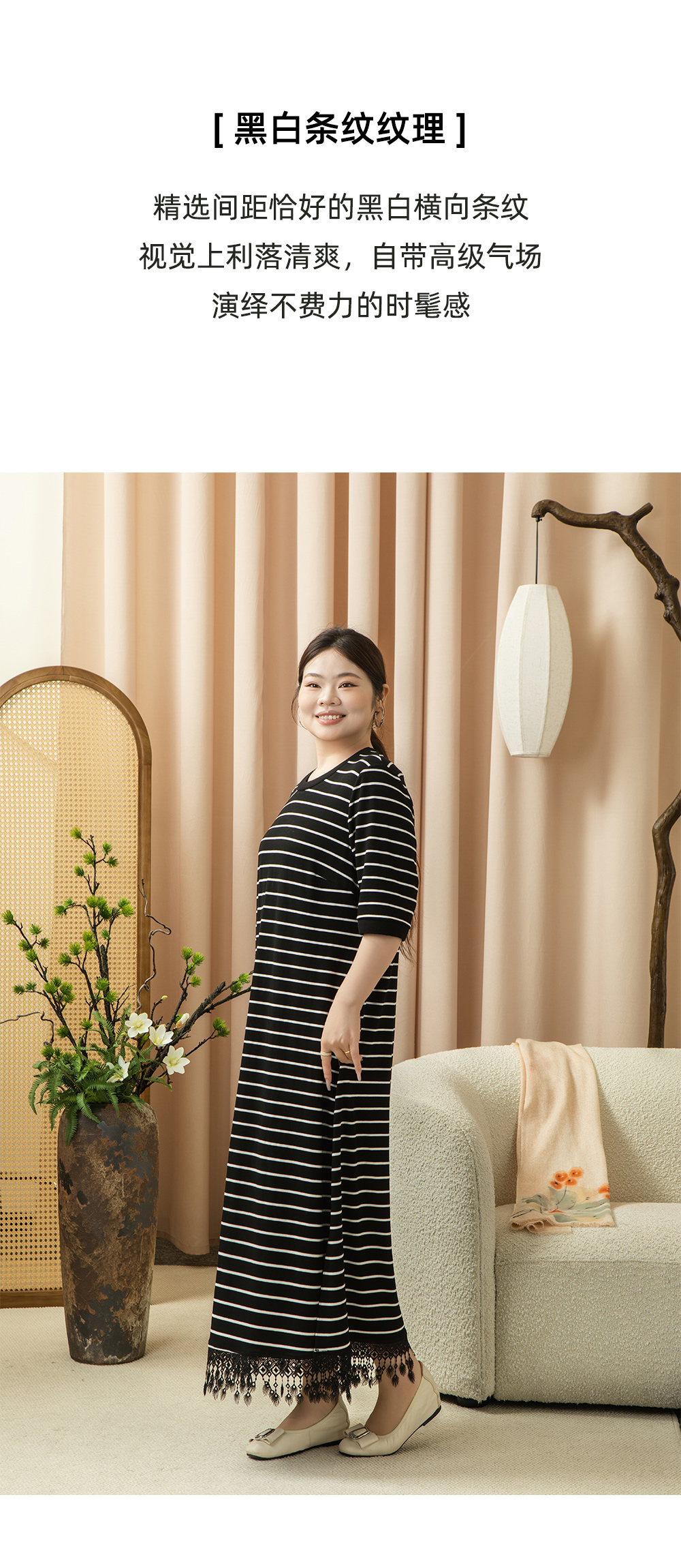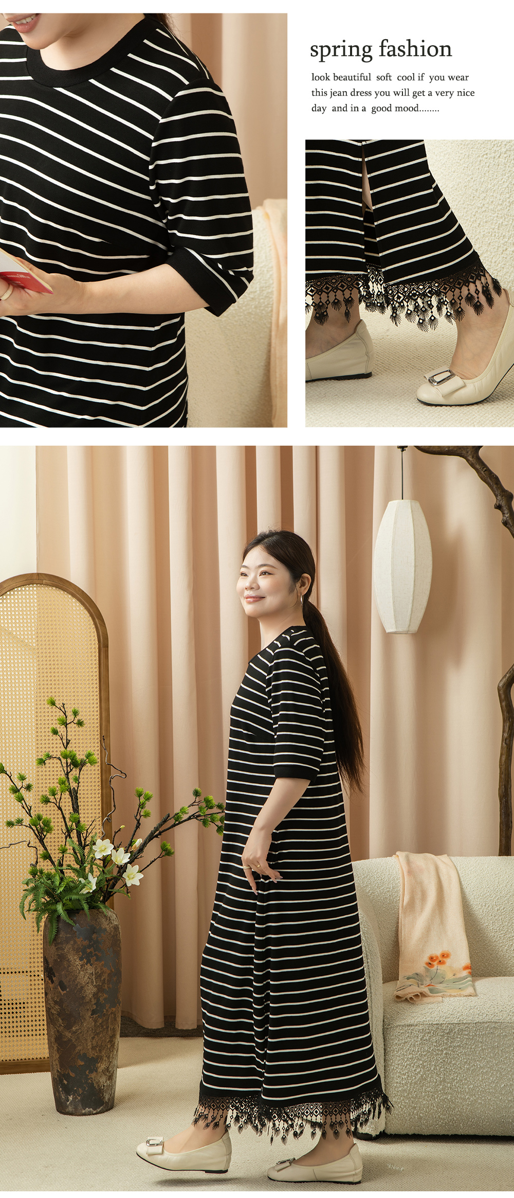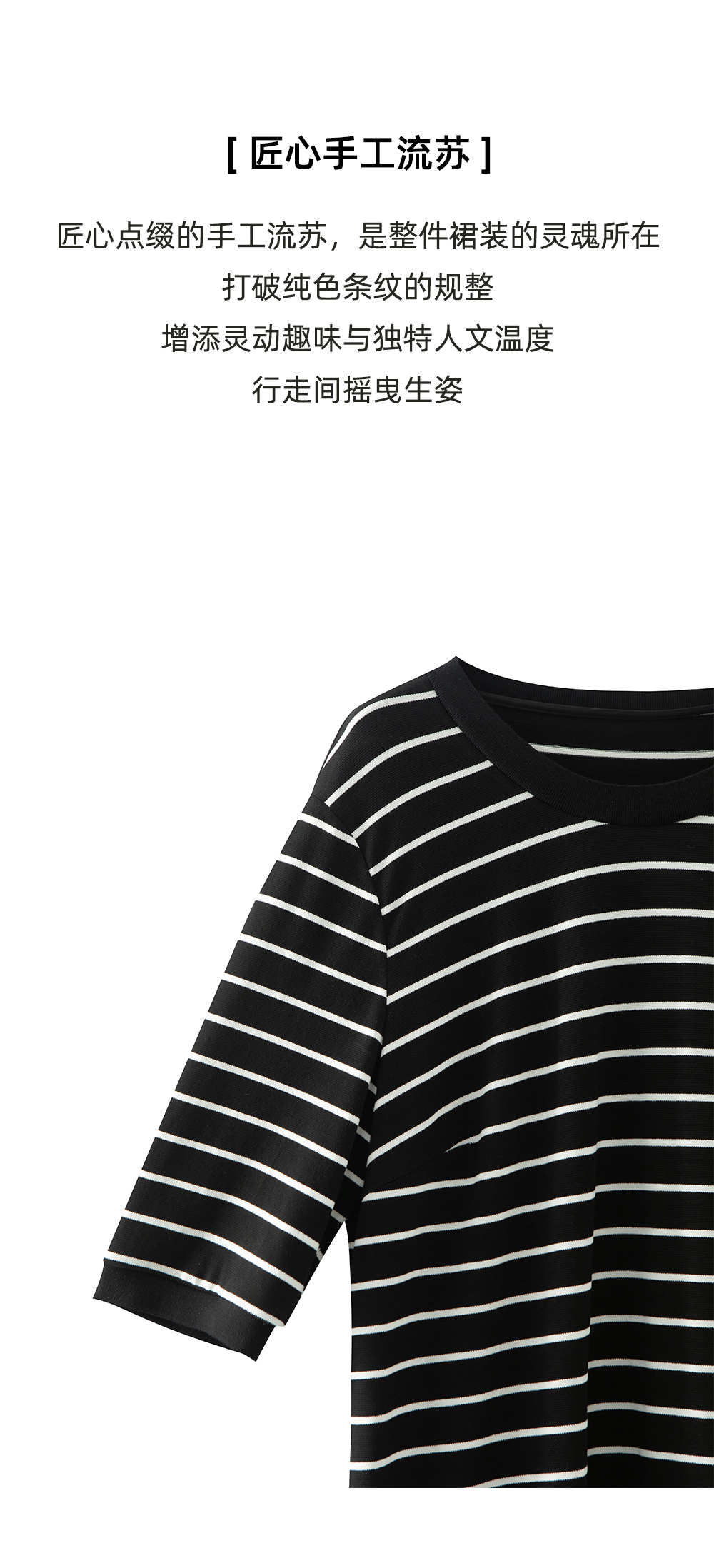 【可改长短】一周内发货❤️【流苏条纹针织裙】知性风、老钱风简约款针织裙,夏季新款撞色条纹风短袖中长裙,有弹力!