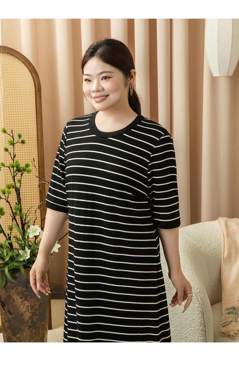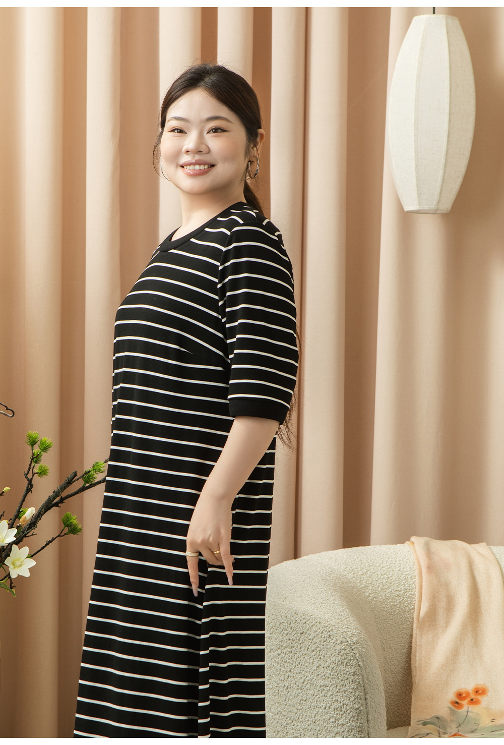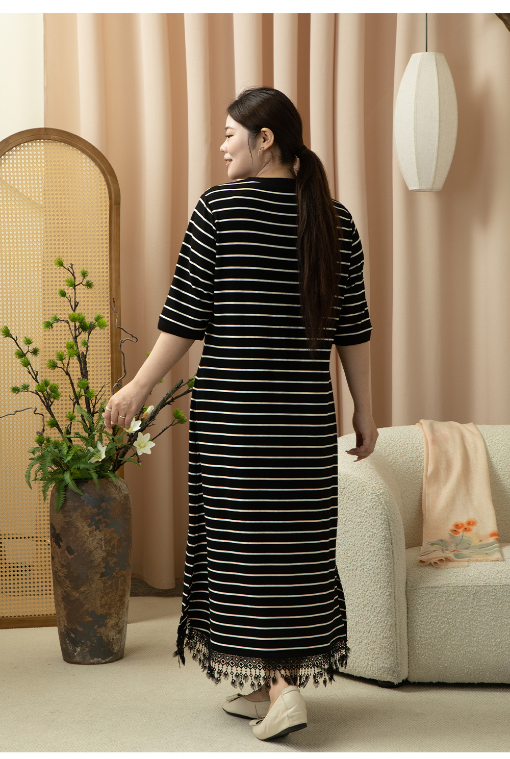 【可改长短】一周内发货❤️【流苏条纹针织裙】知性风、老钱风简约款针织裙,夏季新款撞色条纹风短袖中长裙,有弹力!