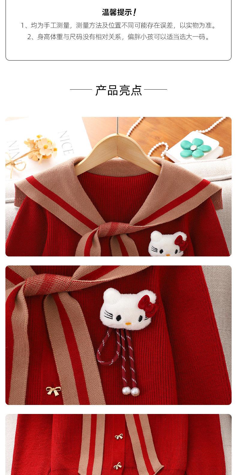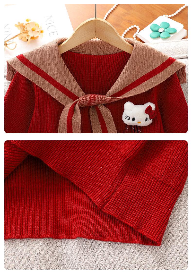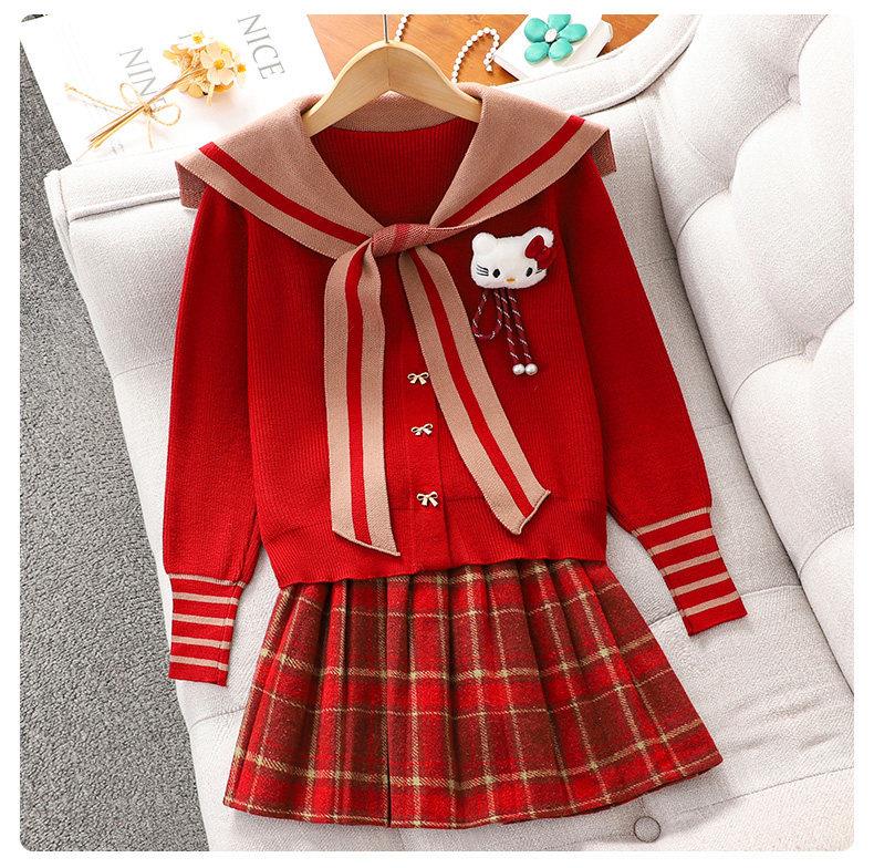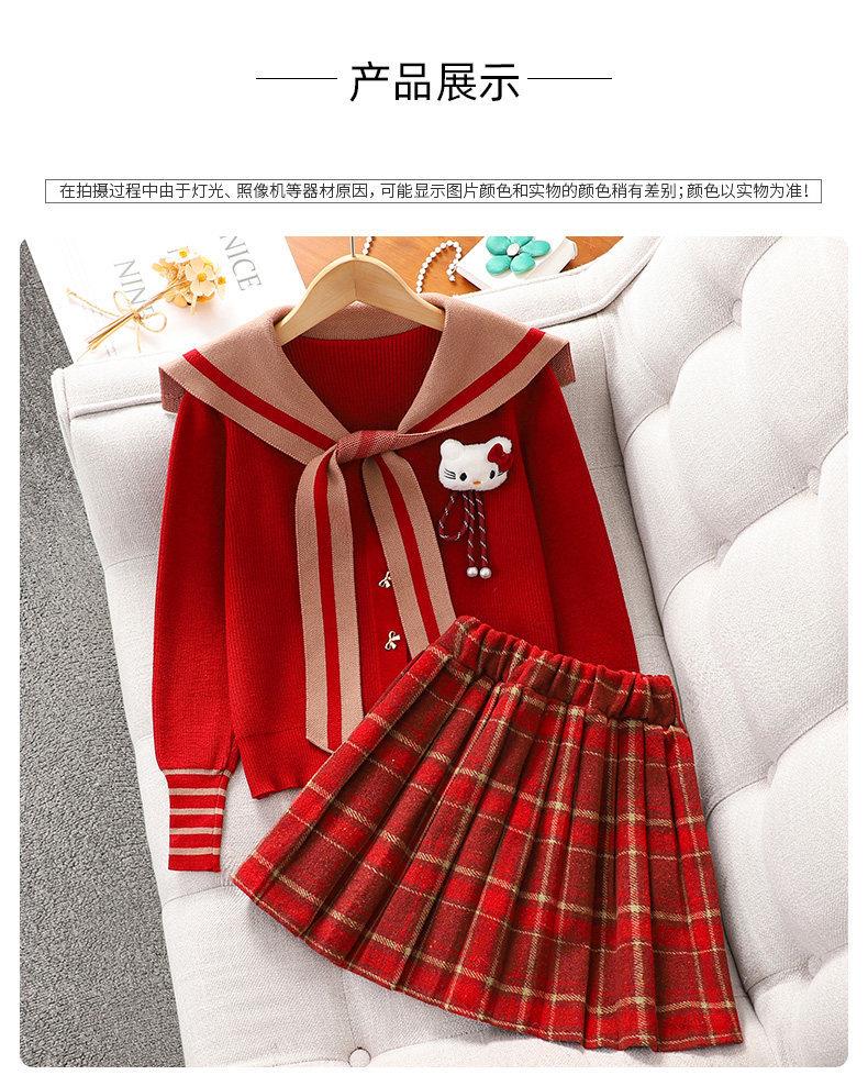 女童红色过年套装女孩秋冬学院风毛衣裙子儿童JK百褶裙拜年服冬装